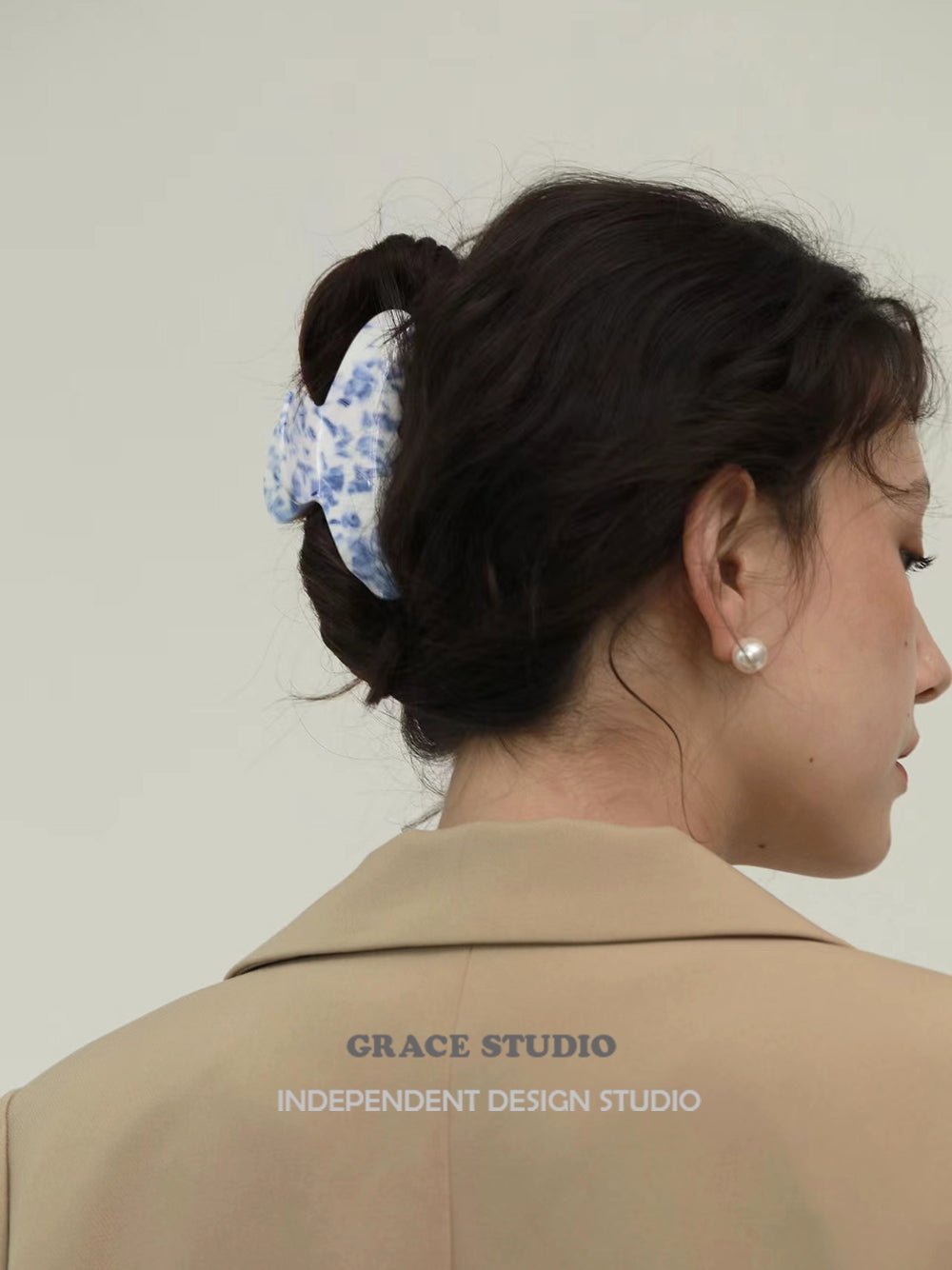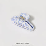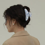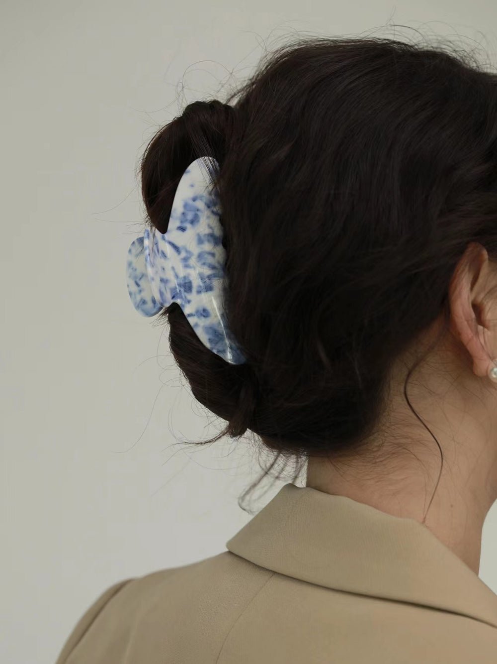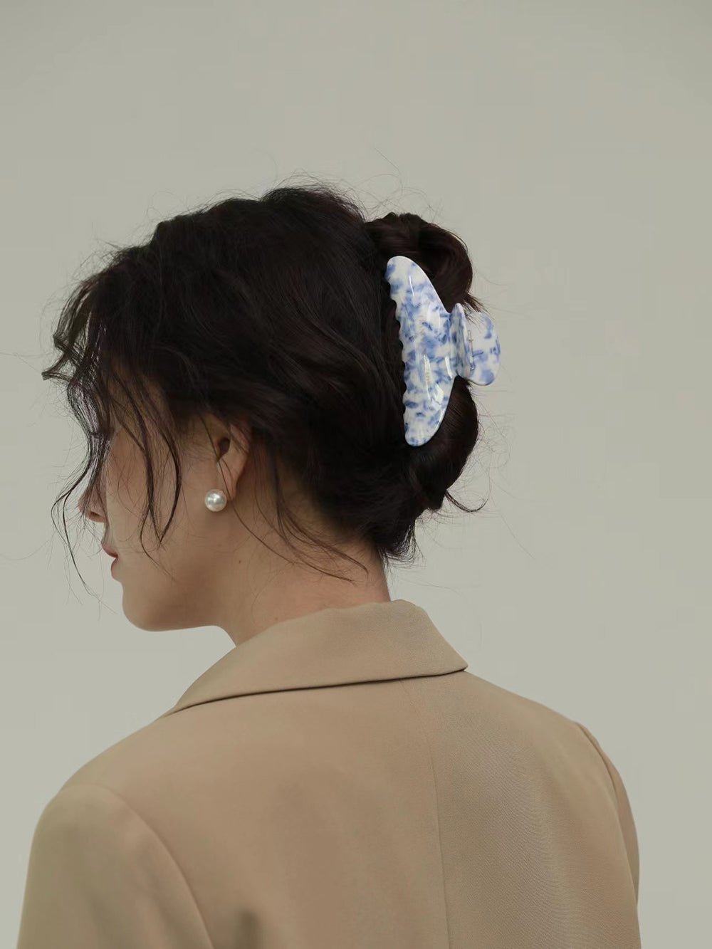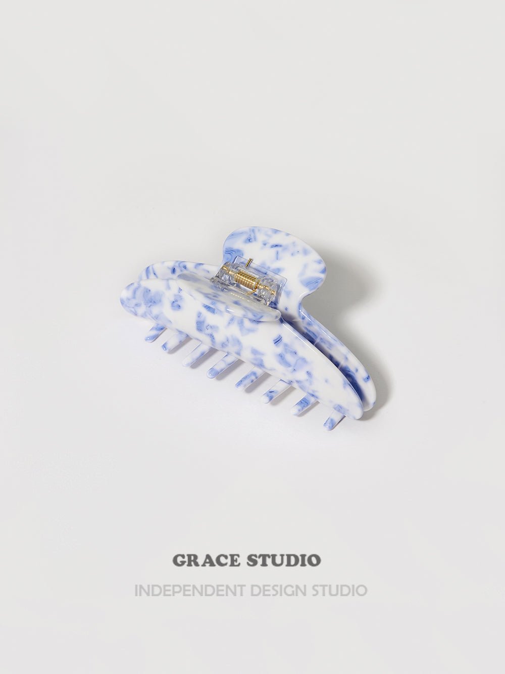 Infuse your everyday updos with artistic whimsy via this Marbled Azure Claw Hair Clip from Grace Studio, where swirling blue-and-white acetate evokes serene marble veins for a touch of refined playfulness. Its curved claw design and gold-tone hinge ensure a gentle yet firm grip, perfect for half-up ponytails or loose buns that transition seamlessly from day to dusk. Details: