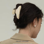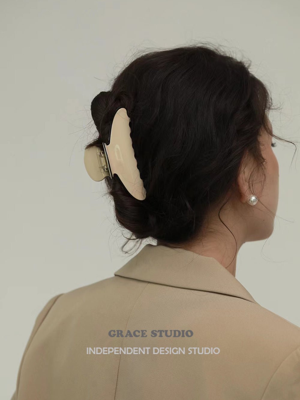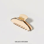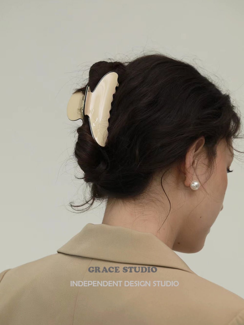 Hair Clip Discover versatile poise with this Curved Beige Banana Claw Hair Clip from Grace Studio, where smooth acetate in a light beige hue meets a gold-tone hinge for a secure, sculpted hold that elevates buns or twists with effortless grace. Its gently arched form and subtle sheen add a whisper of modern minimalism, perfect for transitioning from desk to dinner without a fuss. Details: