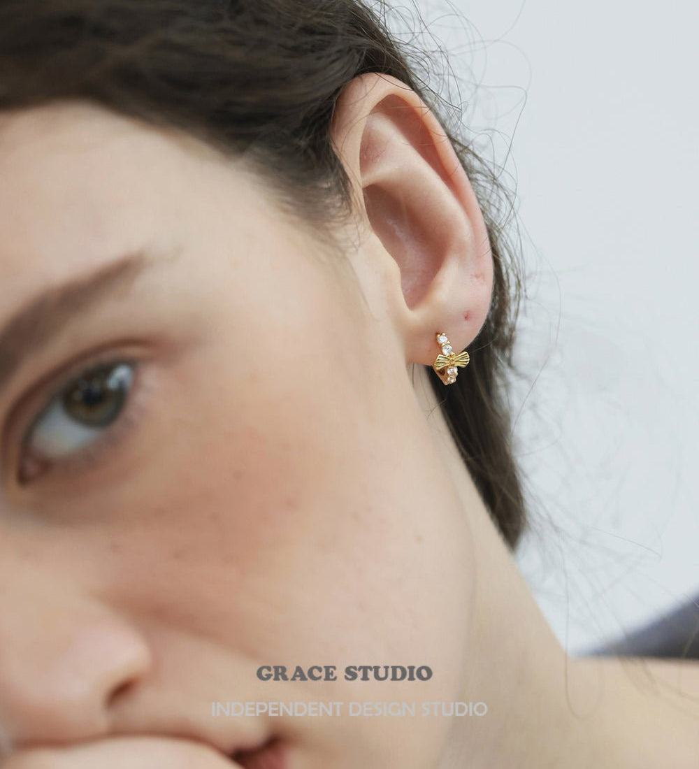 Bow Zircon Hoop Earrings