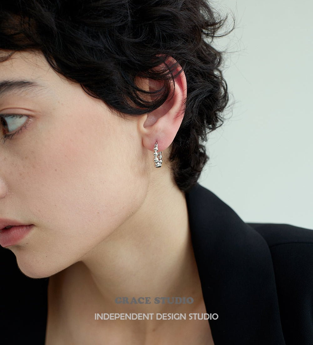 Polished Bead Hoop Earrings