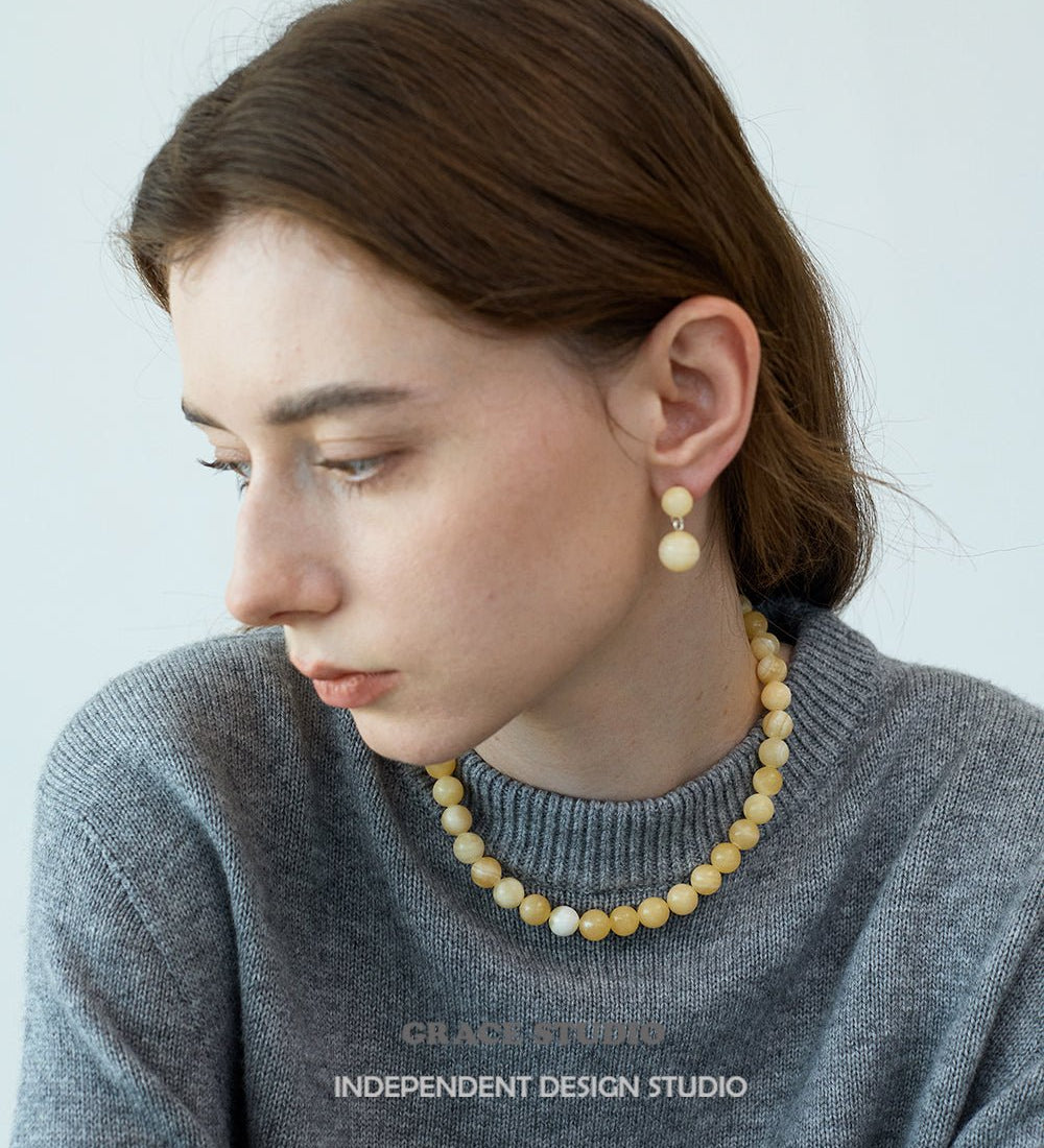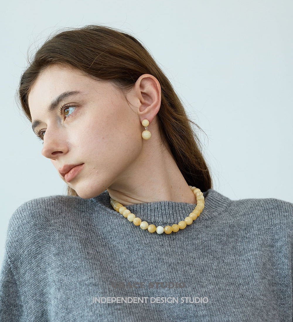 Yellow Jade Bead Strand Necklace