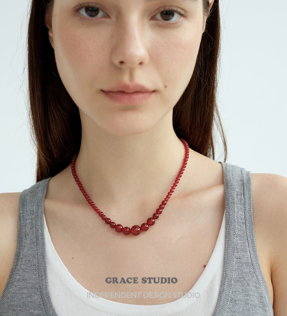Graduated Red Agate Bead Necklace