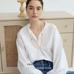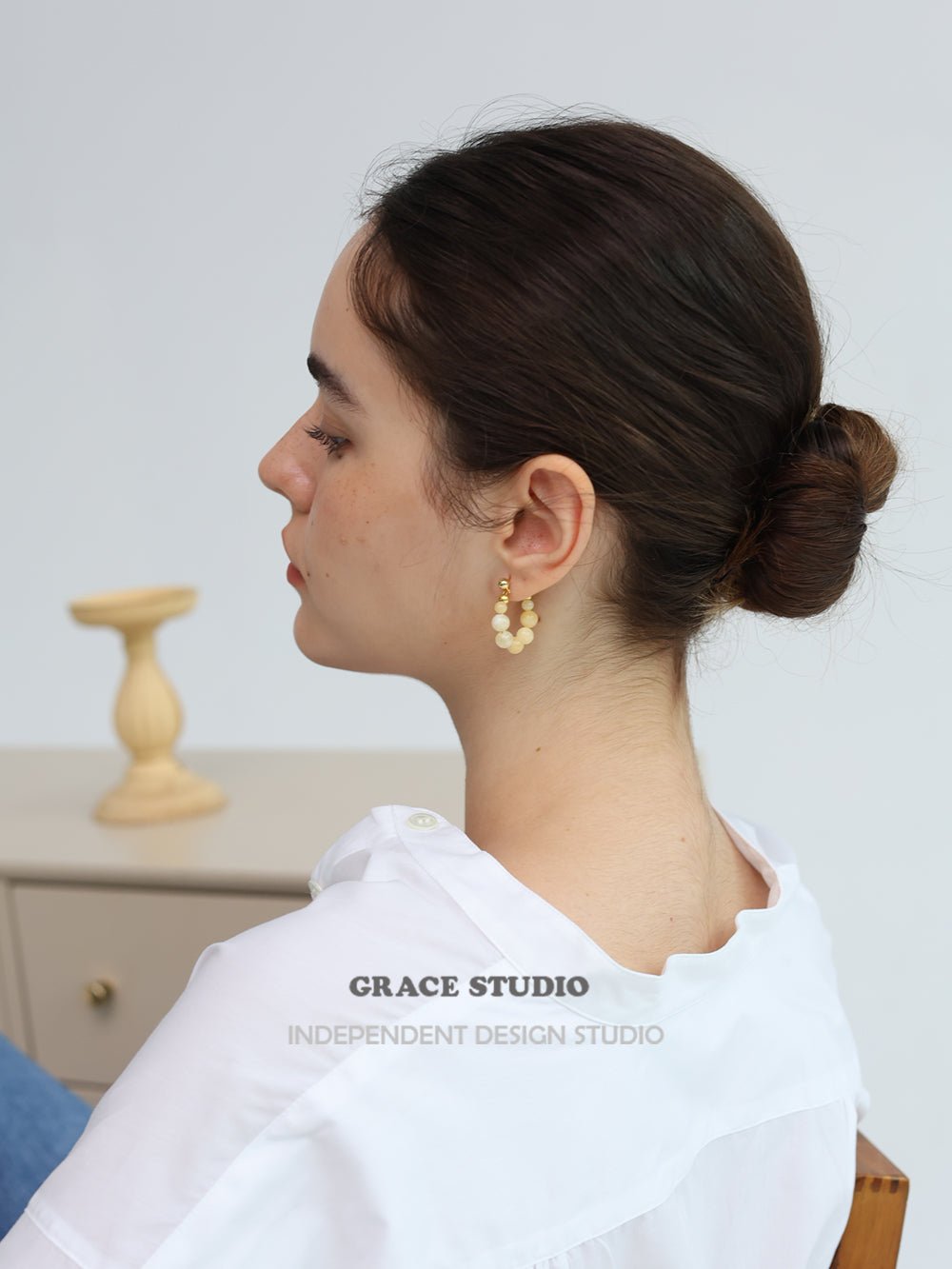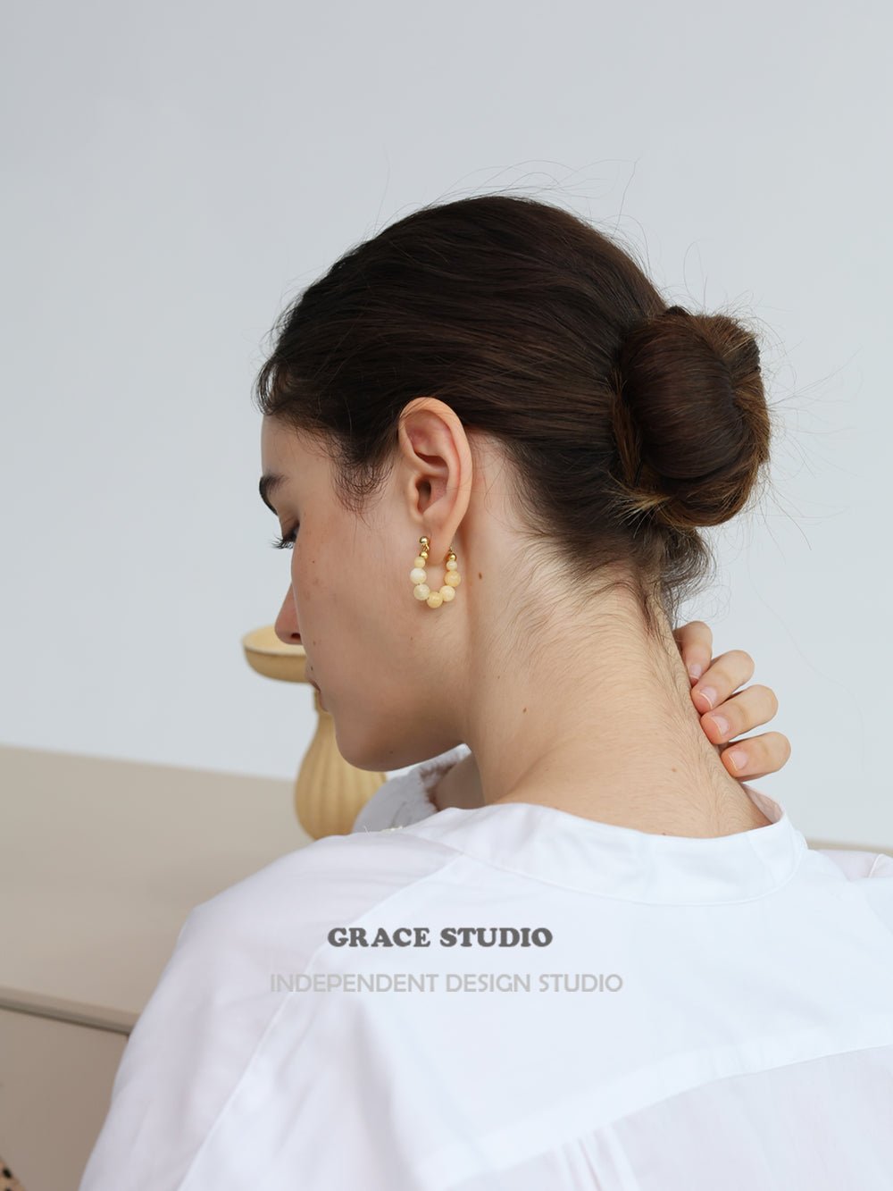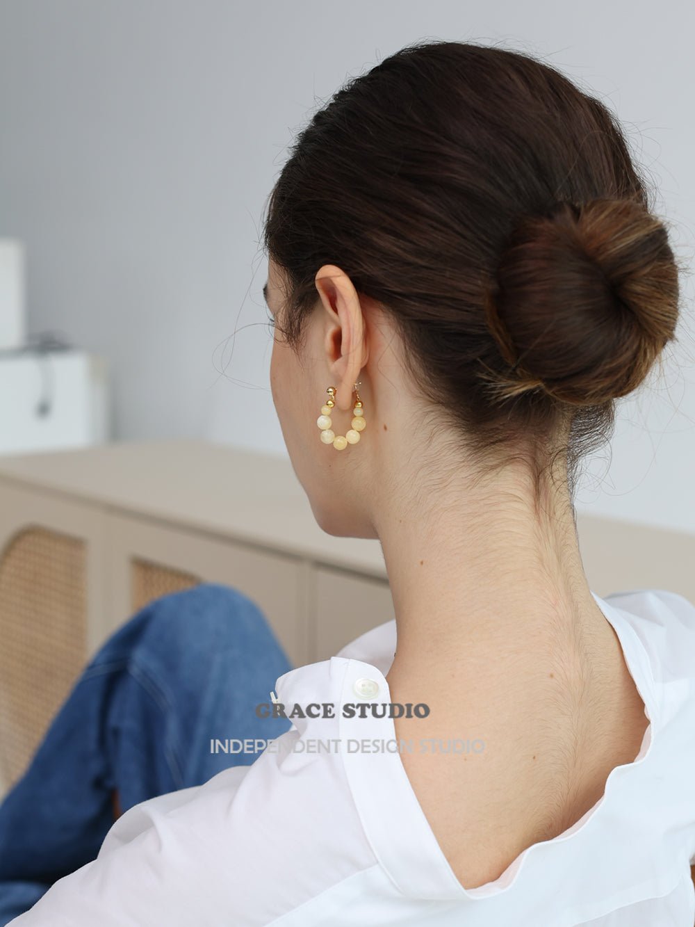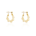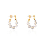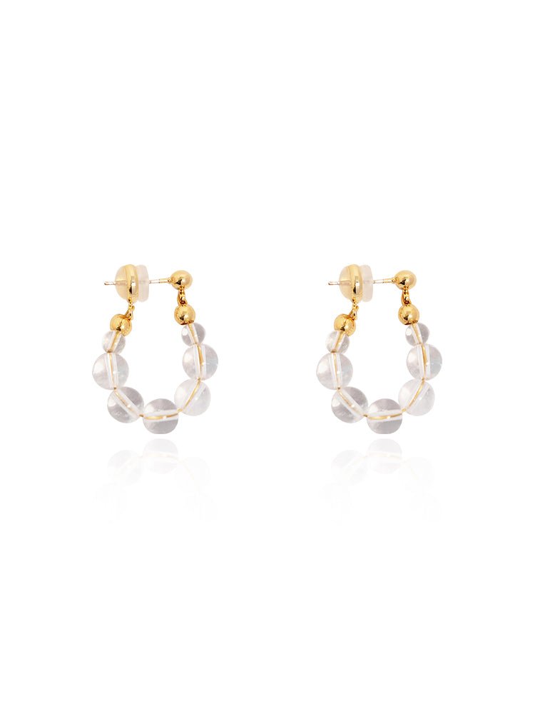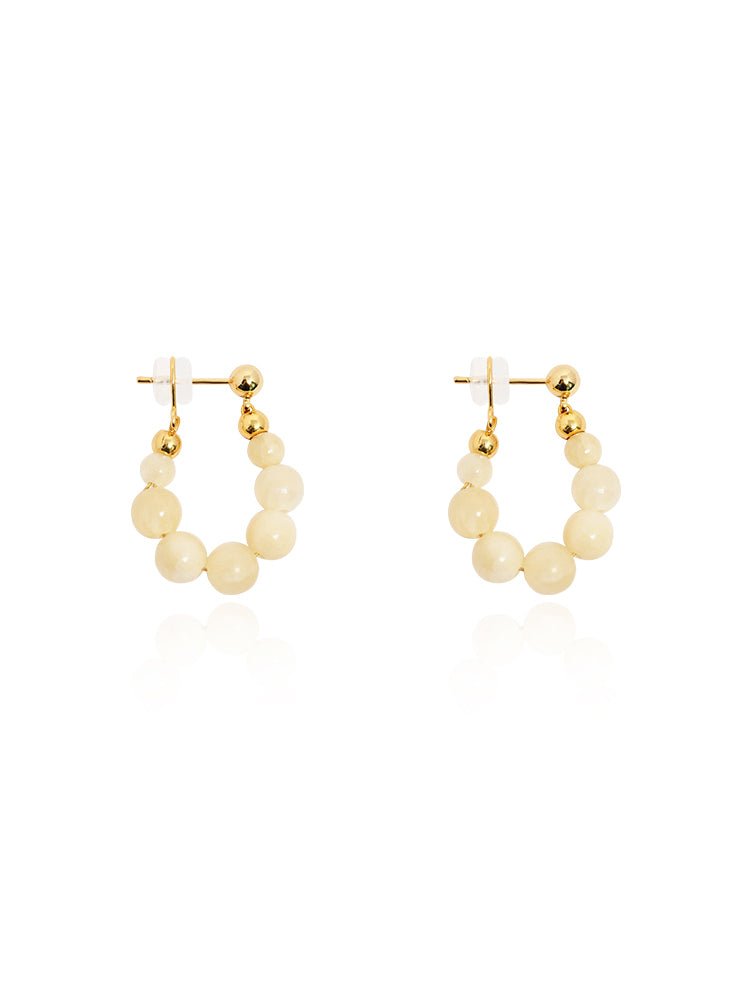 Lightweight and effortlessly charming, these hoop earrings feature a graceful arc of polished gemstone beads, available in creamy yellow jade or luminous clear quartz. Each stone is strung with precision, creating a soft swing that catches the light with every movement. The subtle gold-toned accents add warmth and refinement, while 925 silver-gilt posts ensure comfortable, hypoallergenic wear. A refreshing blend of natural texture and everyday elegance.