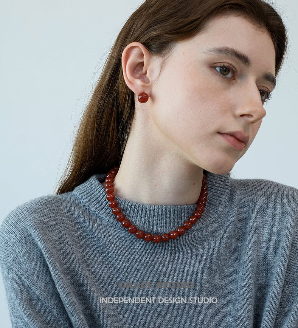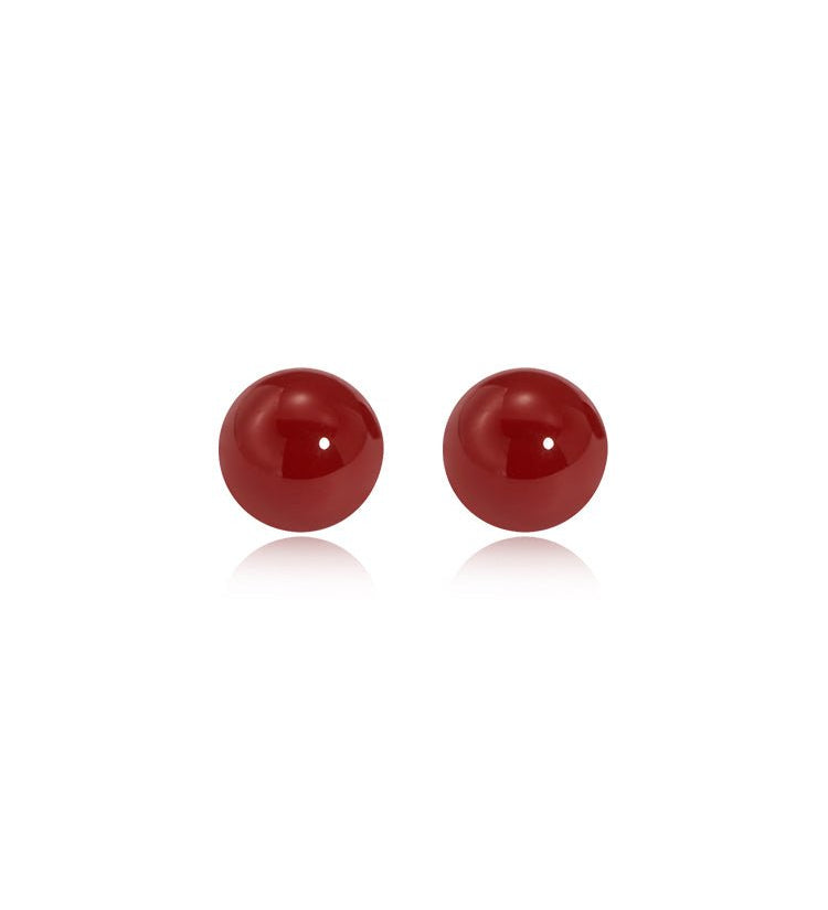 Classic Red Agate Sphere Stud Earrings