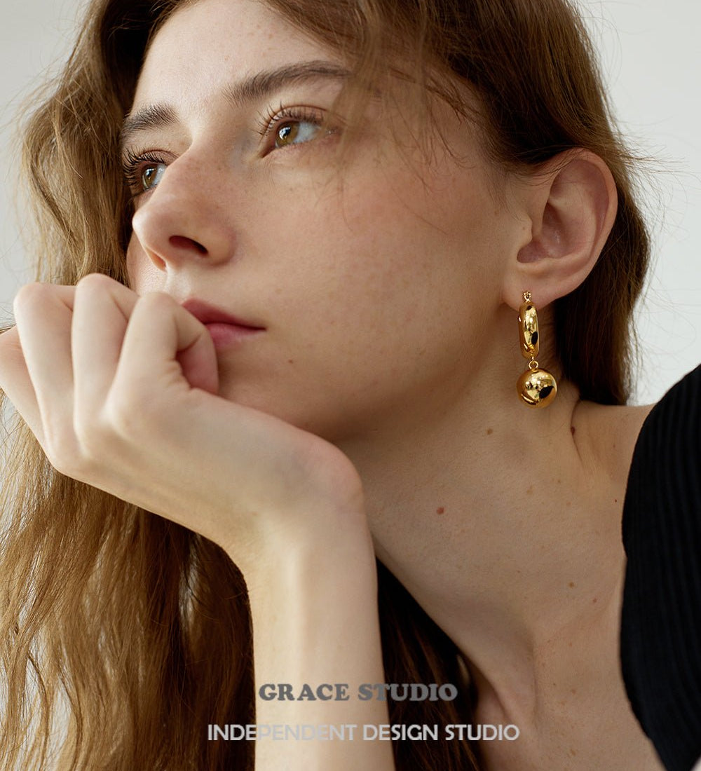 Orb Ball Drop Hoop Earrings