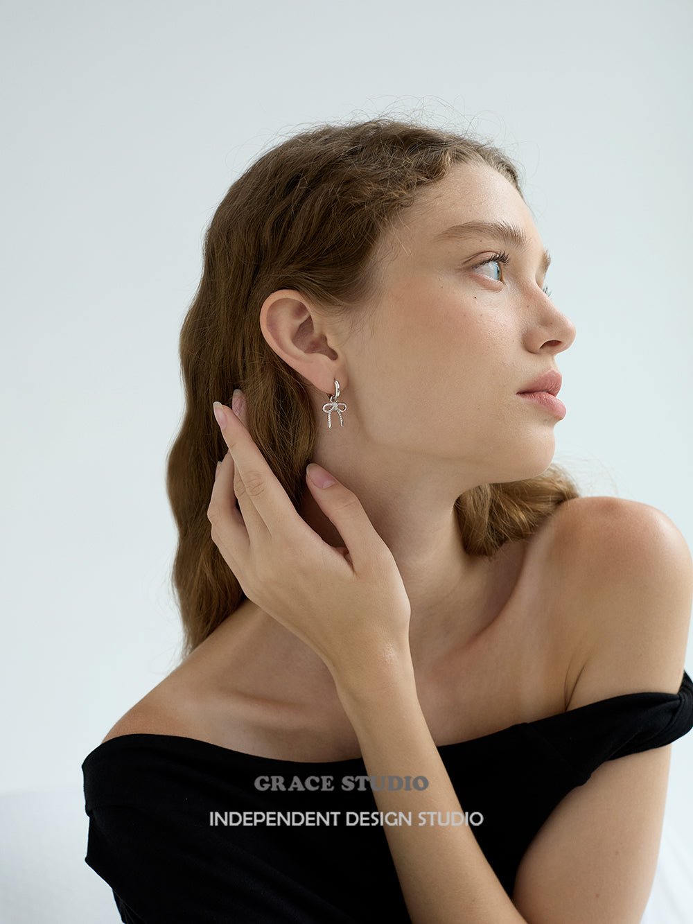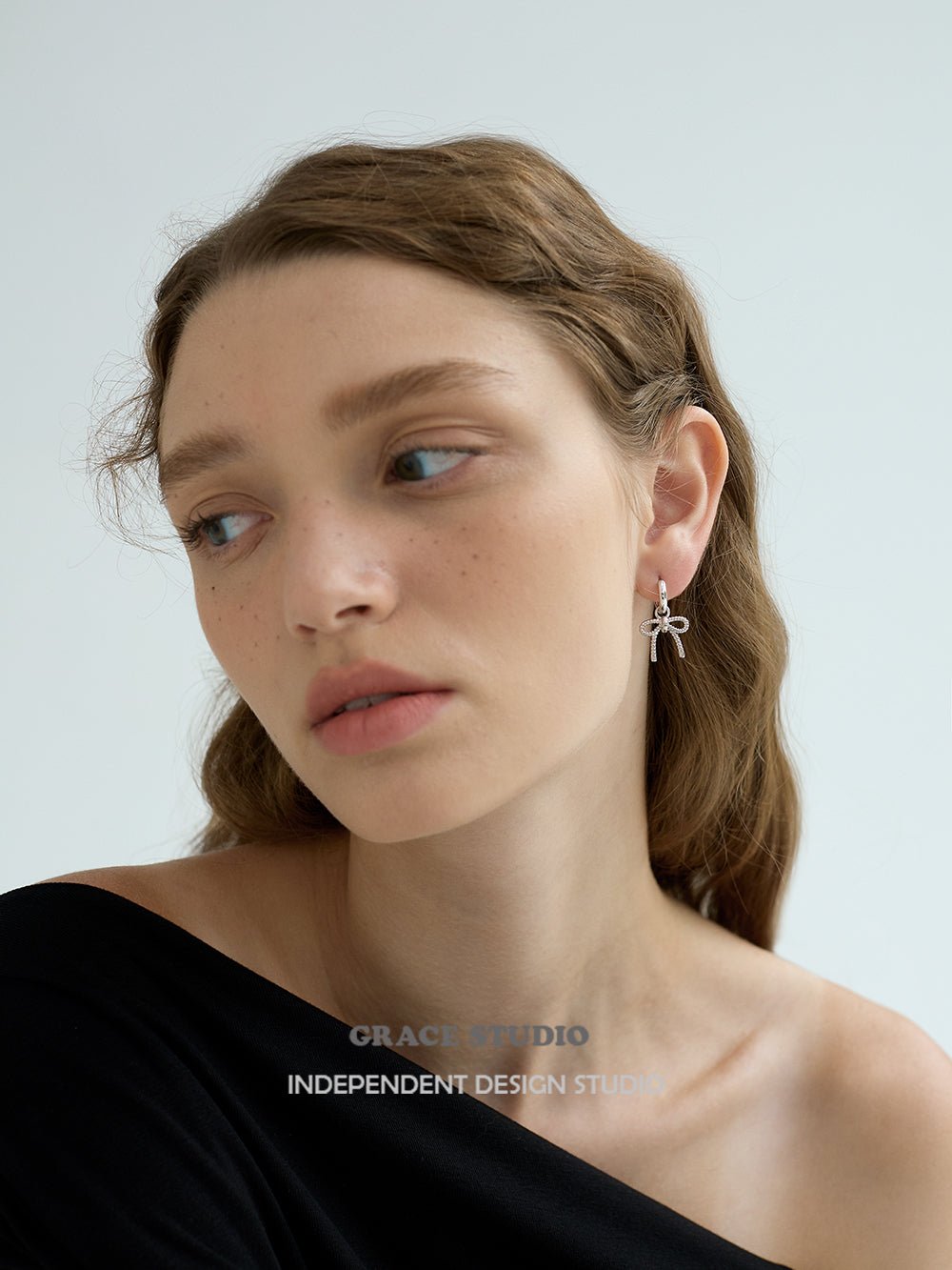 Charming yet playful, these Twisted Ribbon Drop Huggies feature delicately sculpted bows crafted with a twisted texture, adding a hint of vintage flair. Made from platinum-plated copper and finished in radiant silver, they catch the light beautifully from every angle.