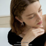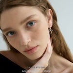 Measuring approximately 2.5 cm in length, these earrings offer the perfect balance between subtlety and statement. The compact huggie hoops provide a secure and comfortable fit, while the graceful ribbon drops sway gently with every move — an elegant choice for everyday wear or a romantic touch on special occasions.