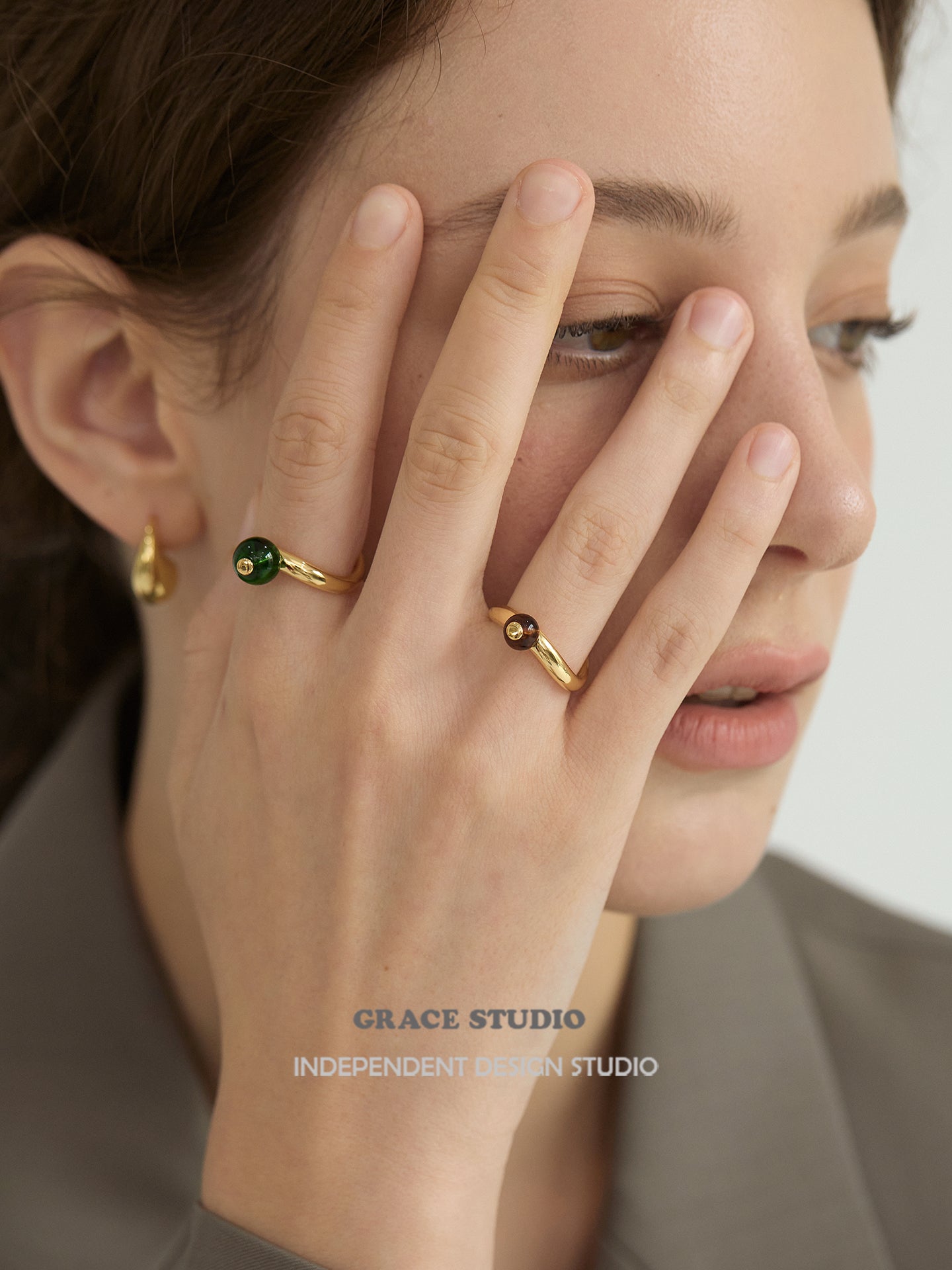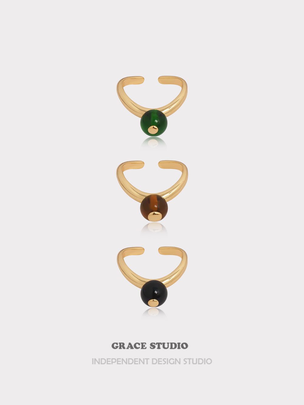 A minimalist statement with a natural edge, this oval gemstone adjustable ring features a sleek, open-band silhouette topped with a polished stone in earthy tones, offering versatile fit and subtle sophistication. Expertly crafted to highlight the unique veining and luster of each gem, it's designed for effortless stacking or solo wear, elevating casual ensembles with organic elegance and a touch of color.