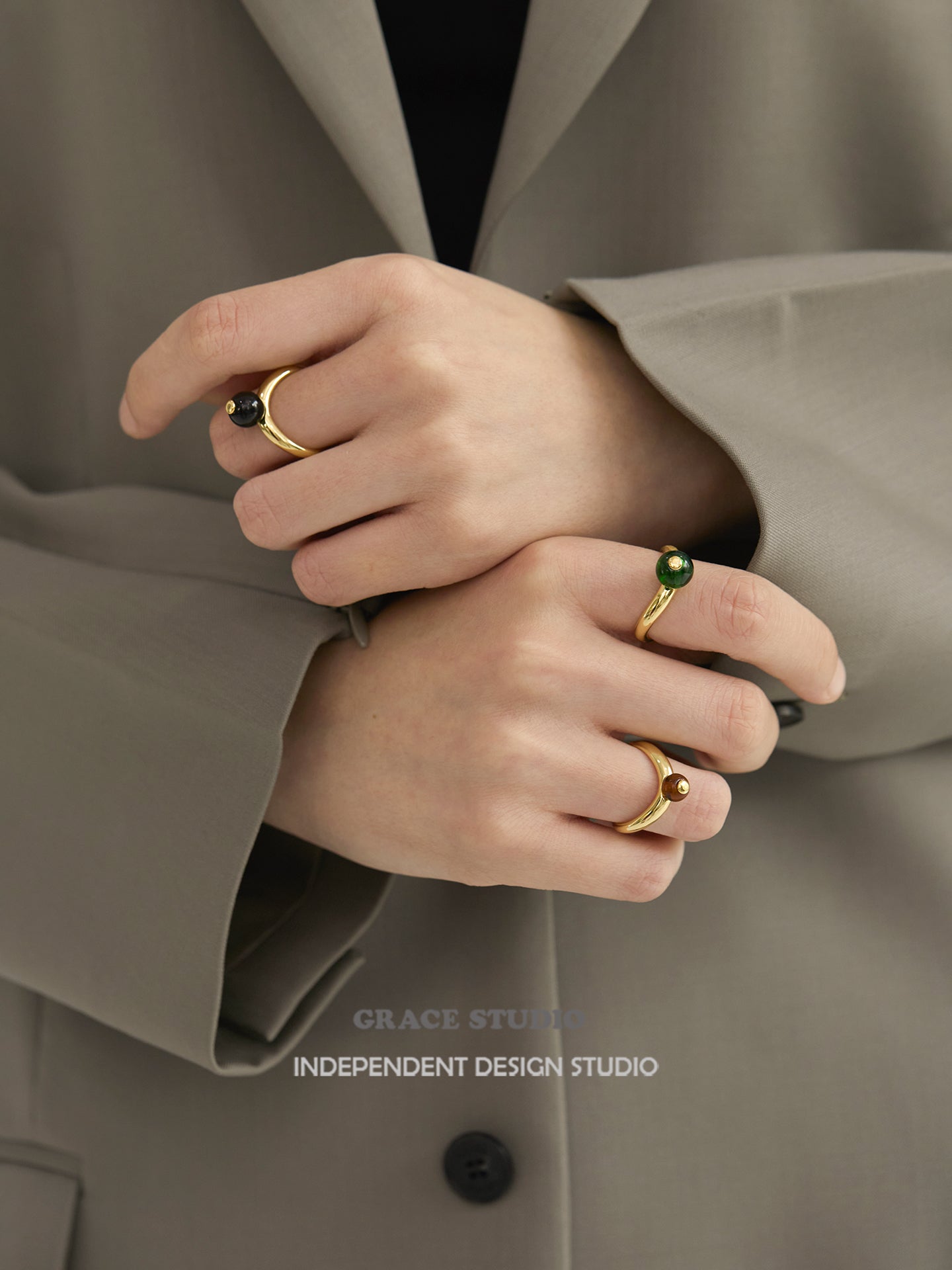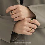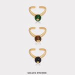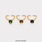 Minimalist Oval Gemstone Adjustable Gold Ring