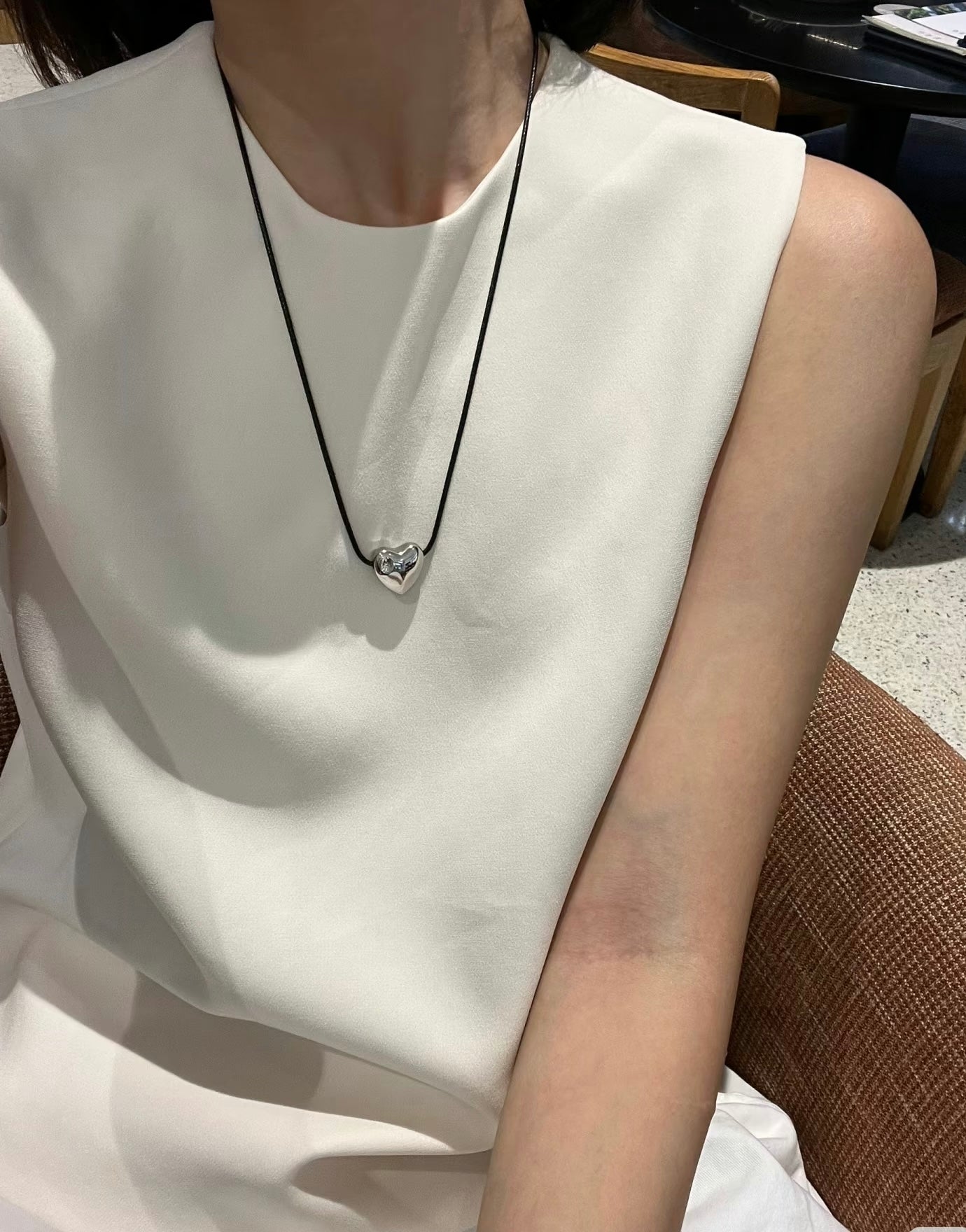 Heartfelt Reflection Puffy Heart Cord Necklace