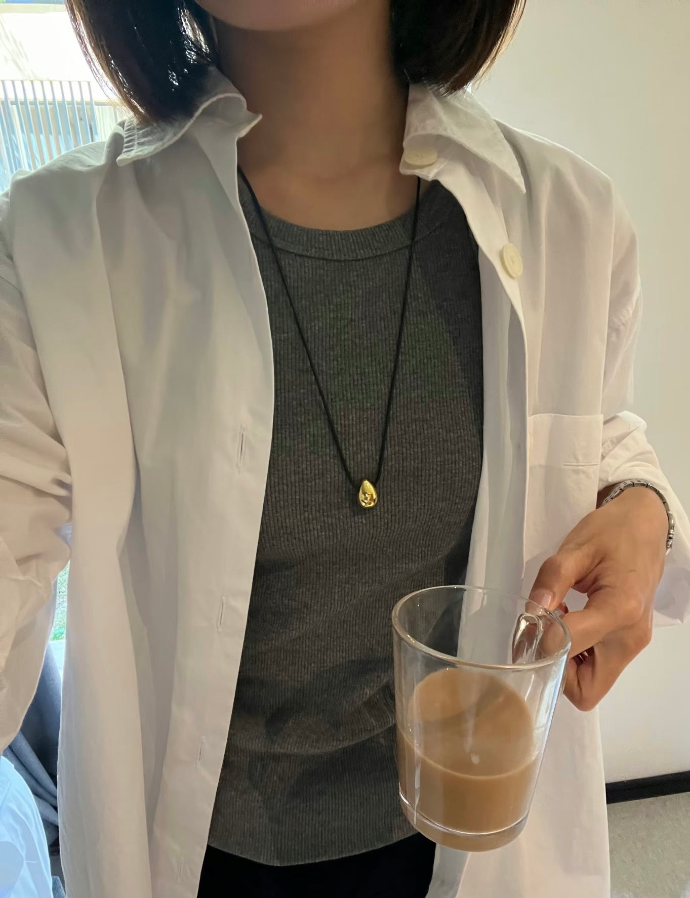 • Material: Black leather cord / Brass with 18K gold plating / Silver
