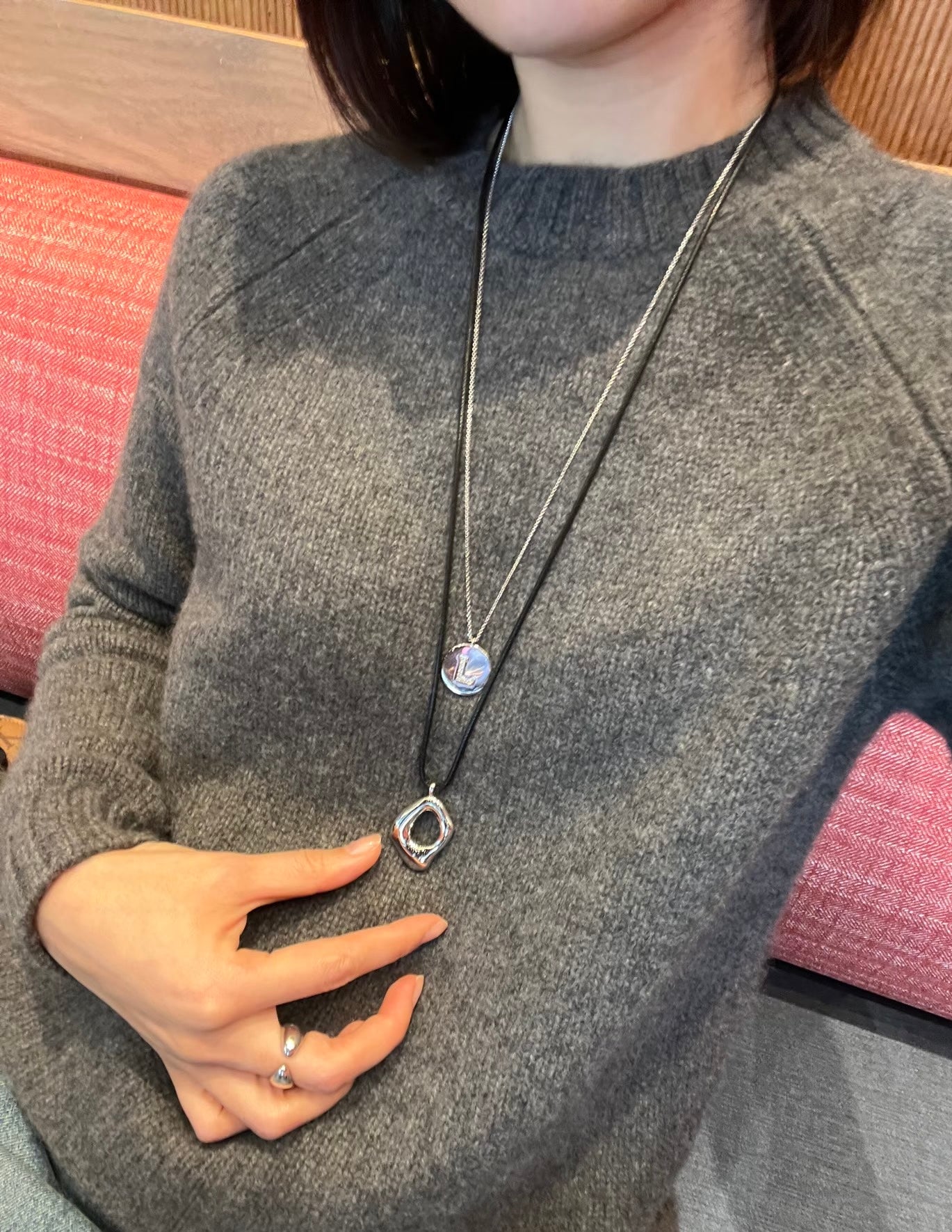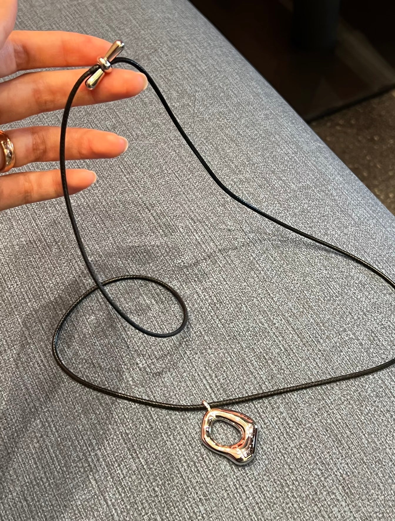 Elevate your look with this modern statement necklace, featuring a sleek black leather cord paired with a striking white gold-plated brass pendant. The pendant’s cool, silver sheen beautifully contrasts the rich texture of the leather, creating an effortlessly chic accessory. With an adjustable length of approximately 78–80cm, this versatile piece is designed to complement both casual and sophisticated ensembles.