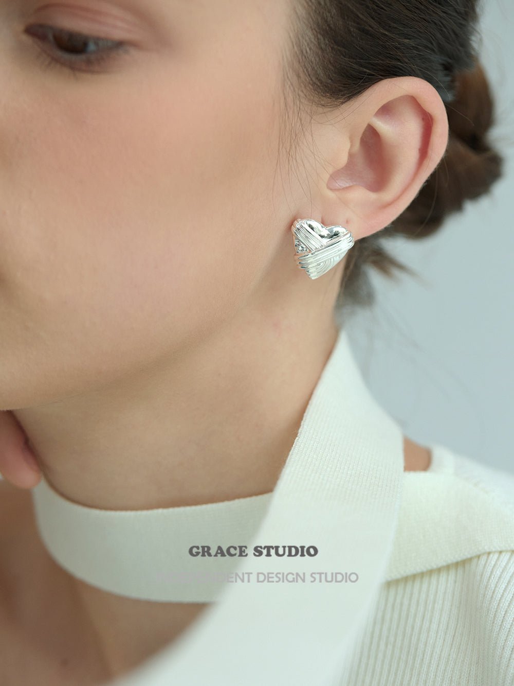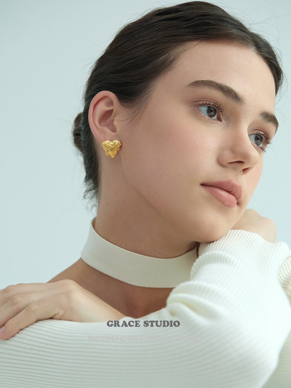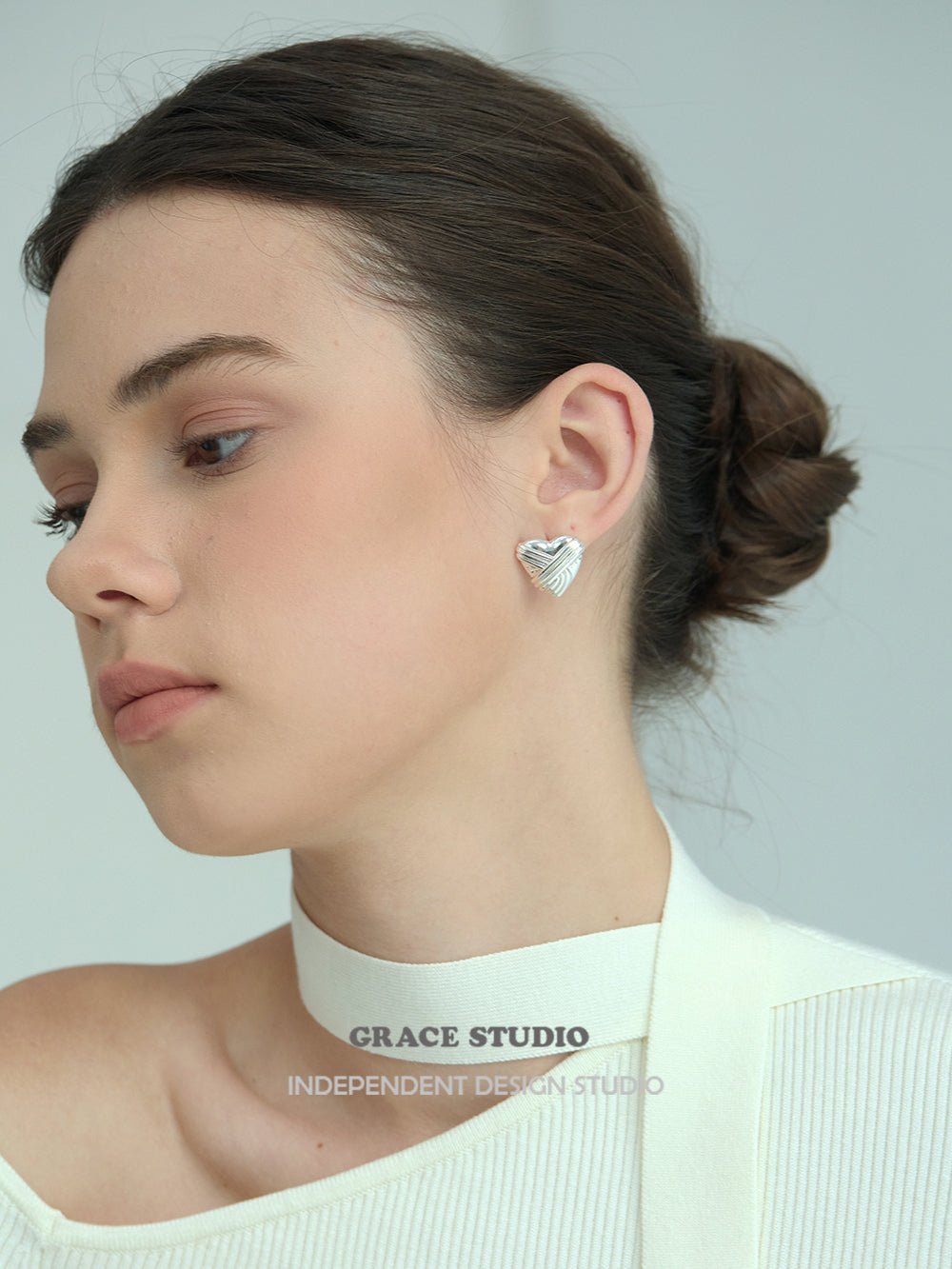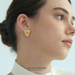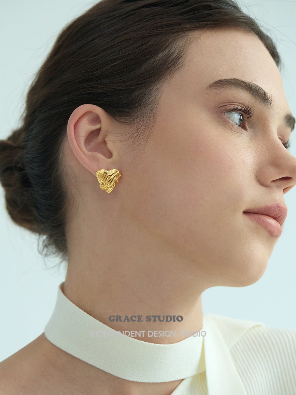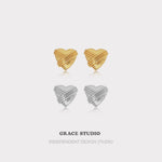 Elegant with a hint of edge, the Textured Heart Stud Earrings blend modern sophistication with playful charm. Featuring a sculptural heart shape wrapped in delicate, flowing textured lines, these earrings bring subtle dimension and shine to your look. Available in both timeless gold and sleek silver tones, they offer versatile styling options from day to night.