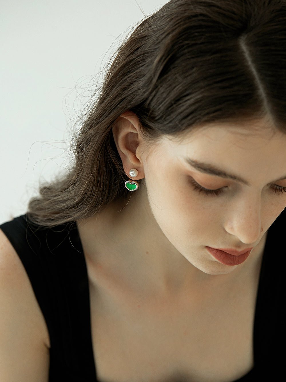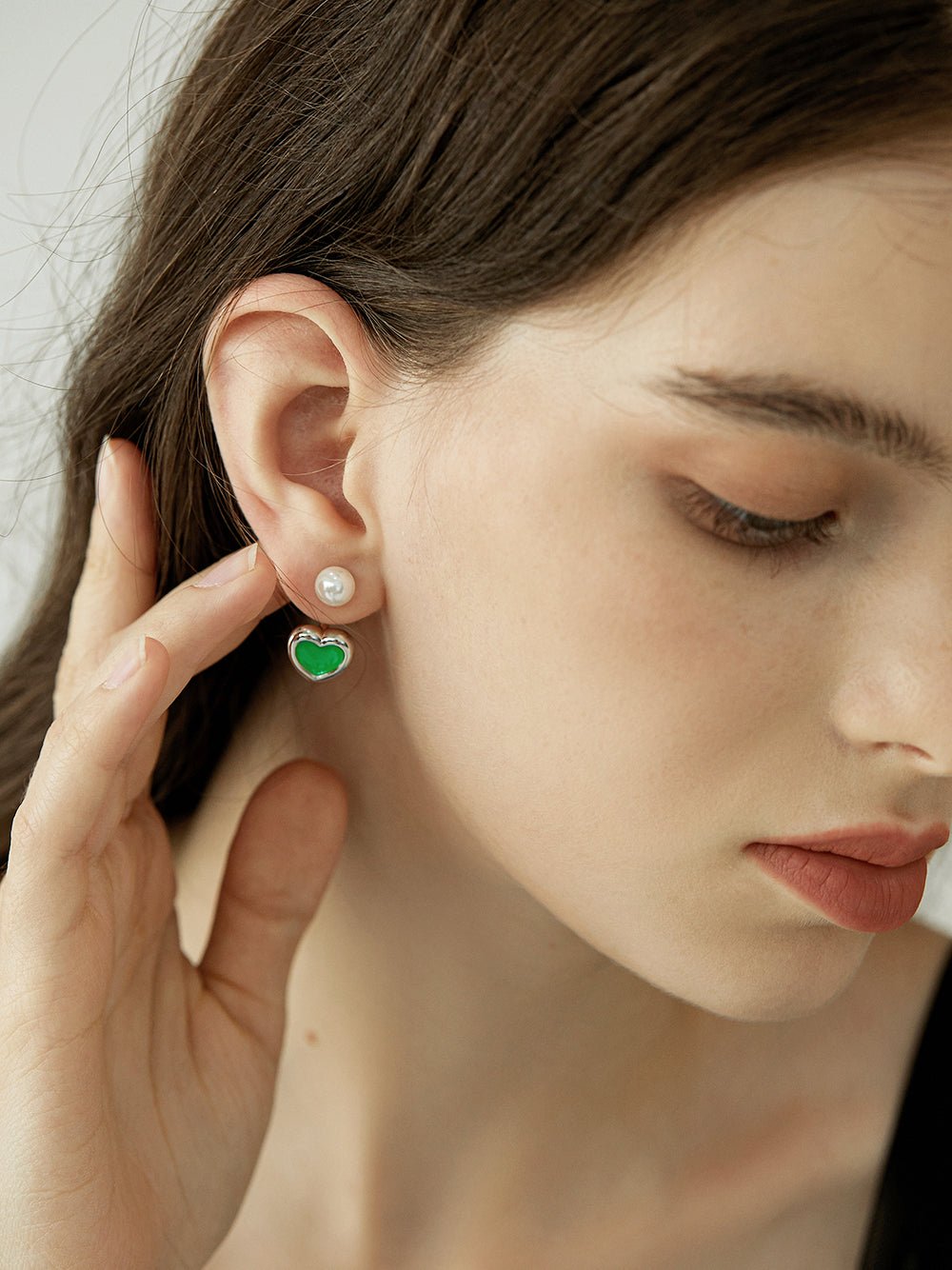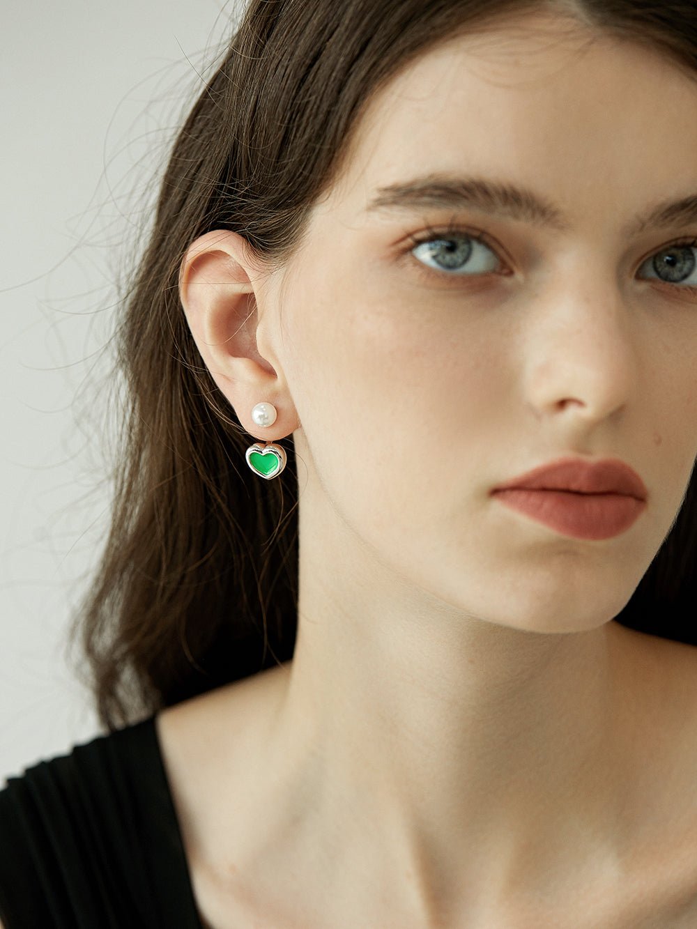 Whimsical charm meets elegant detail in the Enamel Heart Pearl Drop Earrings. Featuring a luminous faux pearl stud and a glossy enamel heart-shaped dangle, these earrings strike the perfect balance between playful and polished. The detachable design allows you to switch between minimalist pearl studs and vibrant heart drops, creating two distinct styles in one pair.