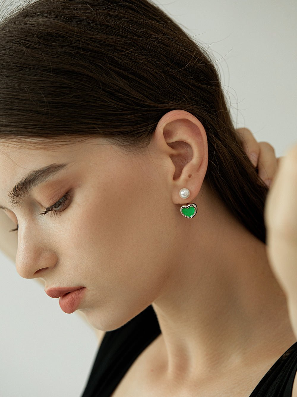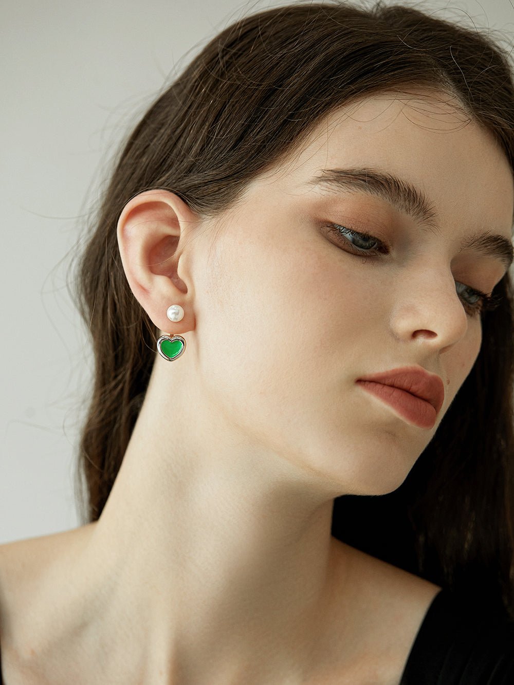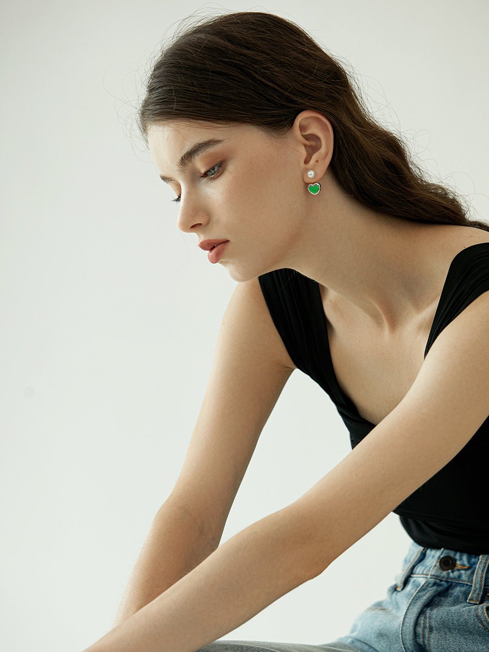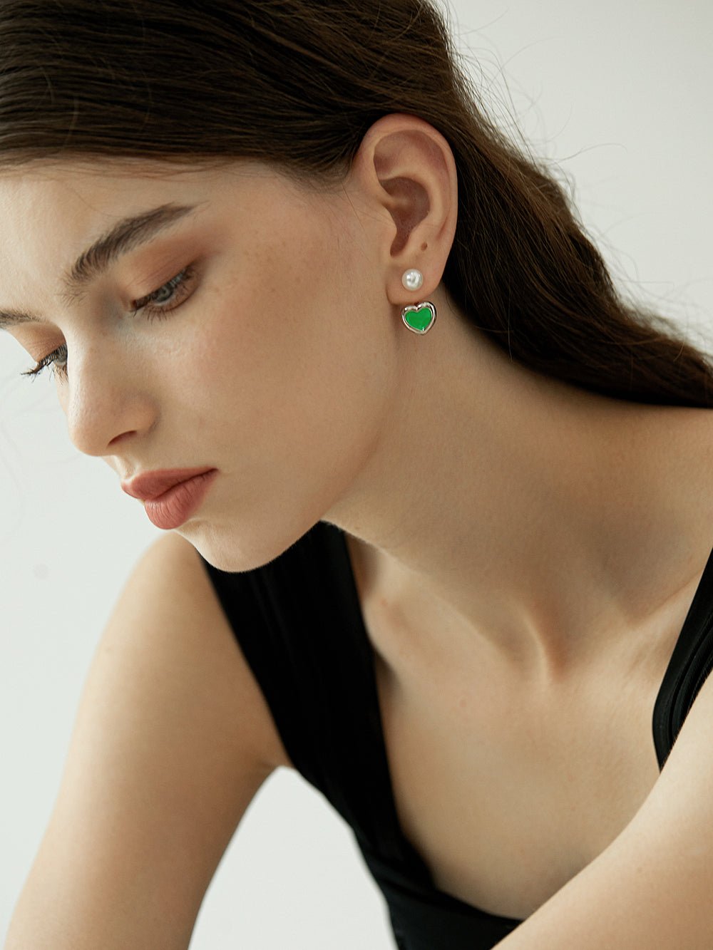 Whimsical charm meets elegant detail in the Enamel Heart Pearl Drop Earrings. Featuring a luminous faux pearl stud and a glossy enamel heart-shaped dangle, these earrings strike the perfect balance between playful and polished. The detachable design allows you to switch between minimalist pearl studs and vibrant heart drops, creating two distinct styles in one pair.