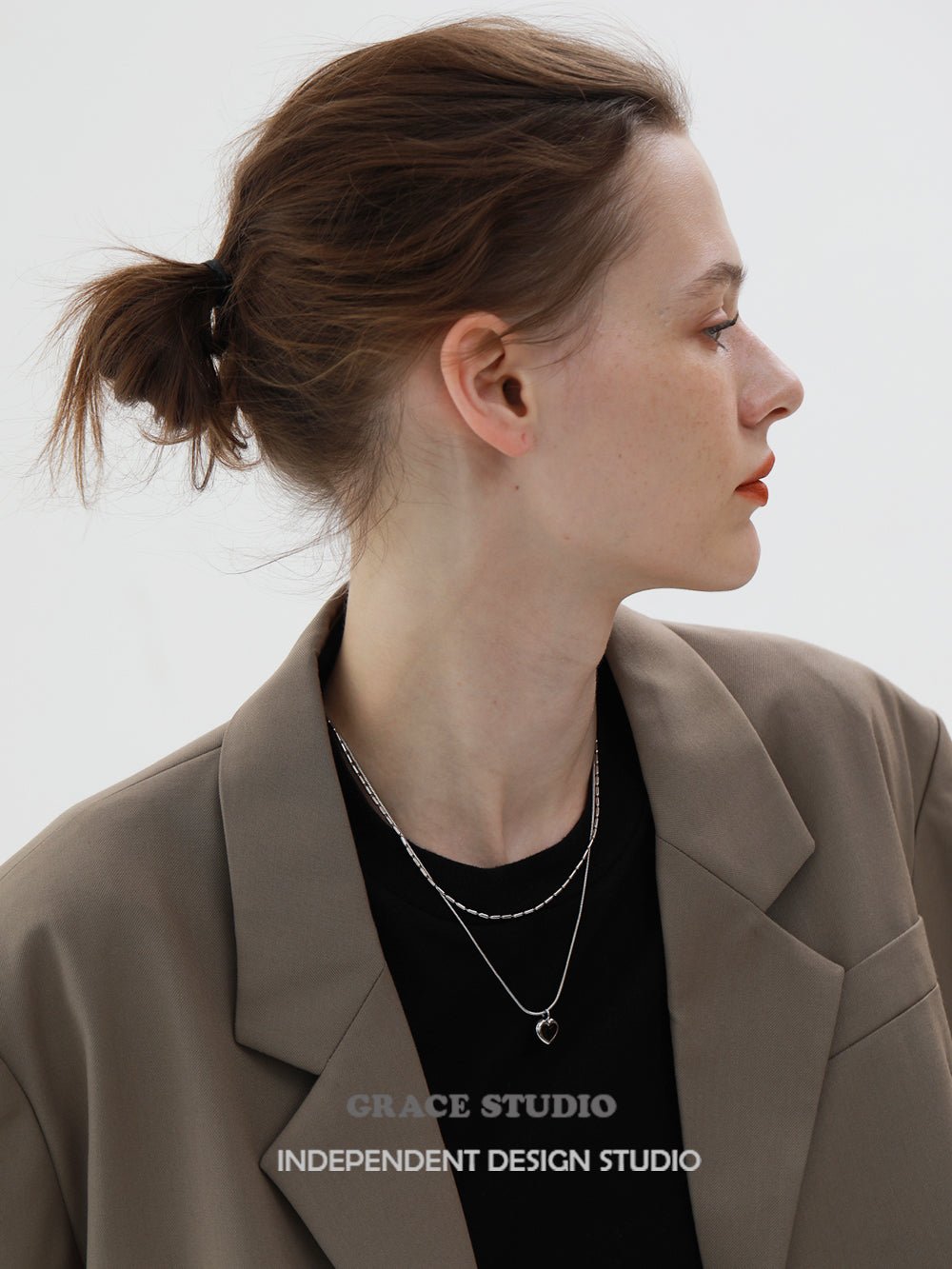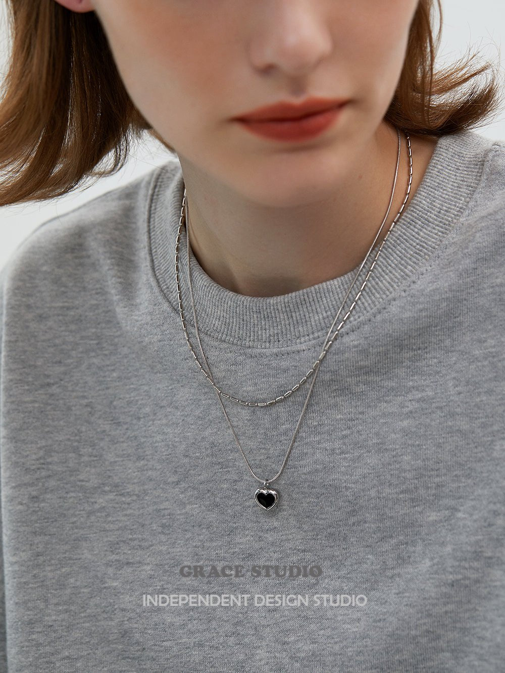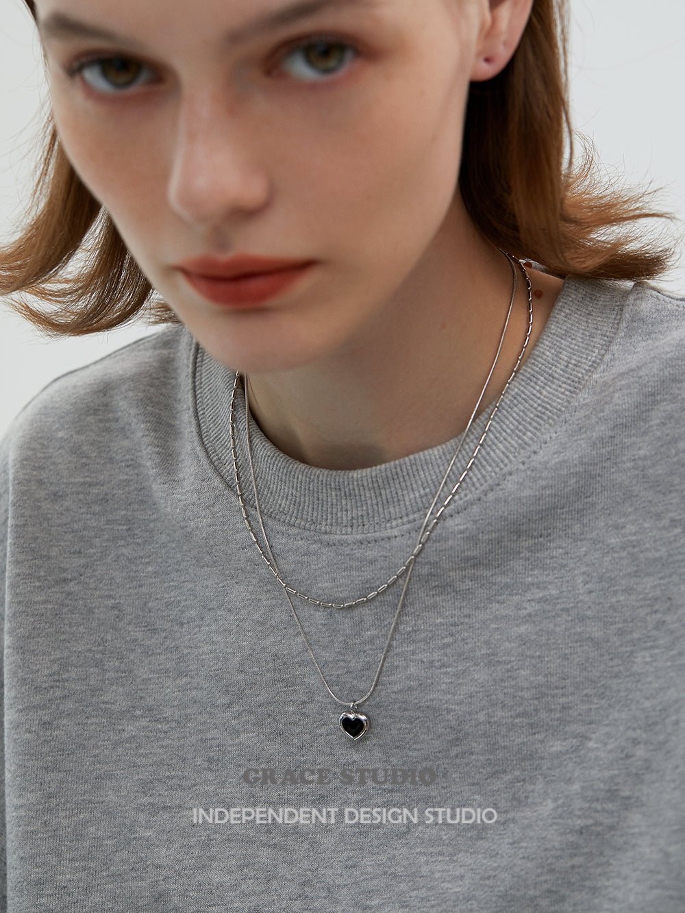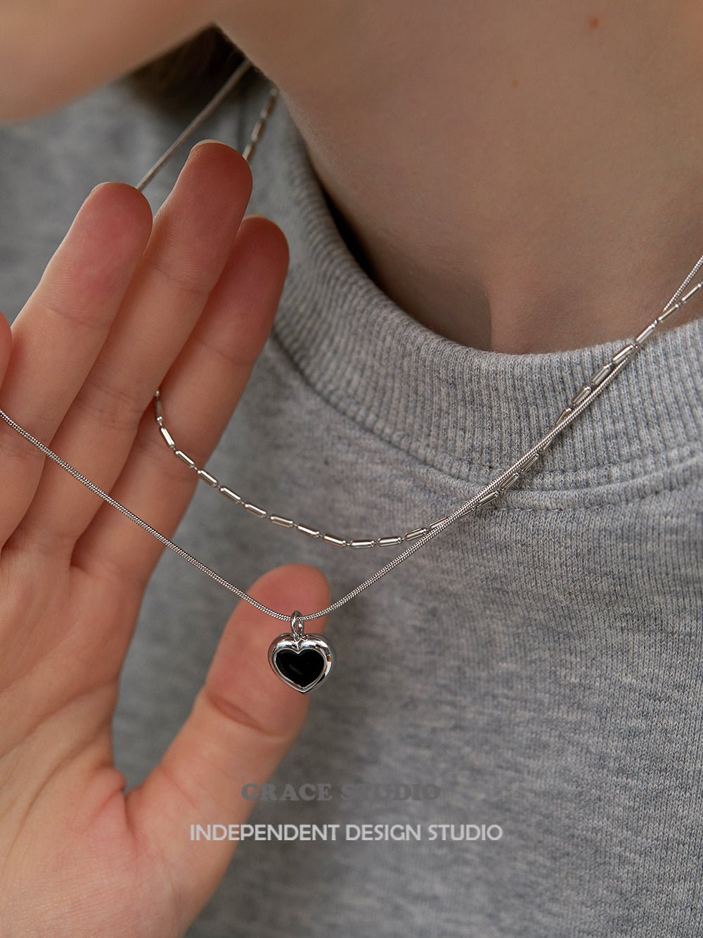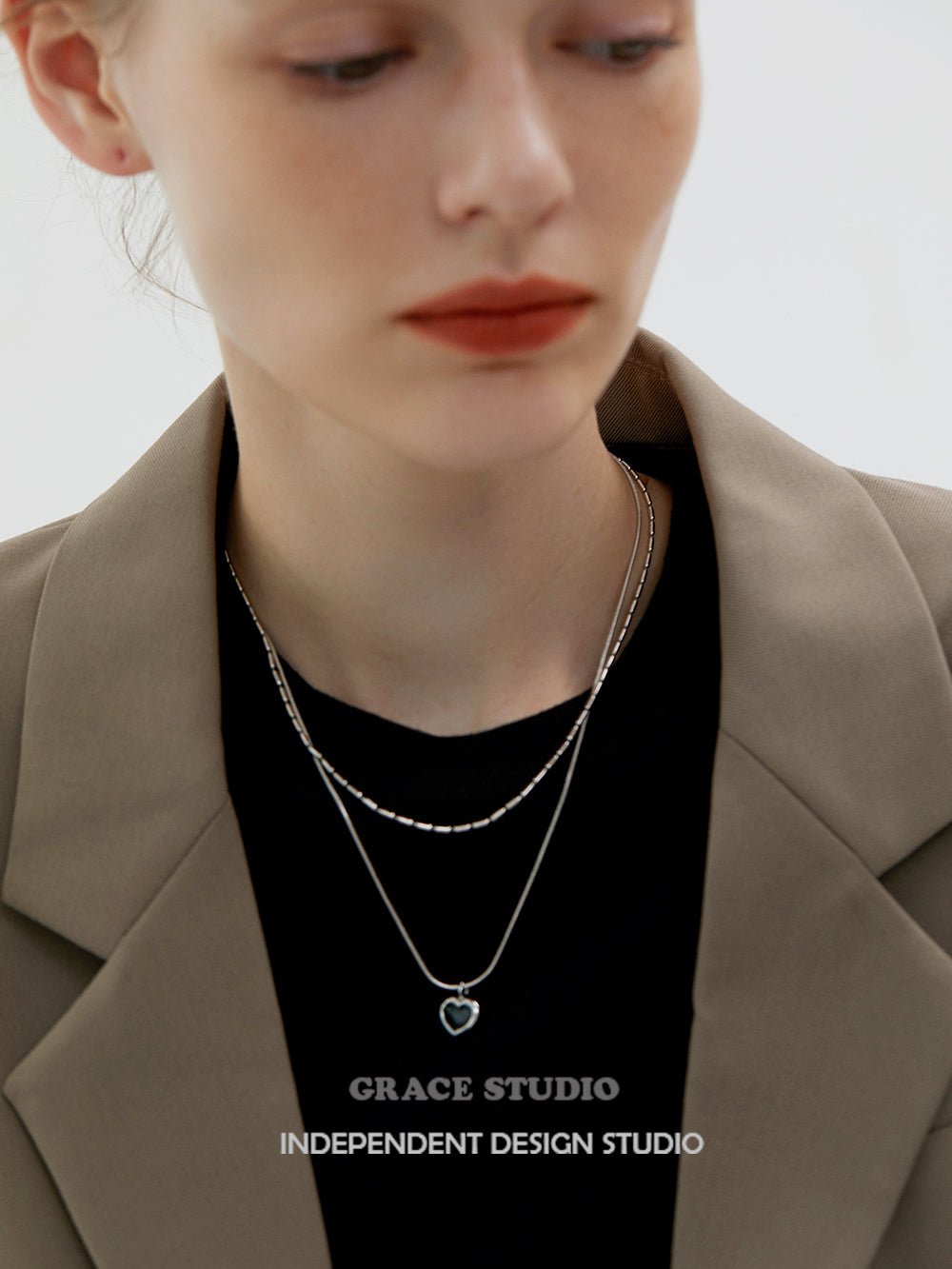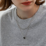 A modern take on classic romance, this layered necklace pairs a sleek snake chain with a delicate heart pendant outlined in stainless steel. The fluid silhouette and double-layer styling create effortless dimension, making it a refined piece for everyday wear or subtle statement looks. Crafted for versatility and charm, it transitions seamlessly from casual to elevated outfits.