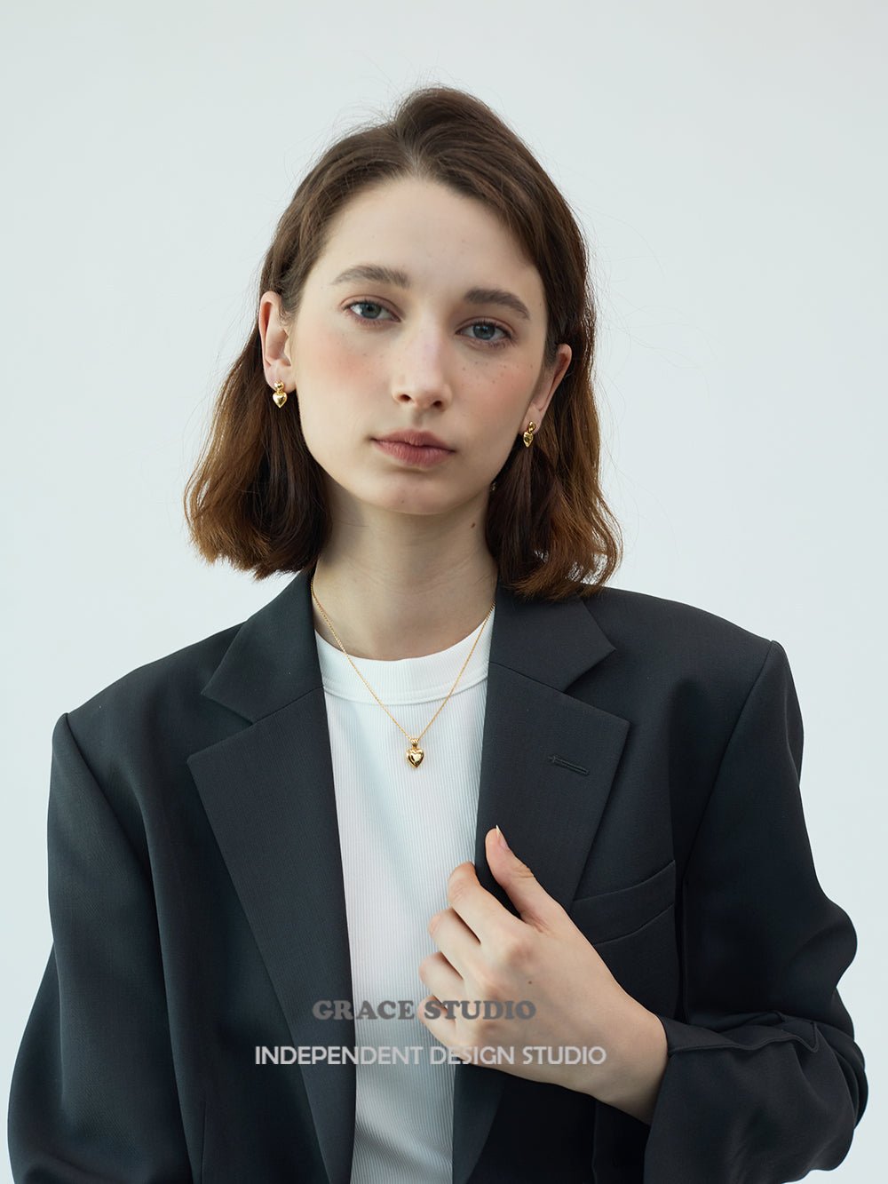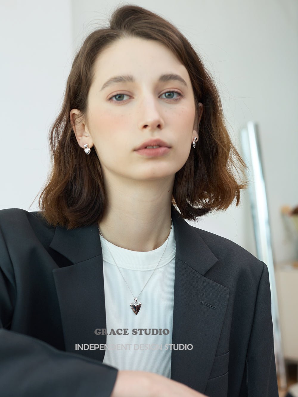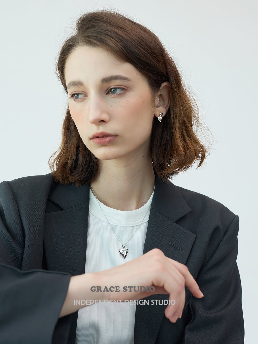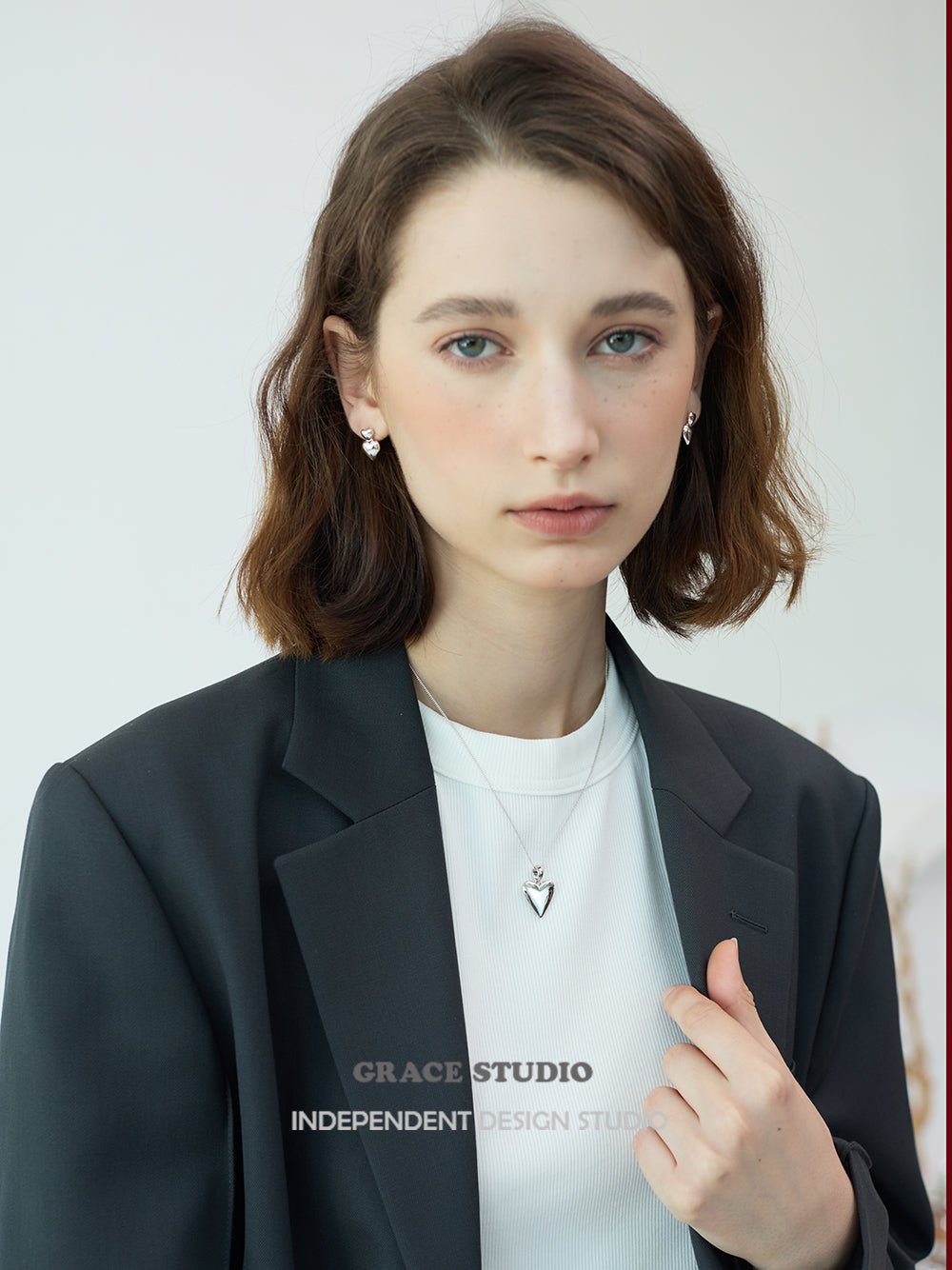 Graceful in its simplicity, this necklace features a smooth, puffed heart pendant engraved with “GS” — a signature symbol of Grace Studio. Crafted in cool-toned silver, it’s strung on a fine snake chain that sits softly against the skin. Wear it alone for a minimalist look or pair with matching earrings for a polished set.