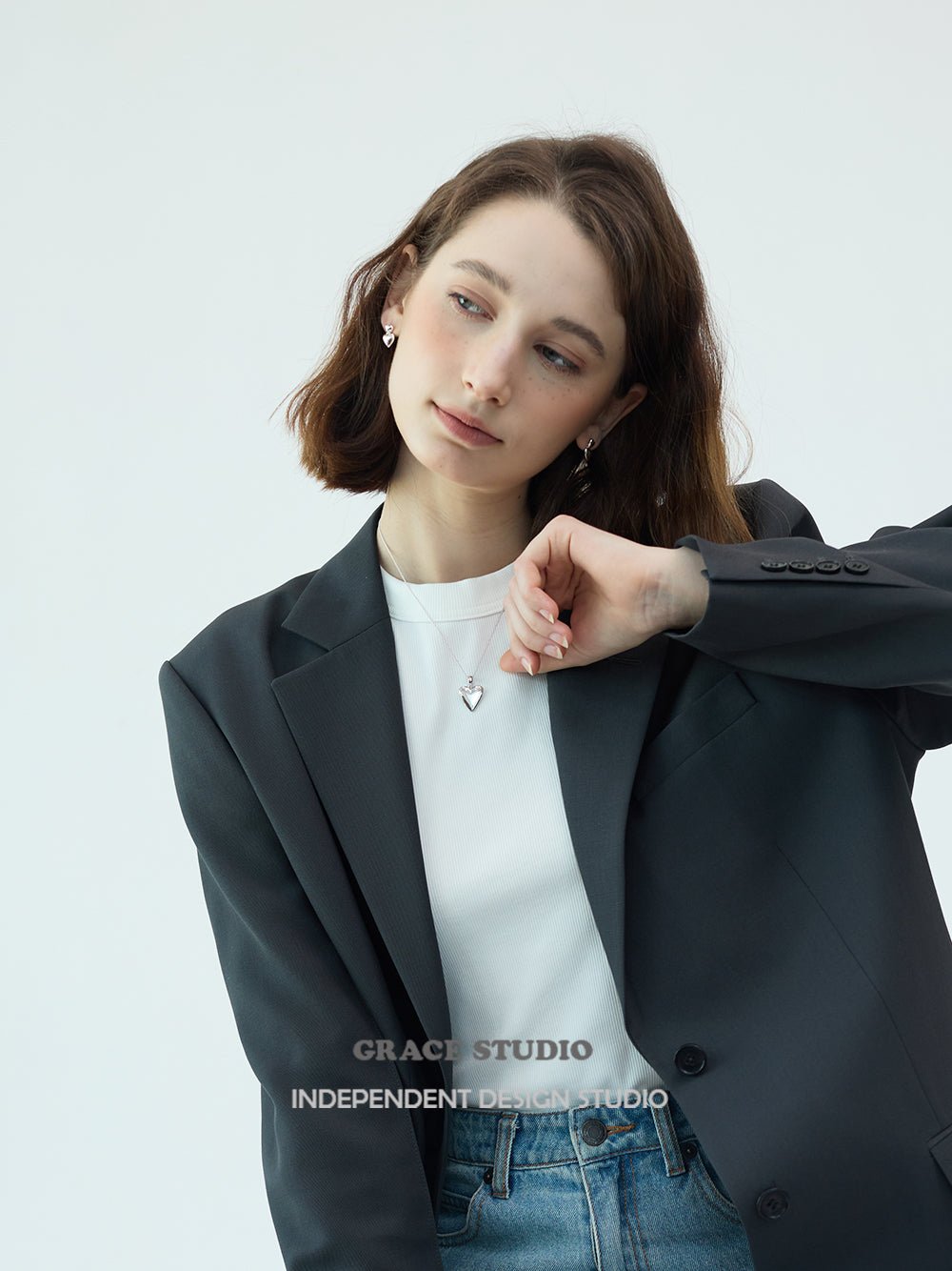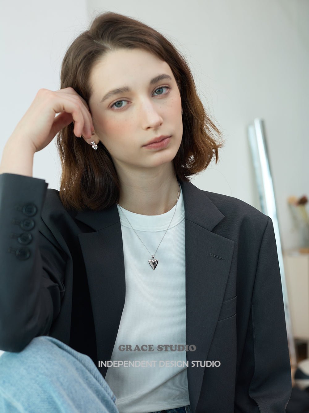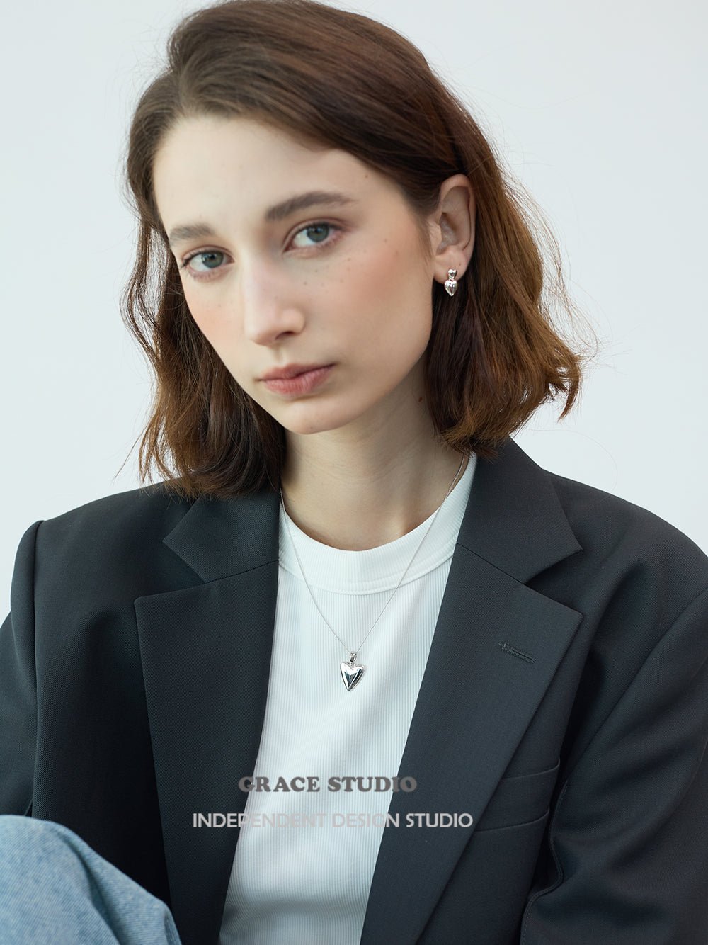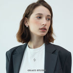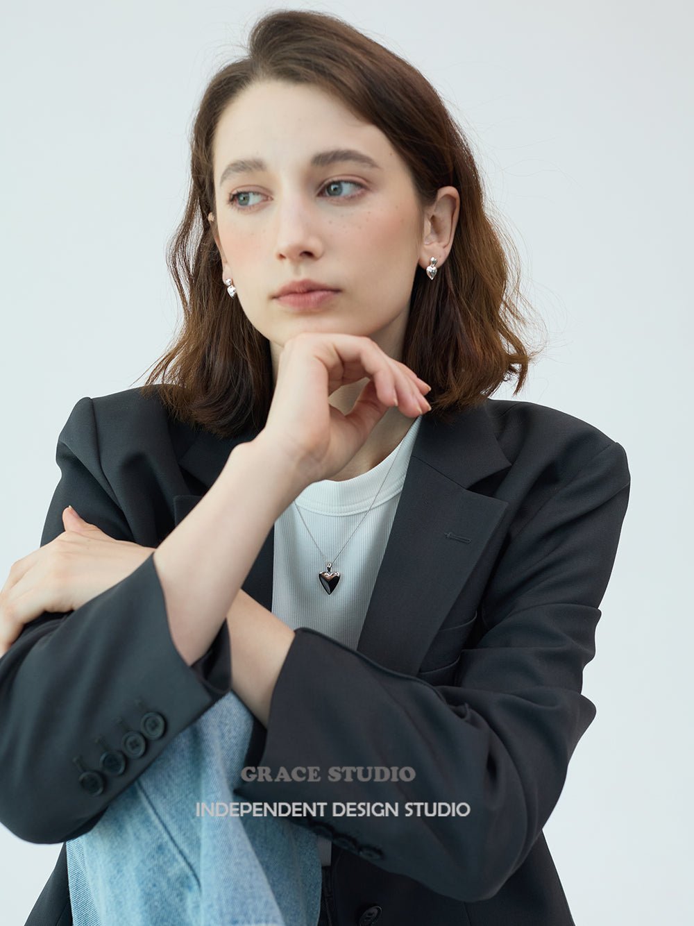 Graceful in its simplicity, this necklace features a smooth, puffed heart pendant engraved with “GS” — a signature symbol of Grace Studio. Crafted in cool-toned silver, it’s strung on a fine snake chain that sits softly against the skin. Wear it alone for a minimalist look or pair with matching earrings for a polished set.