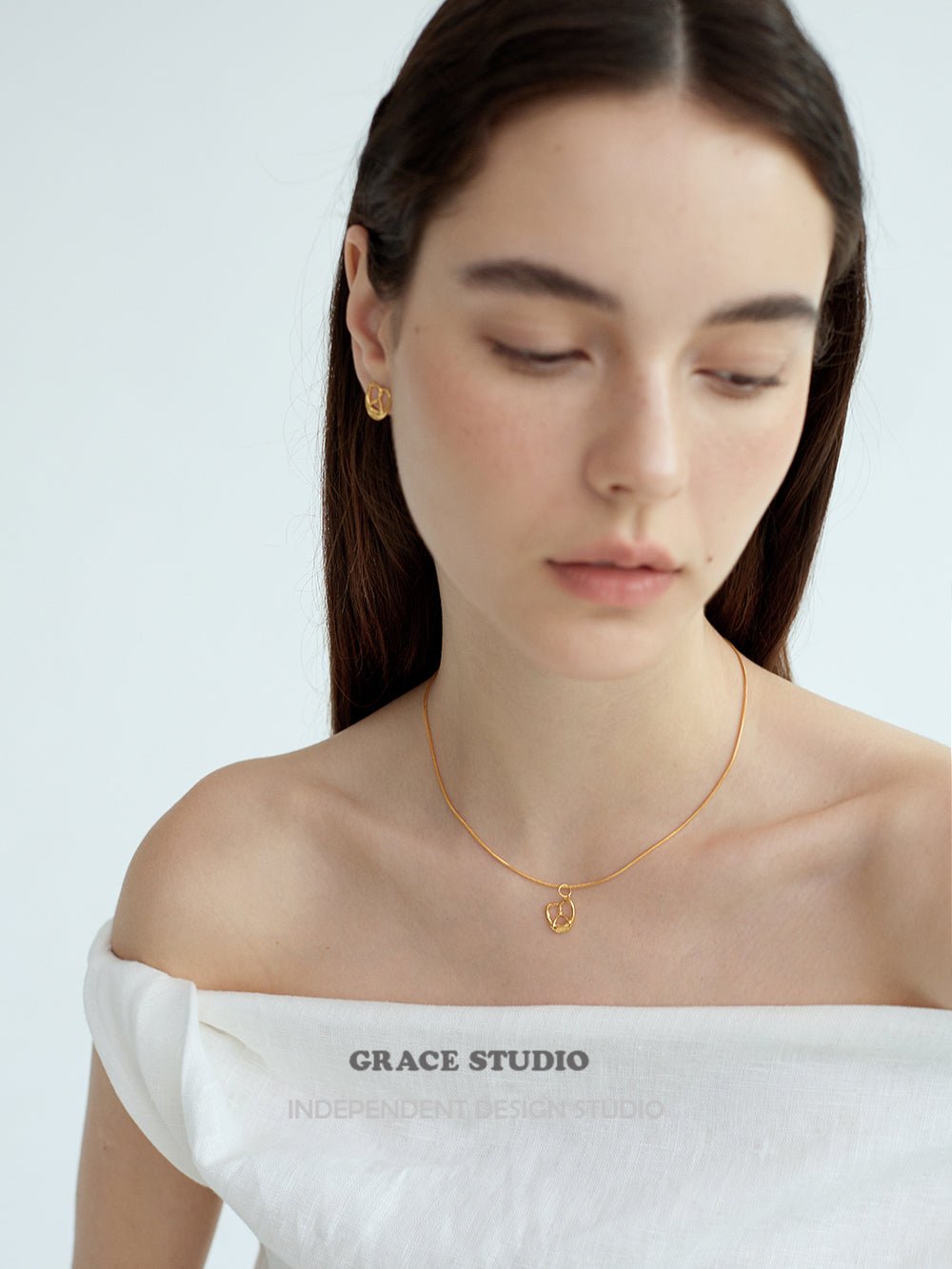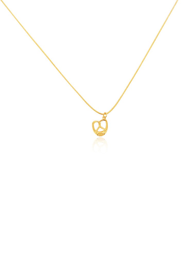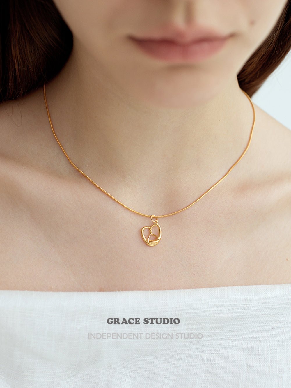 Radiating elegance, this delicate necklace features a gracefully intertwined heart pendant, symbolizing unity and affection. Crafted from gleaming 18K gold-plated brass, it complements every look, from everyday casual to sophisticated evening attire. The sleek chain provides a refined silhouette, while the pendant’s unique design adds a subtle touch of sophistication. Ideal for expressing timeless love and personal style.