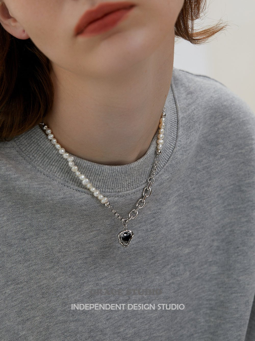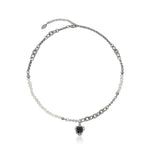 Black Heart Pendant Asymmetry Pearl-Chain Necklace