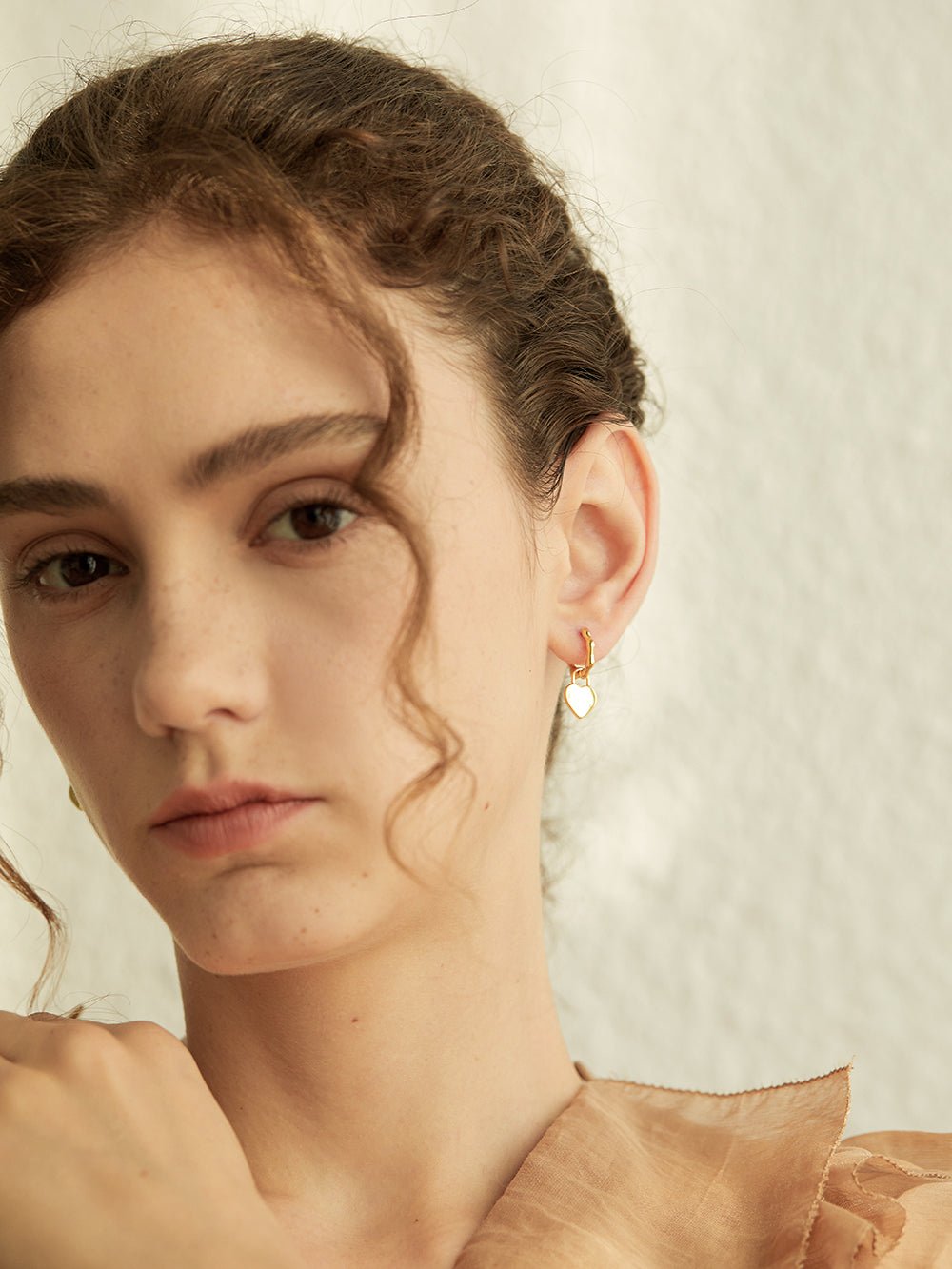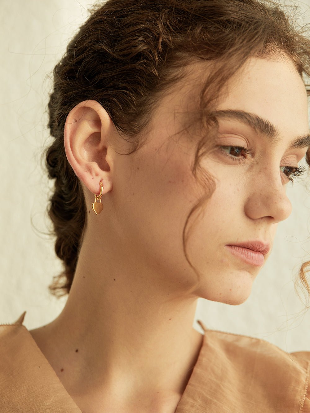 Sleek yet full of sentiment, these detachable heart charm hoops feature a soft wavy hoop design that mimics fluid motion, paired with a minimalist heart pendant. Wear them together for a playful romantic statement or remove the charm for a clean, sculptural look. Available in radiant gold and cool-toned silver, they offer day-to-night versatility and timeless elegance.