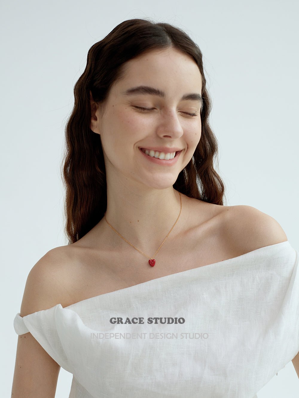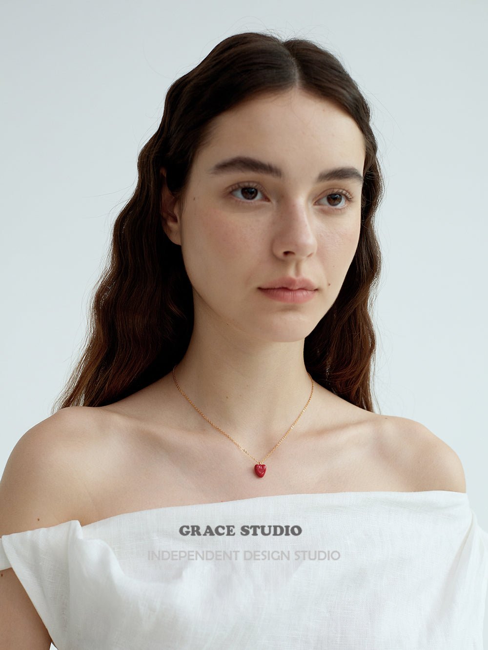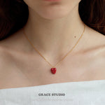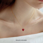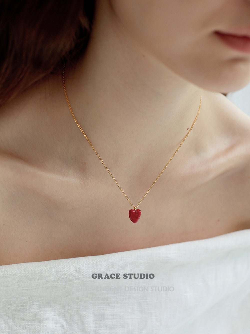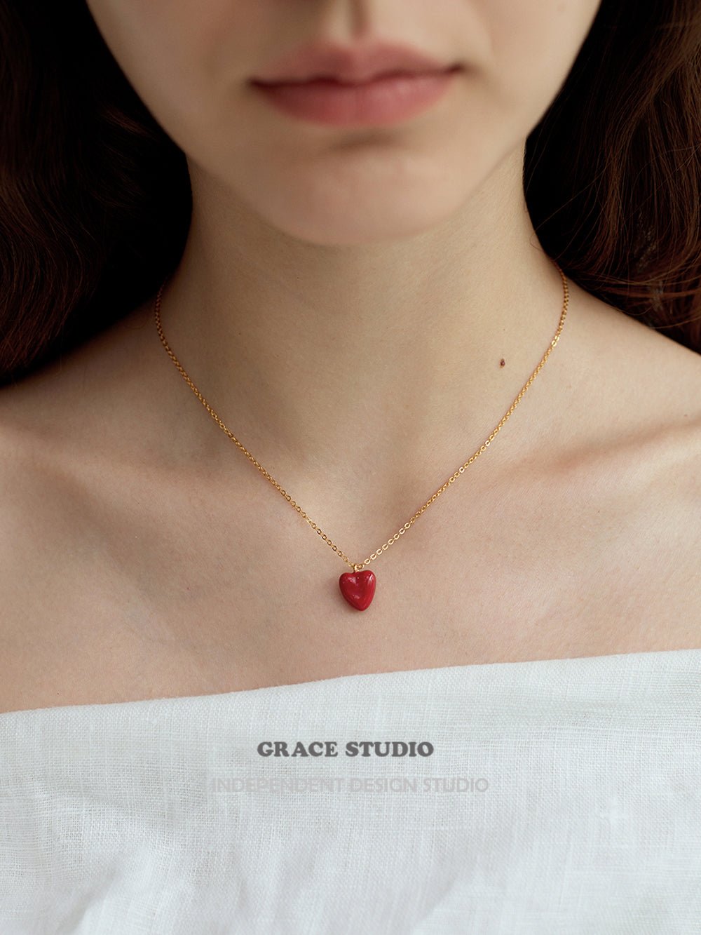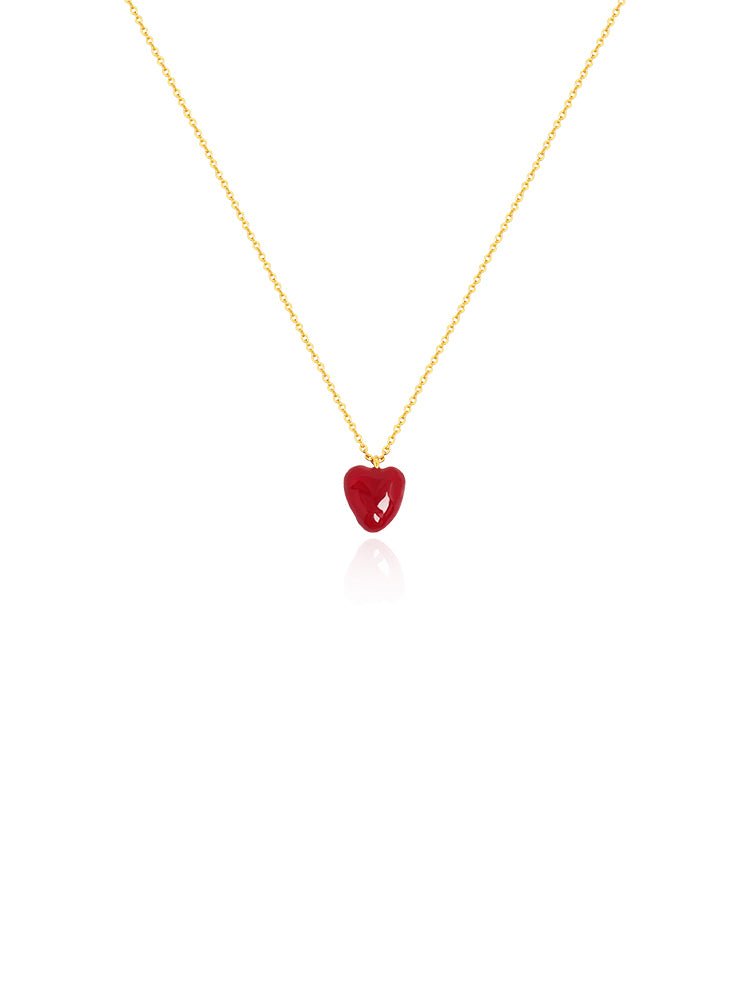 A bold yet charming piece, this necklace features a deep red heart-shaped pendant crafted from high-shine resin, suspended from a sleek 18K gold-plated chain. The minimalist design lets the rich red tone take center stage, adding a romantic accent to any outfit. Whether worn on its own or layered, it brings a sweet yet sophisticated flair to your neckline. Lightweight and versatile, it’s perfect for adding a pop of color to everyday looks or softening eveningwear with a touch of whimsy.