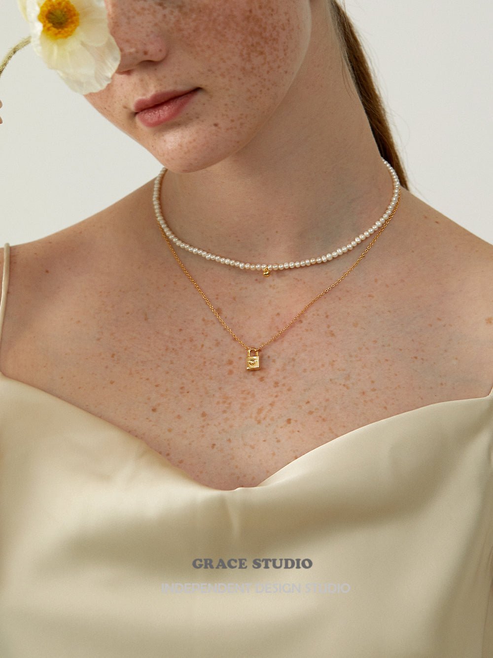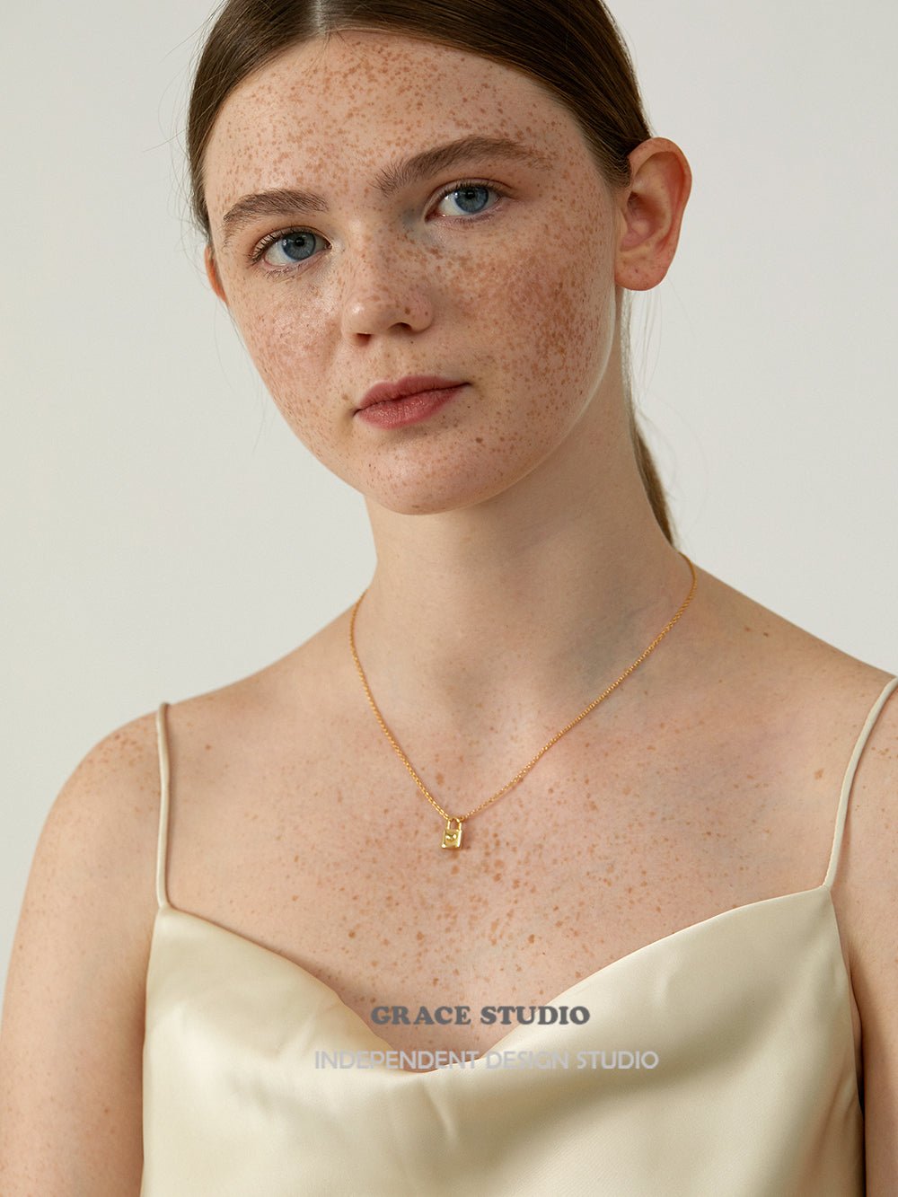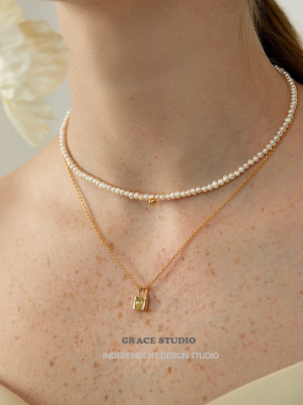 Crafted from high-quality gold-plated brass, the necklace combines precision and polish. Whether worn with everyday basics or romantic evening pieces, it adds a refined accent full of quiet personality.