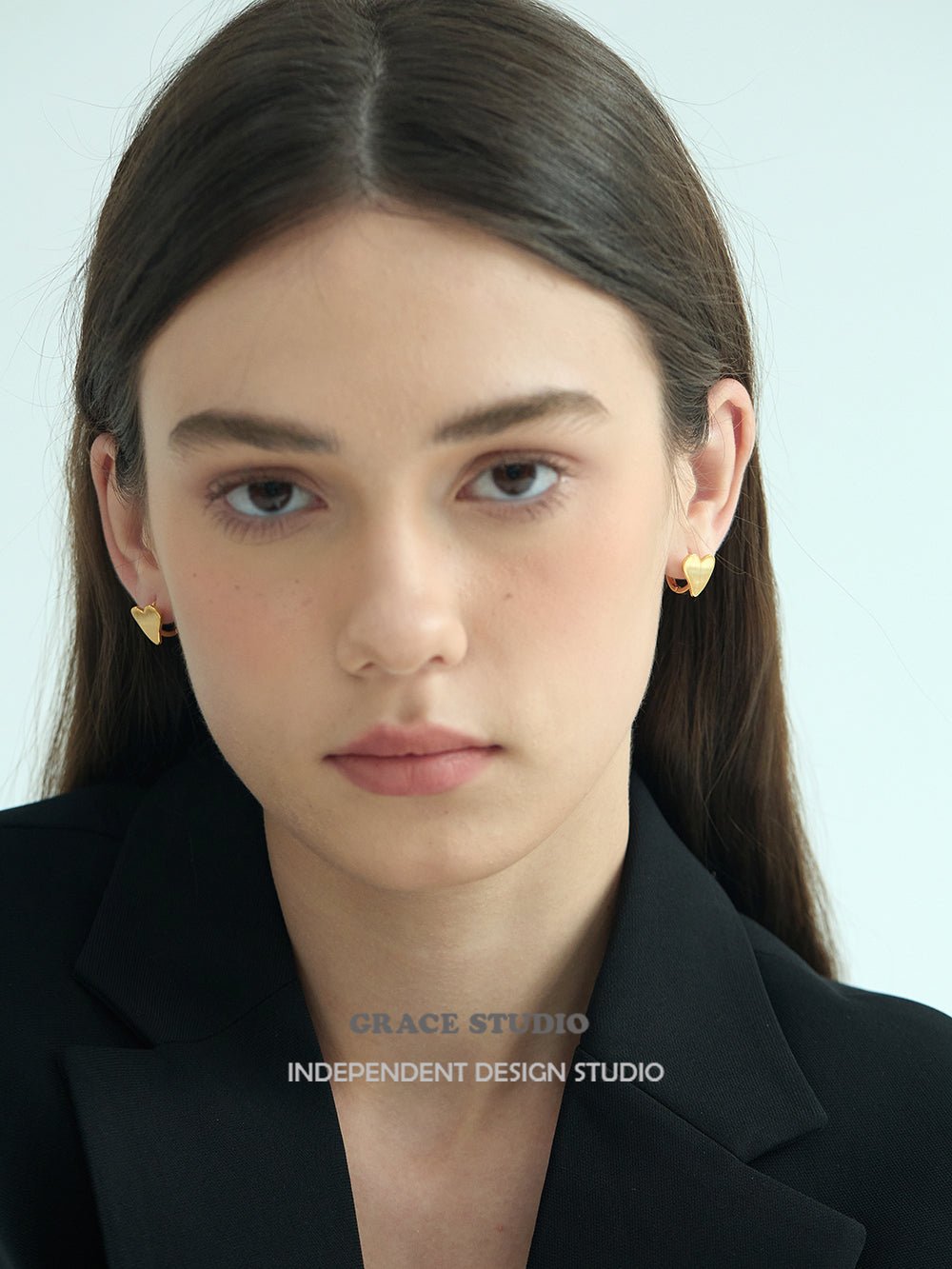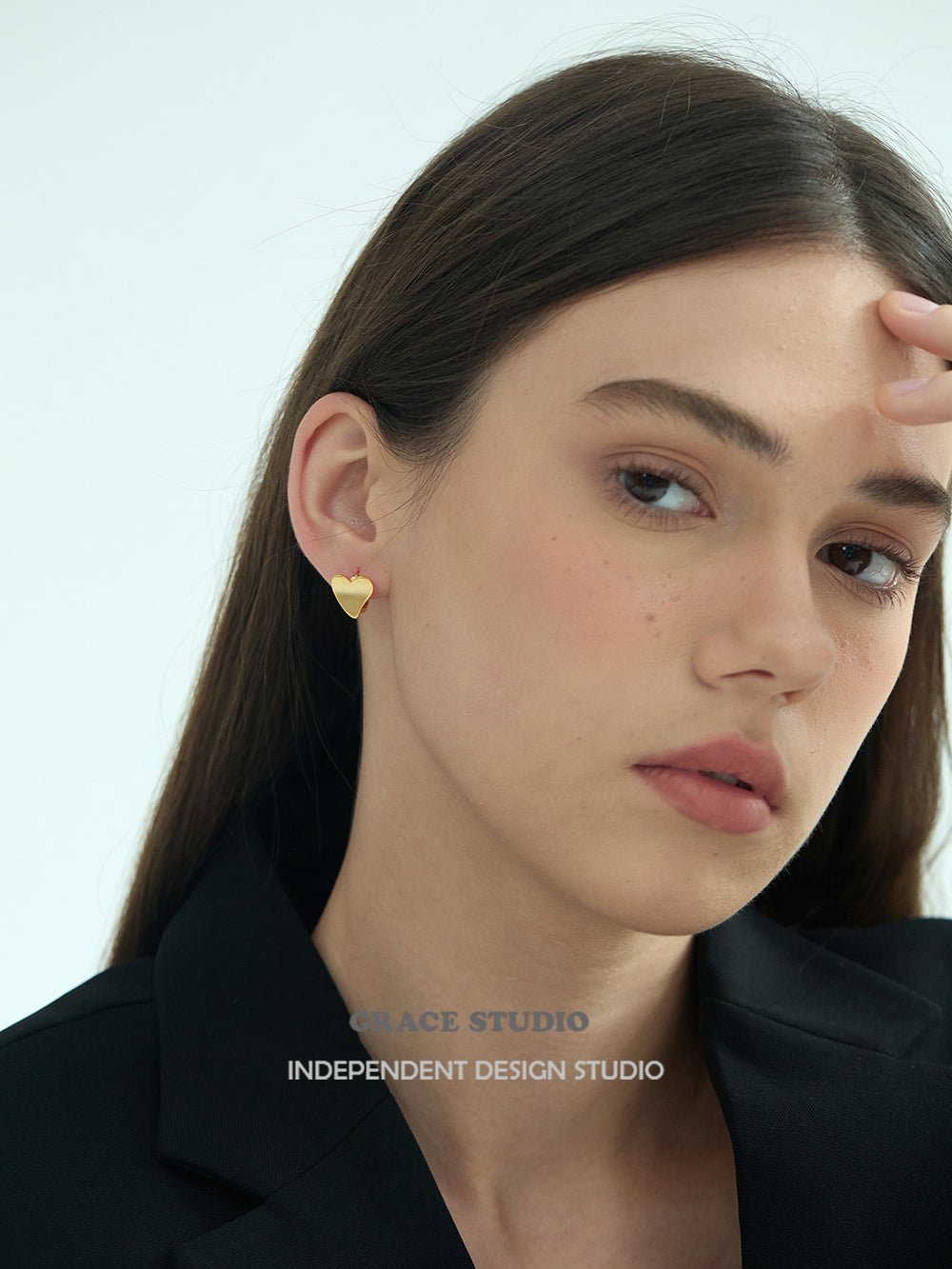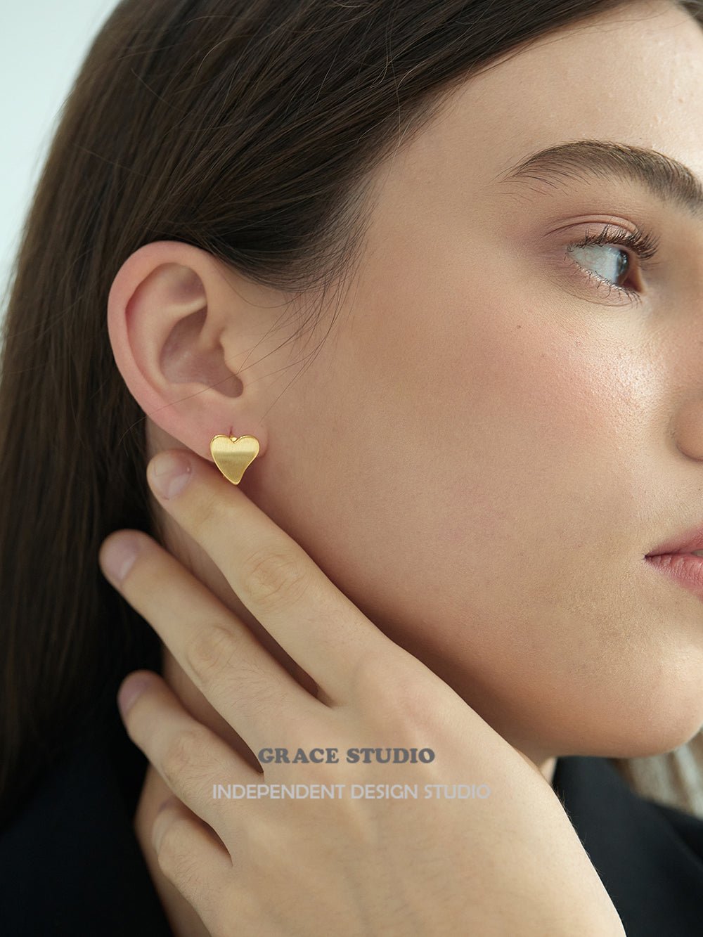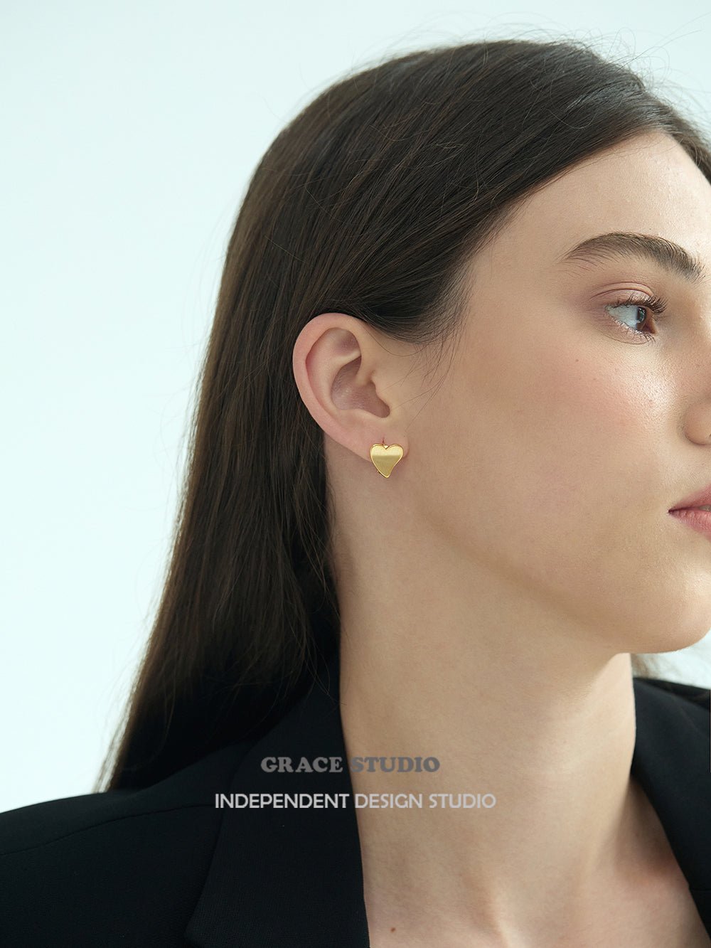 A romantic interpretation of minimalism, these Brushed Heart Huggie Earrings feature a softly contoured heart motif with a satin matte finish. The double-layered design adds subtle dimension, creating a modern silhouette that hugs the earlobe gently and comfortably. Available in warm gold or cool silver tones, this pair blends sweetness with everyday sophistication, perfect for elevating both casual and polished looks.