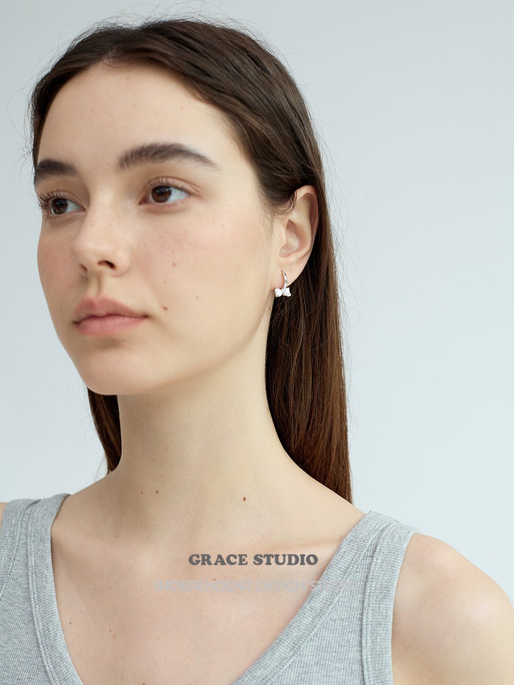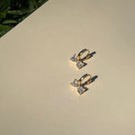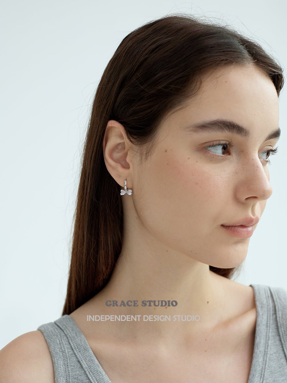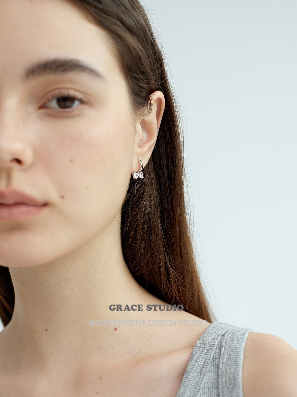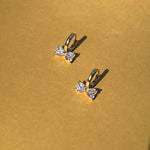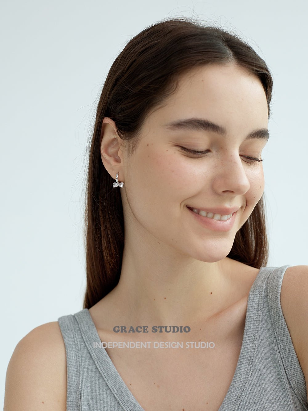 Delicately feminine and full of sparkle, these huggie hoop earrings feature a charming bow motif formed by two dazzling 5A-grade zircon stones. Each bow is crafted from two heart-cut zircons, creating a symmetrical and light-catching silhouette that adds just the right amount of elegance. Available in both platinum-toned copper finishes, these earrings are secured with a compact 1cm hoop for a snug, comfortable fit.