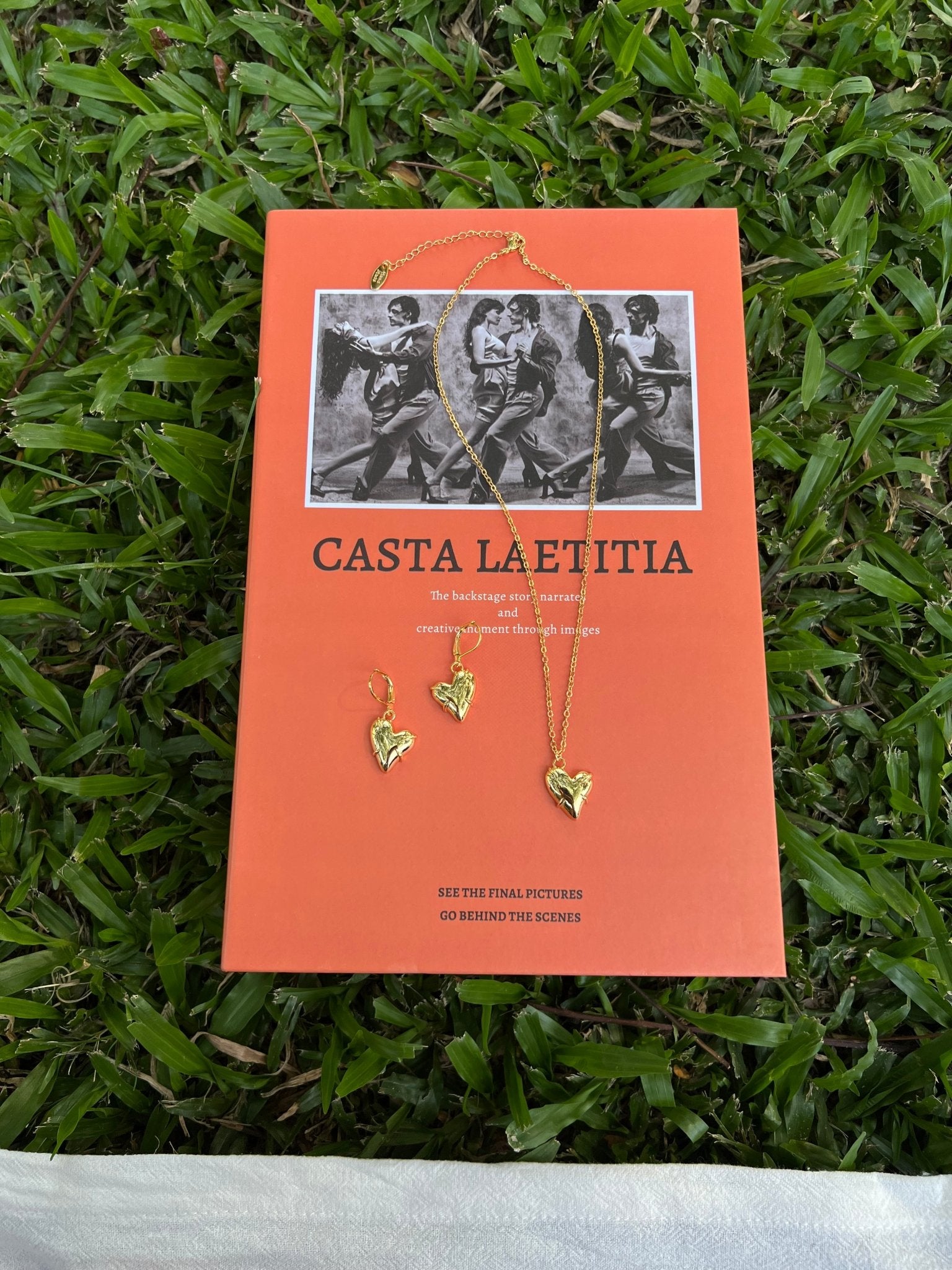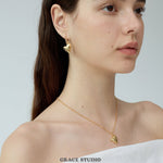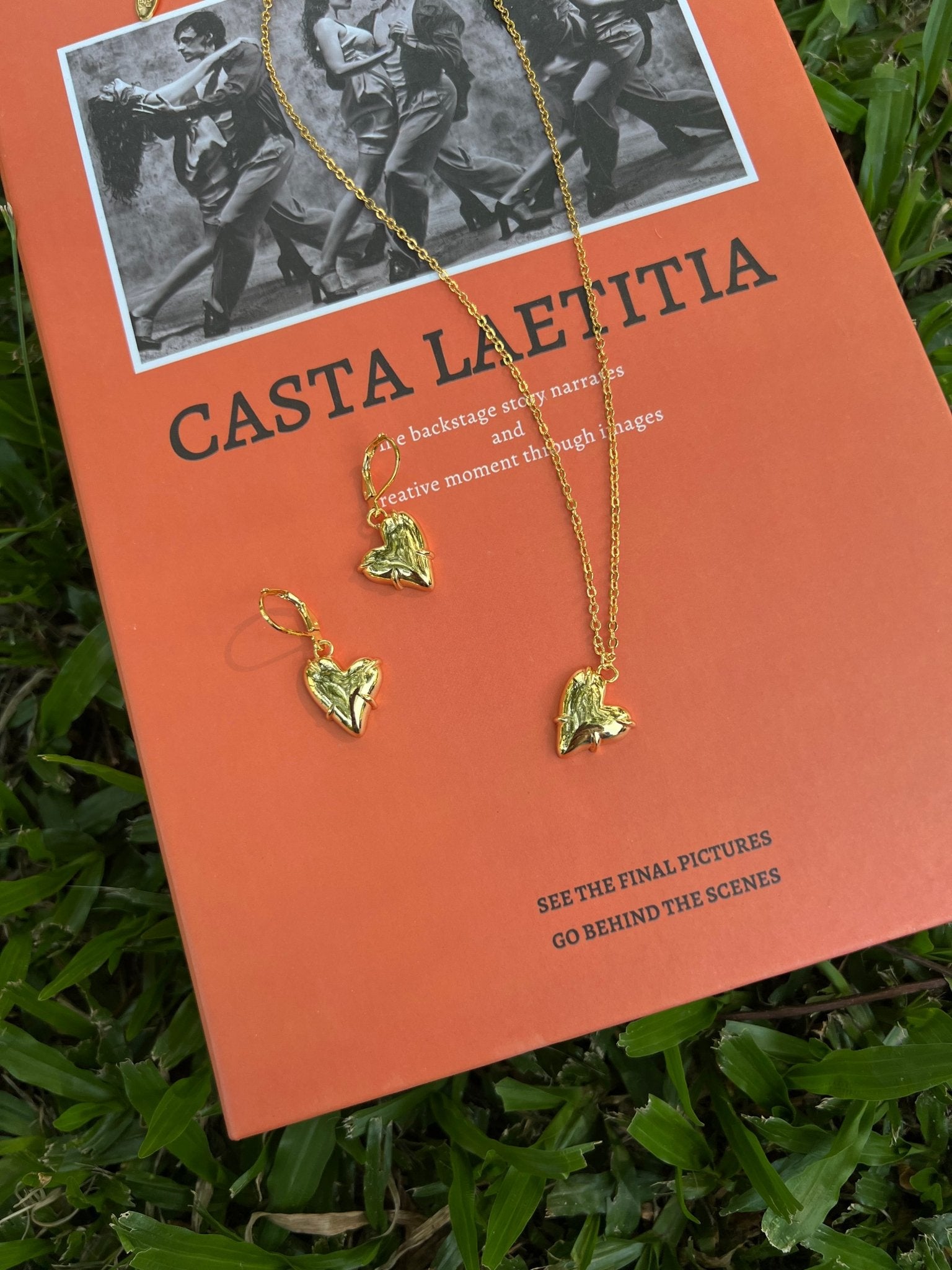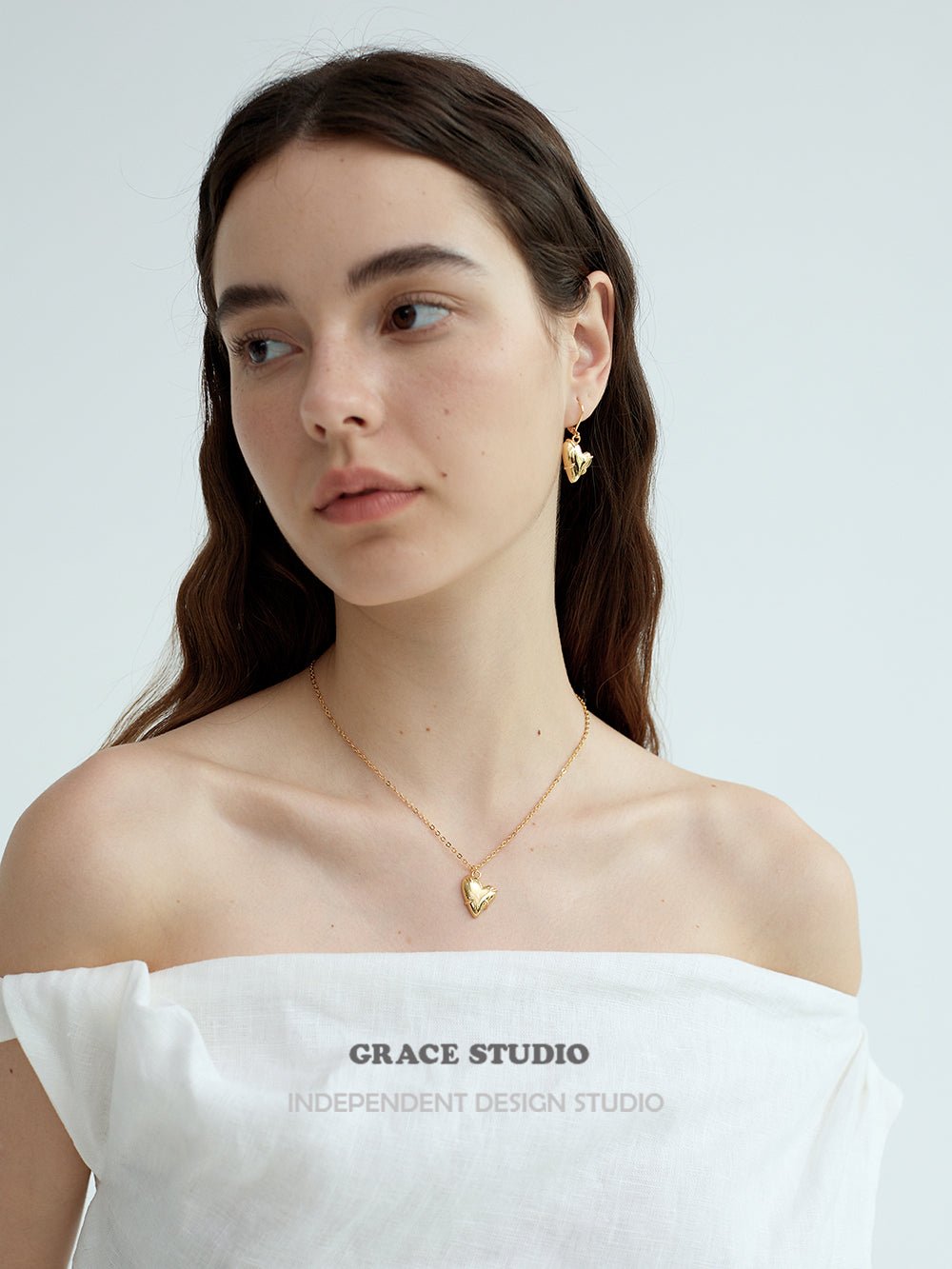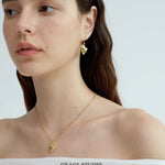 This pendant necklace redefines the heart motif with an edge — literally. Cast in eco-friendly brass and plated in radiant 18K gold, the heart-shaped charm features a softly contoured surface disrupted by dramatic, thorn-like ridges that extend from its sides. Its asymmetrical, creased silhouette gives the impression of tension and motion, creating a piece that’s both poetic and powerful.
