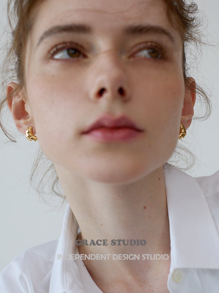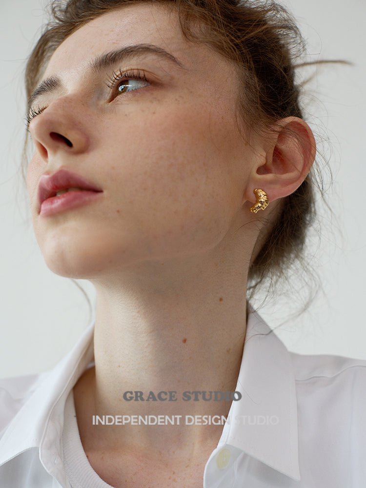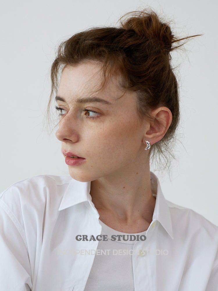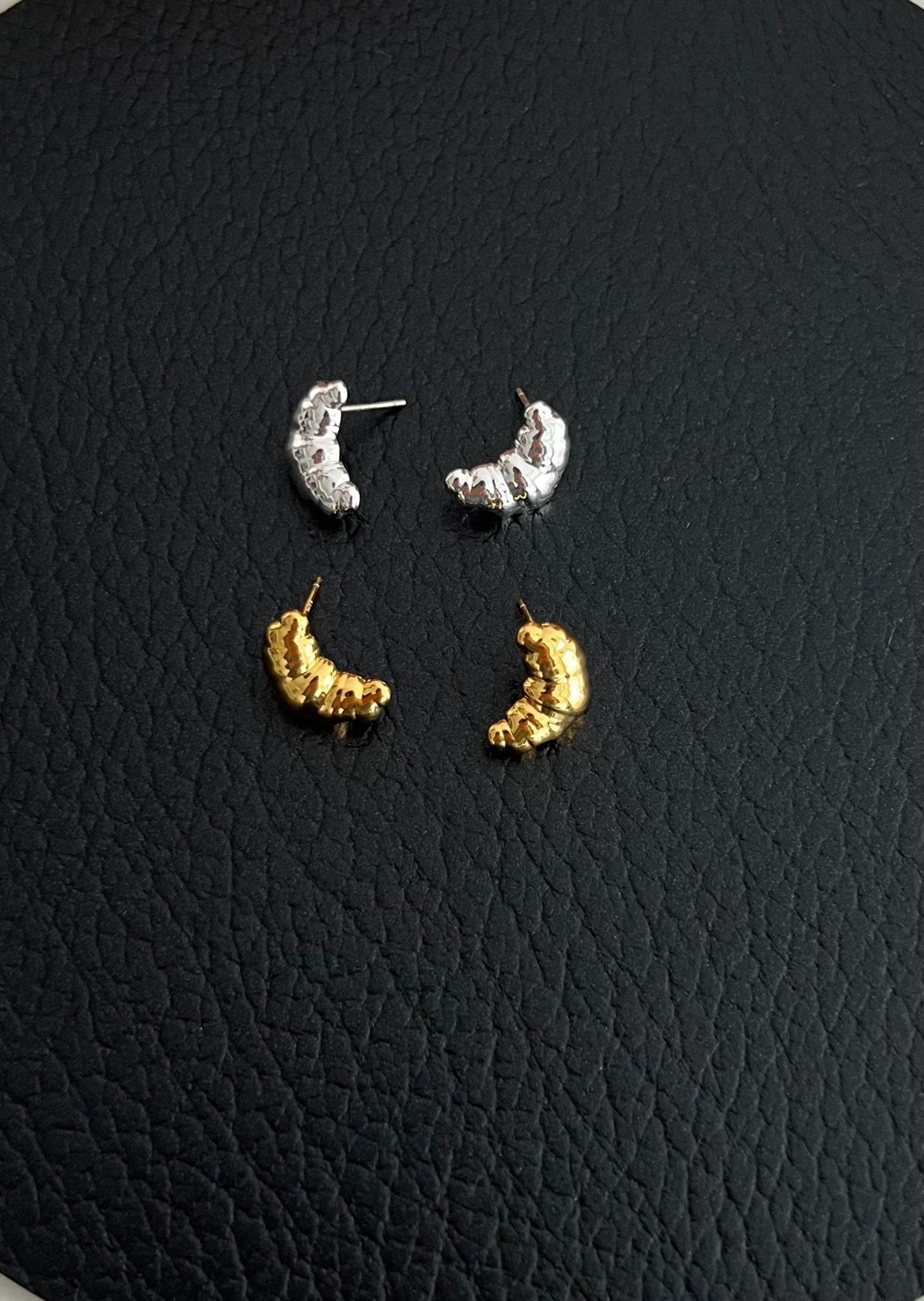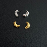 Add a flash of sculptural shine with these organically-textured half hoops. Cast in a molten, crescent-like silhouette, the earrings deliver the look of liquid metal frozen mid-flow, small enough for everyday wear yet bold enough to stand alone. Each pair is finished with a high-polish surface that catches the light from every angle and secures comfortably with 925-silver posts, making them gentle on sensitive ears. Dress them down with denim or let them punctuate an evening look, they’re the effortless “little statement” you’ll reach for again and again.