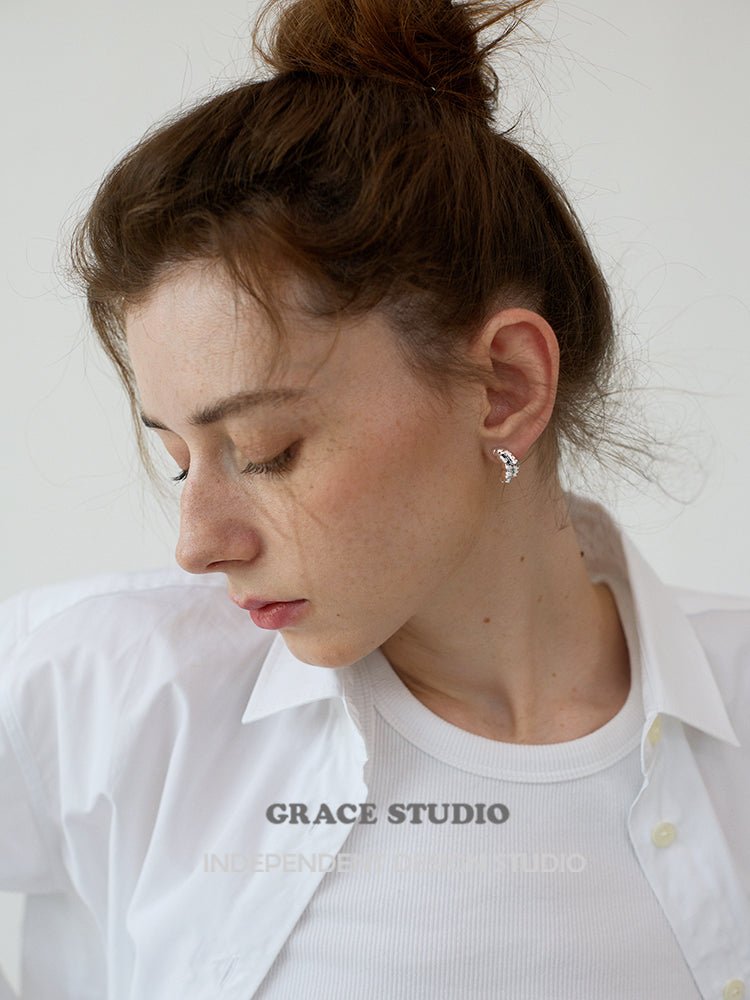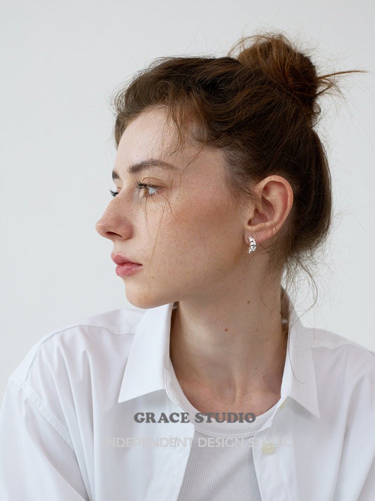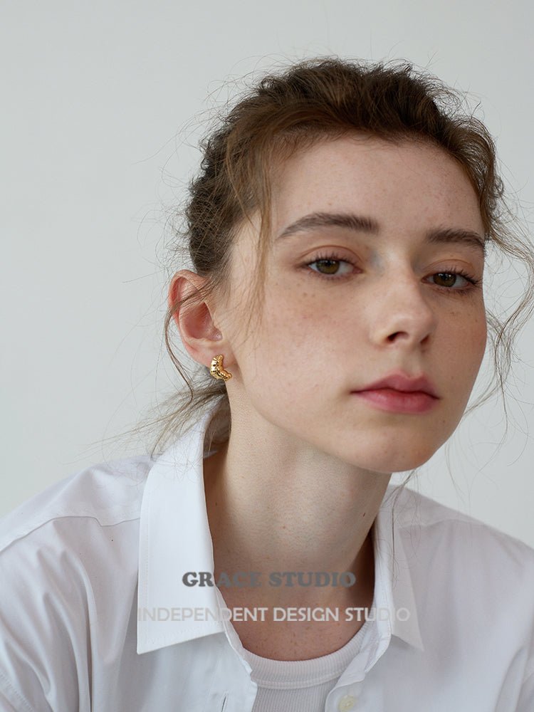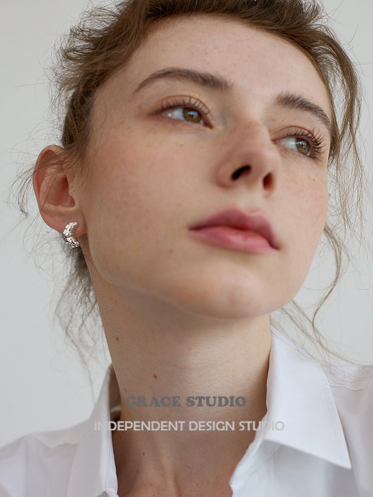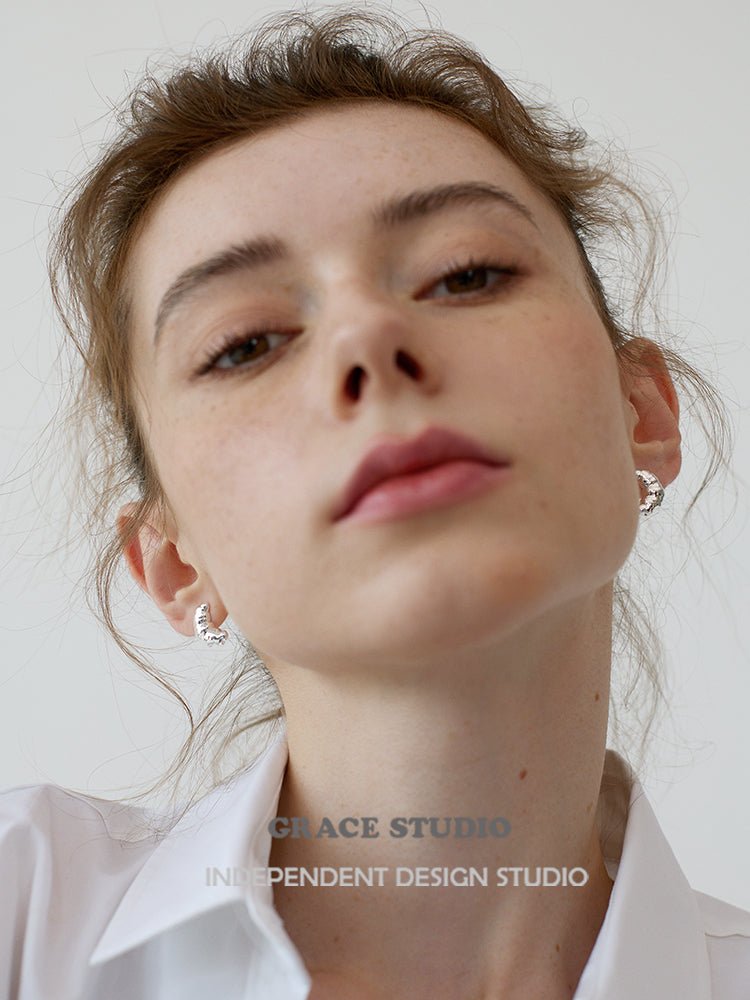 Add a flash of sculptural shine with these organically-textured half hoops. Cast in a molten, crescent-like silhouette, the earrings deliver the look of liquid metal frozen mid-flow, small enough for everyday wear yet bold enough to stand alone. Each pair is finished with a high-polish surface that catches the light from every angle and secures comfortably with 925-silver posts, making them gentle on sensitive ears. Dress them down with denim or let them punctuate an evening look, they’re the effortless “little statement” you’ll reach for again and again.