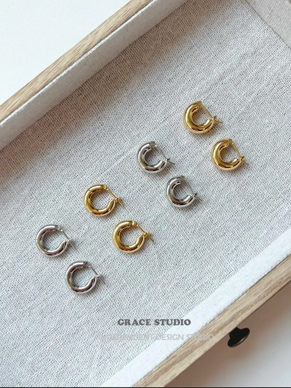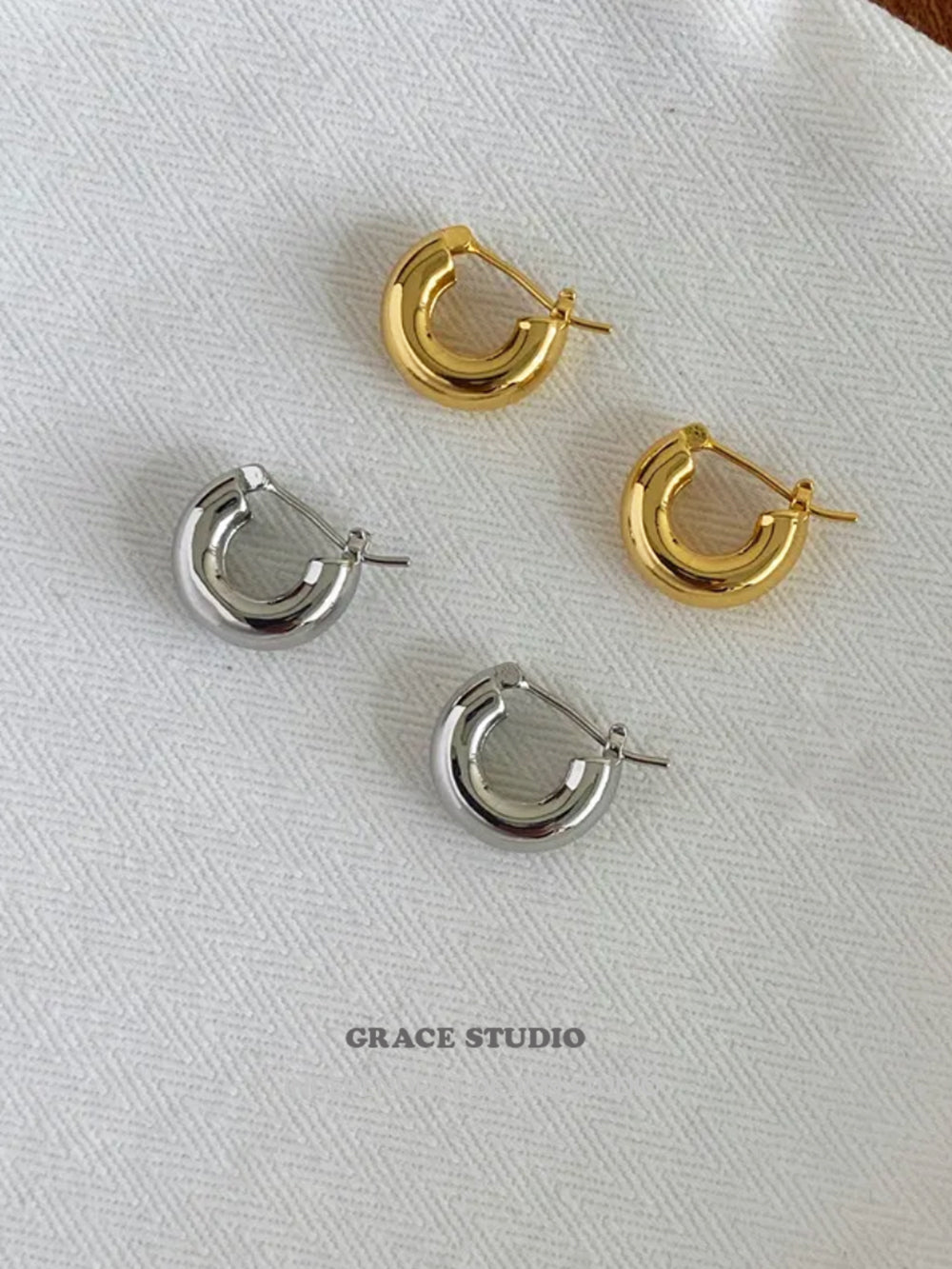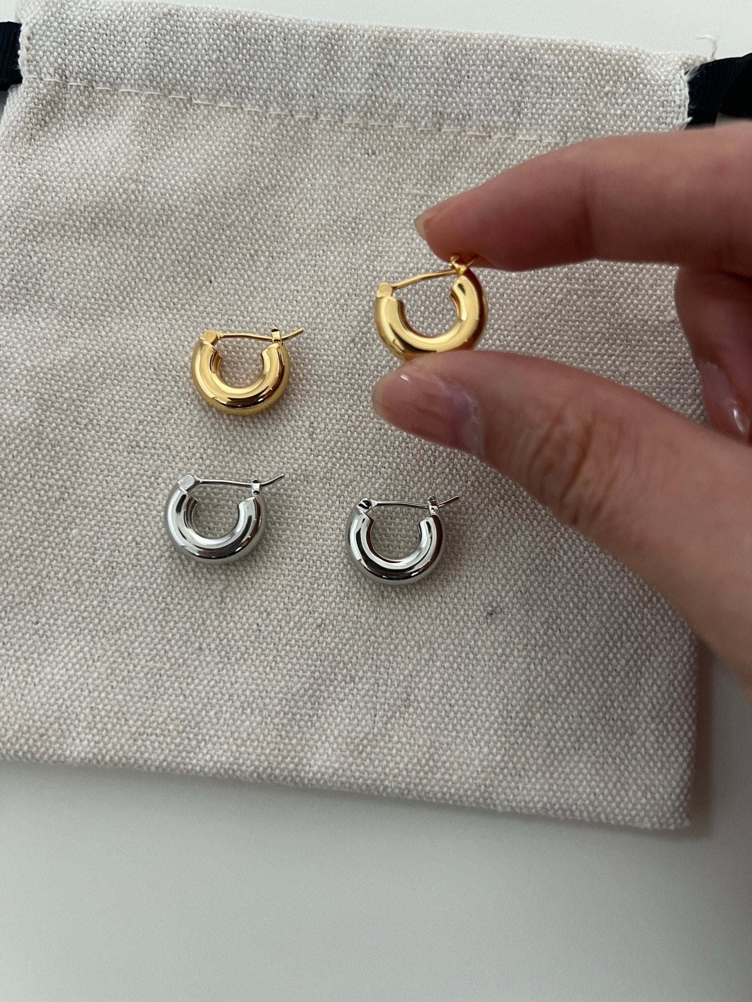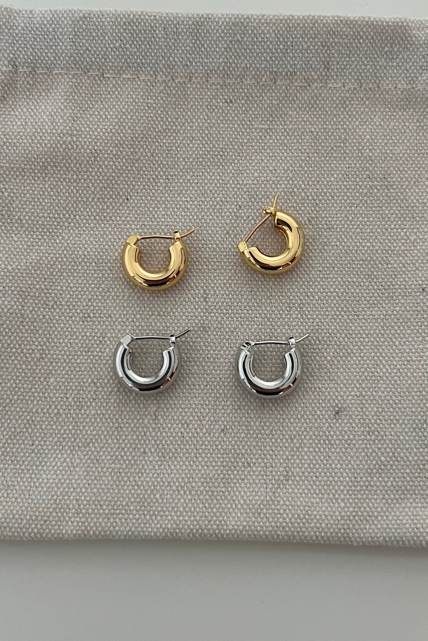 Crafted from high-quality gold-plated or silver-toned brass, each pair is secured with a hinged clasp closure for a seamless, snug fit. With a diameter of approximately 1.2cm, they sit close to the lobe, ideal for daily wear, stacking, or styling solo as a sleek essential.