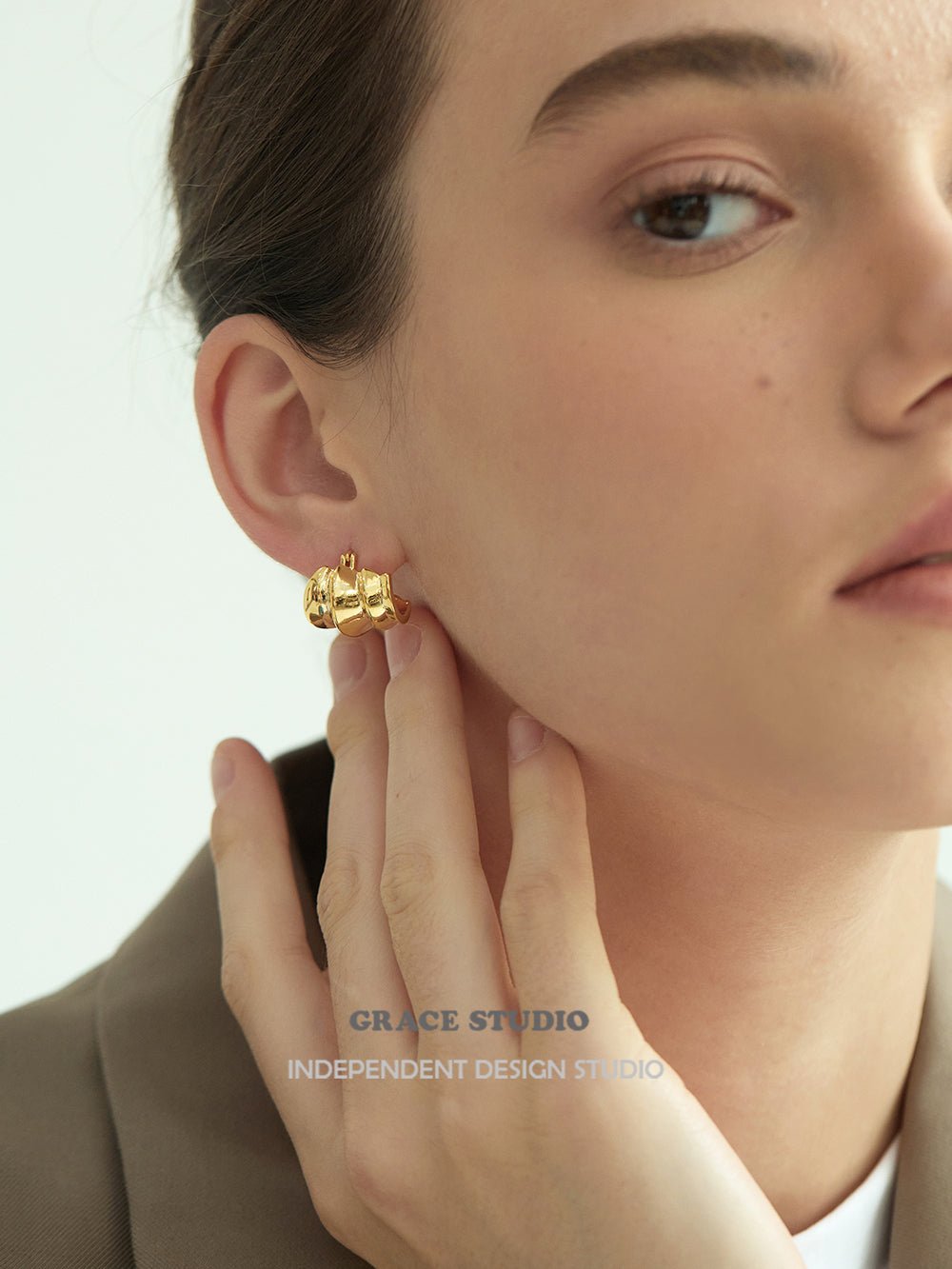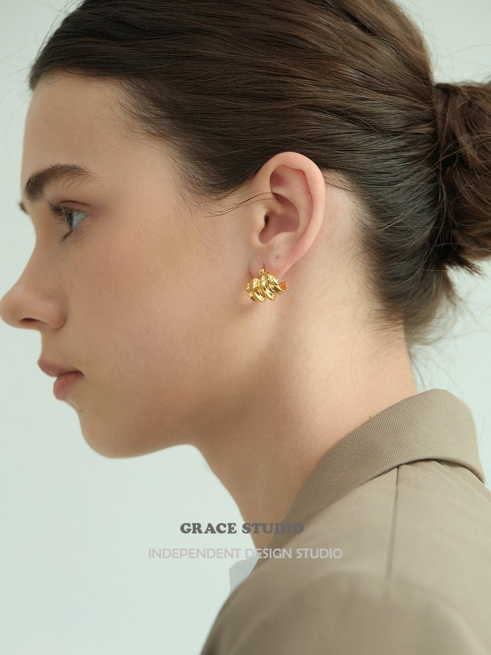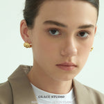 Sculptural and sleek, these earrings feature a bold triple-dome silhouette composed of three rounded, tiered segments that curve gently around the lobe. Each dome is smoothly contoured and highly polished, giving the design a voluminous yet compact presence.