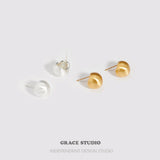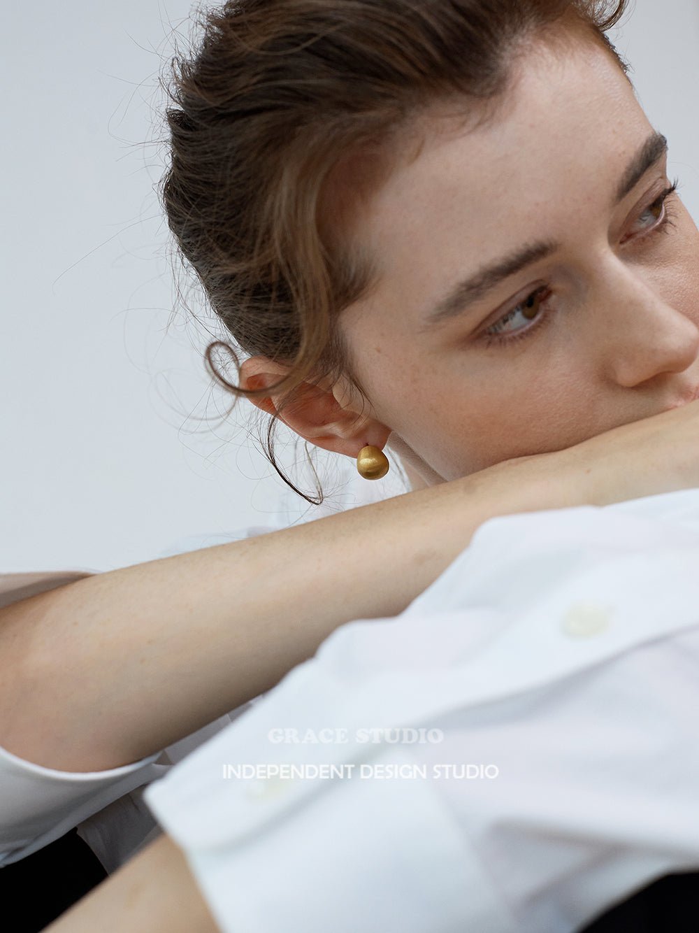 Inspired by the softness of river-washed stones, these sculptural earrings blend minimalist elegance with an artisanal matte finish. The curved pebble-like silhouette is crafted in high-quality alloy and plated in your choice of brushed 18K gold or silver. The subtly domed surface catches light with a muted sheen, offering a refined accent to both casual and tailored looks.