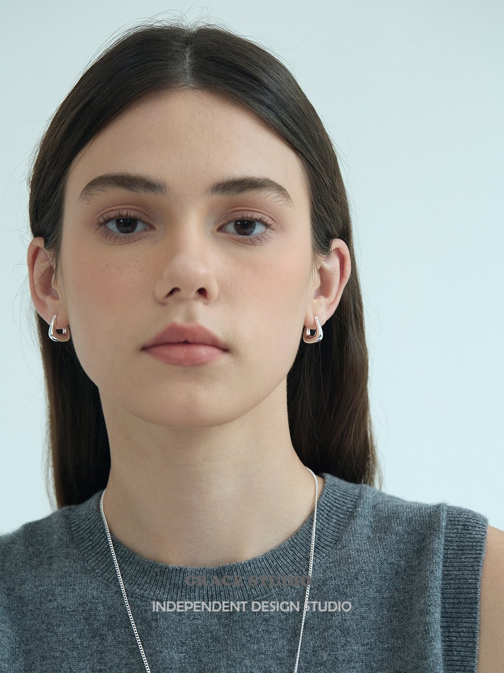 Soft Edge Sculptural U-Shape Hoop Earrings