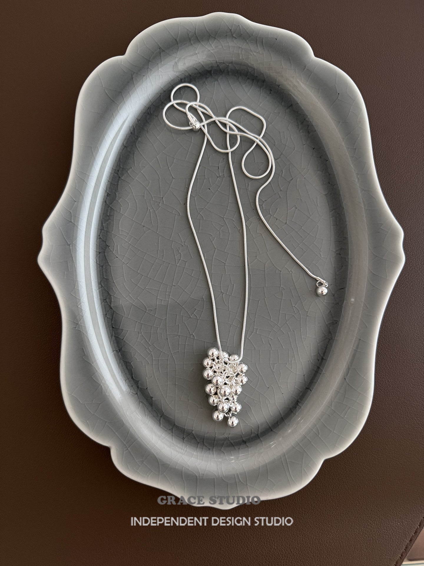 A whimsical statement inspired by nature's bounty, this grape cluster pendant necklace features a cascading bunch of polished spheres in a grape-like formation, adding playful dimension and subtle sparkle to any ensemble. Expertly crafted with a sleek, adjustable snake chain, it combines minimalist elegance with artistic flair, perfect for layering or standalone wear that transitions seamlessly from day to night.