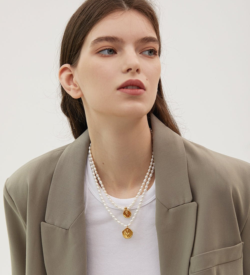 Freshwater Pearl Tulip Coin Pendant Necklace