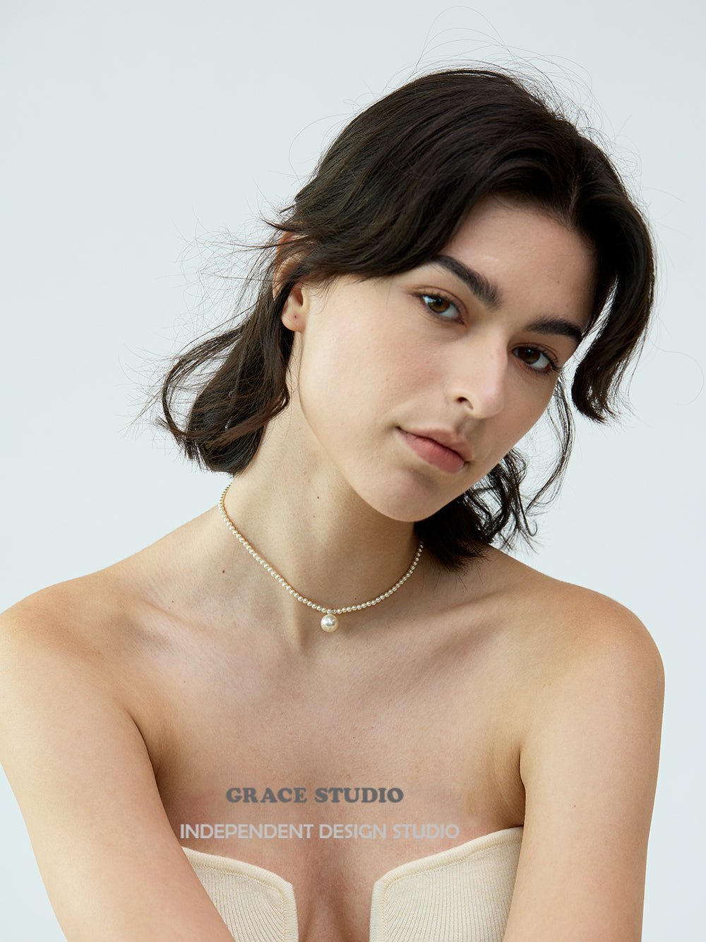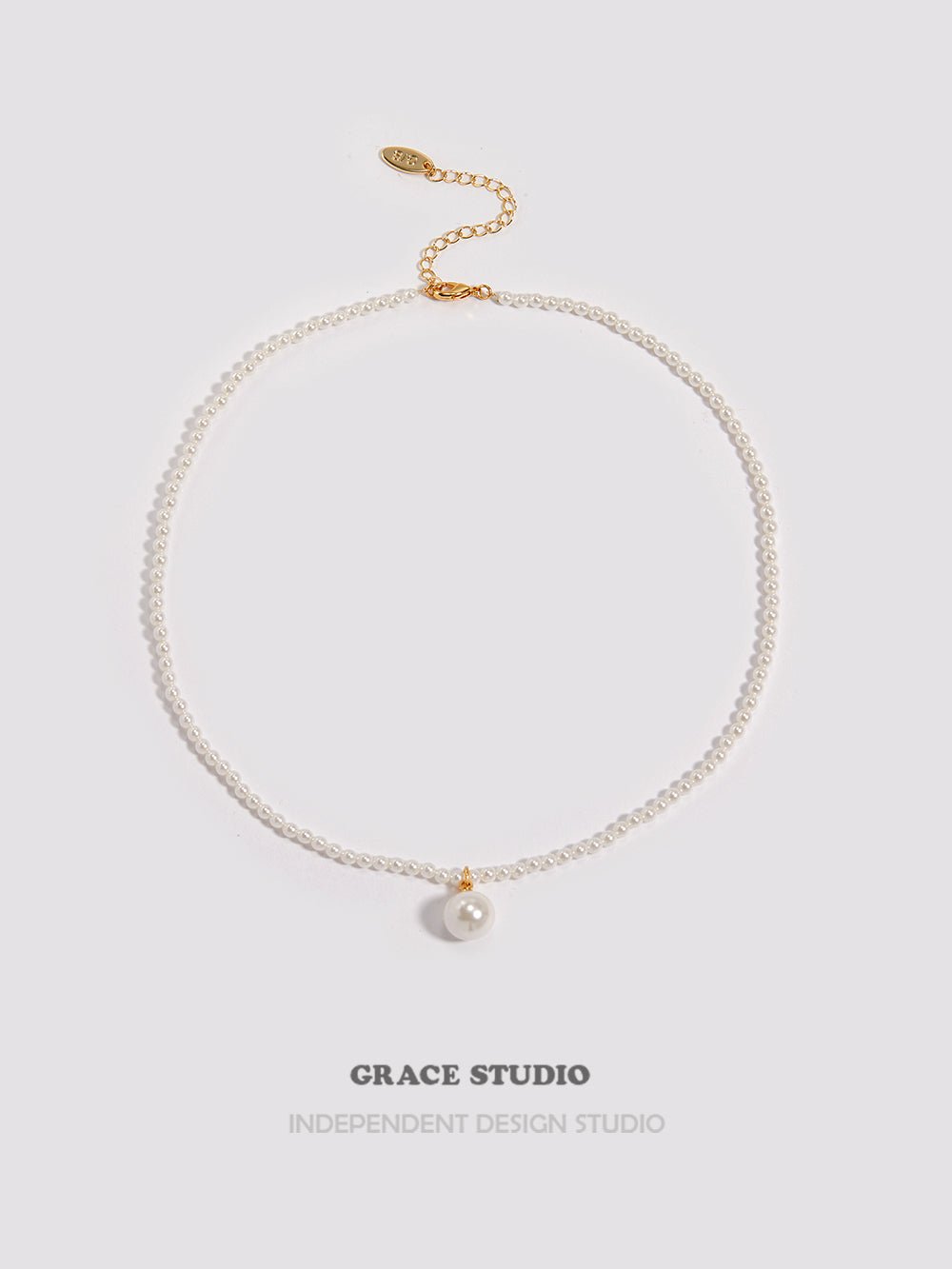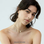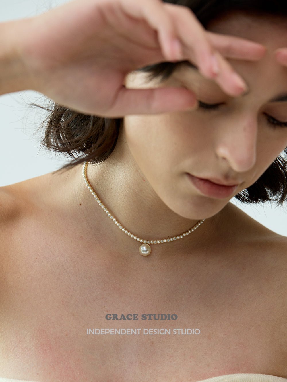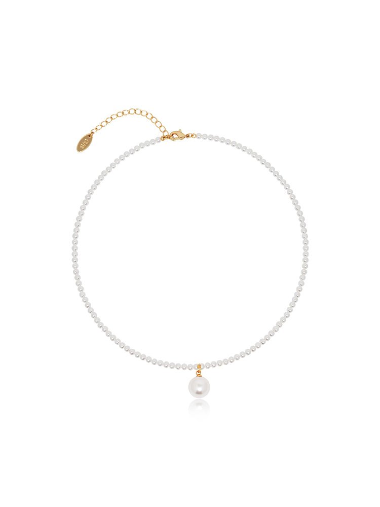 A delicate expression of grace and simplicity, this necklace features a single drop-shaped artificial pearl resting at the center of a string of petite ivory-hued beads. The luminous sheen of the pearl pendant brings a soft elegance, while the adjustable gold-plated chain ensures a tailored fit at the collarbone. Whether worn with minimalist daywear or evening ensembles, this piece adds a timeless accent that’s subtle yet refined.