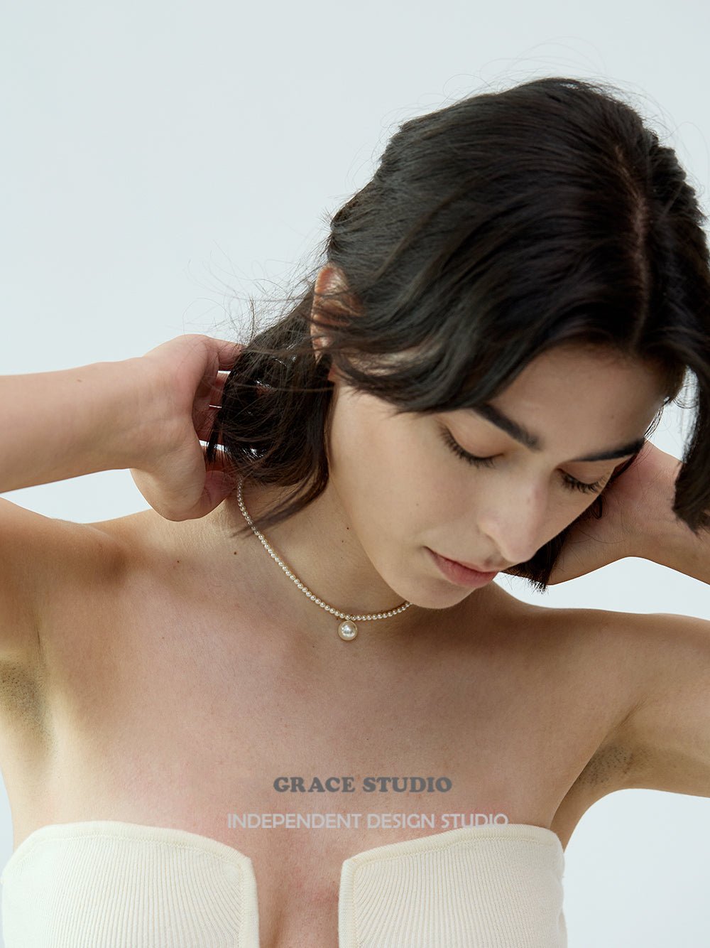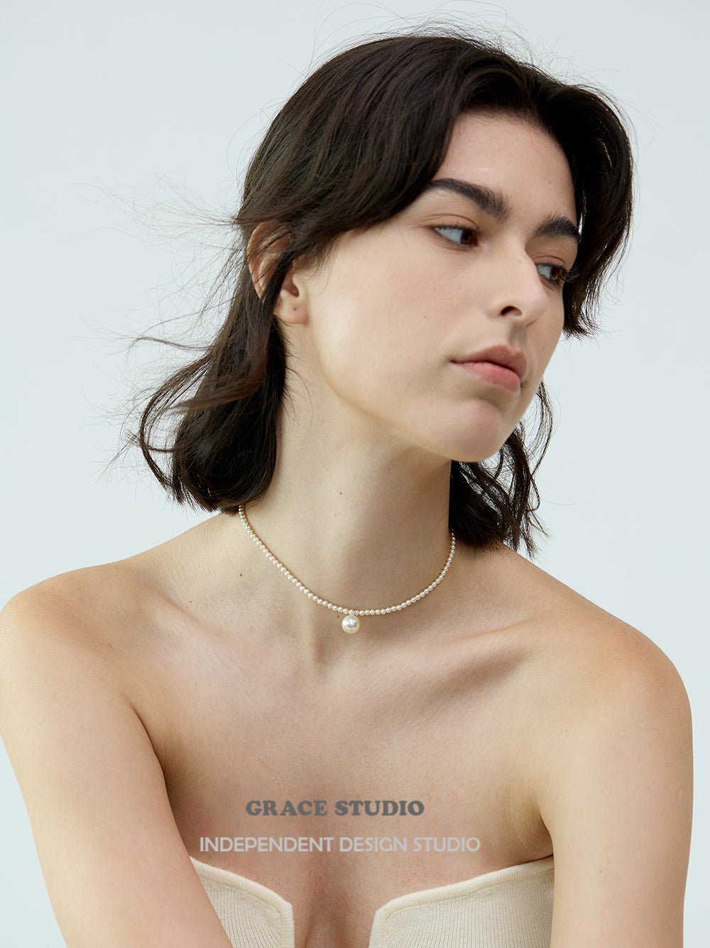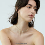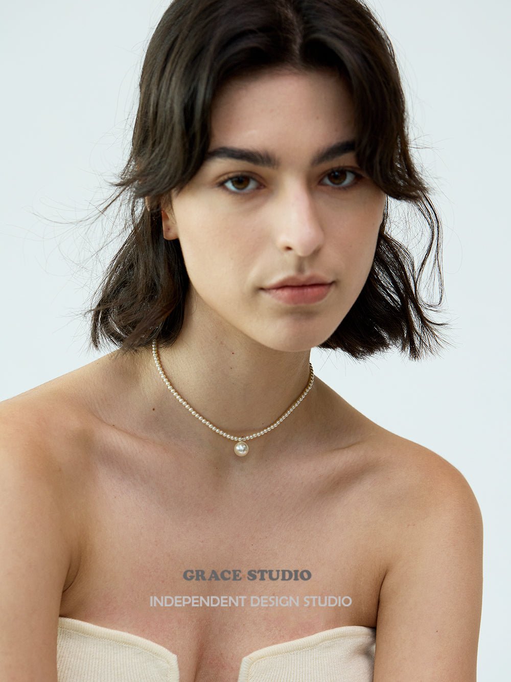 A delicate expression of grace and simplicity, this necklace features a single drop-shaped artificial pearl resting at the center of a string of petite ivory-hued beads. The luminous sheen of the pearl pendant brings a soft elegance, while the adjustable gold-plated chain ensures a tailored fit at the collarbone. Whether worn with minimalist daywear or evening ensembles, this piece adds a timeless accent that’s subtle yet refined.