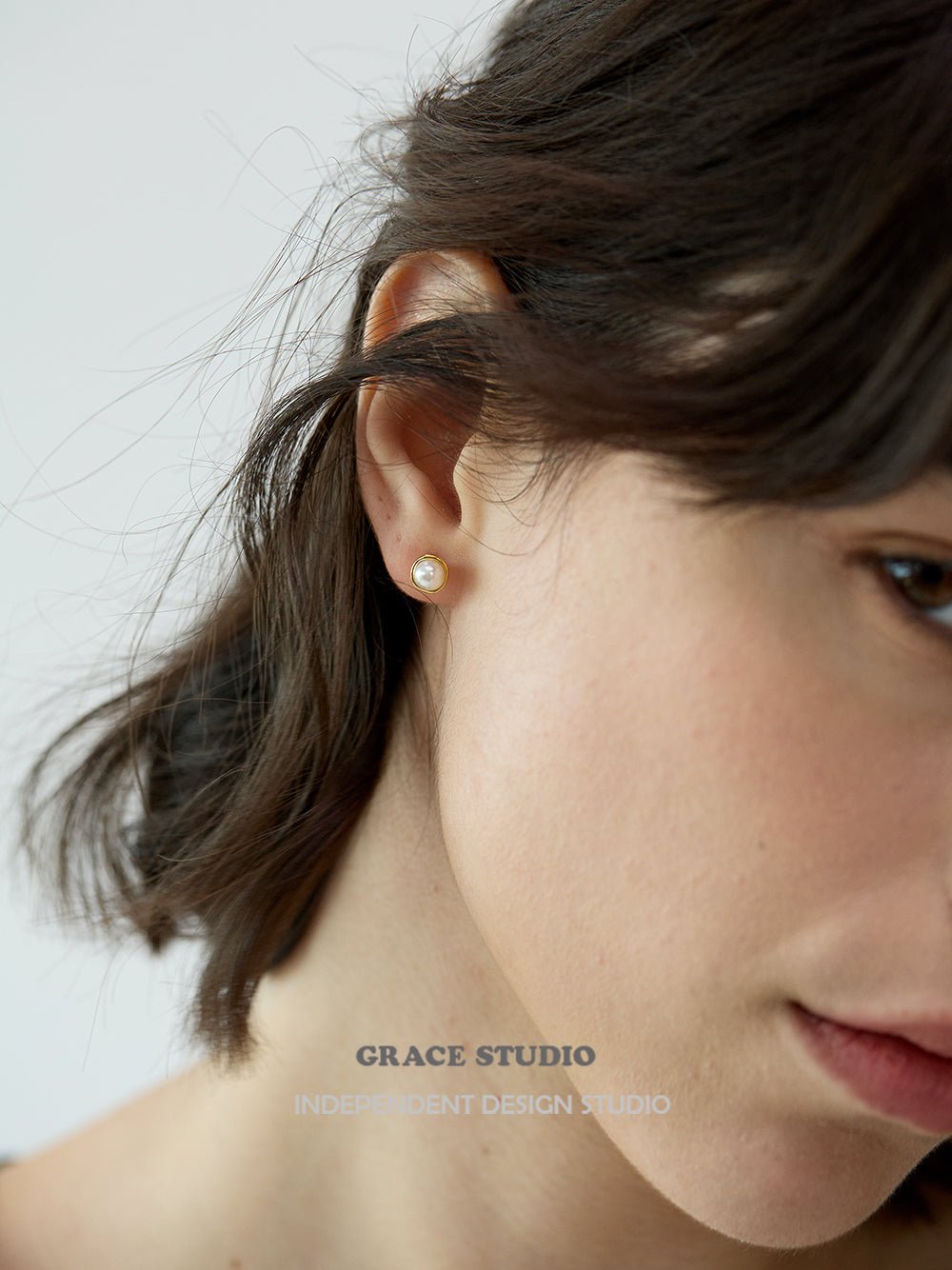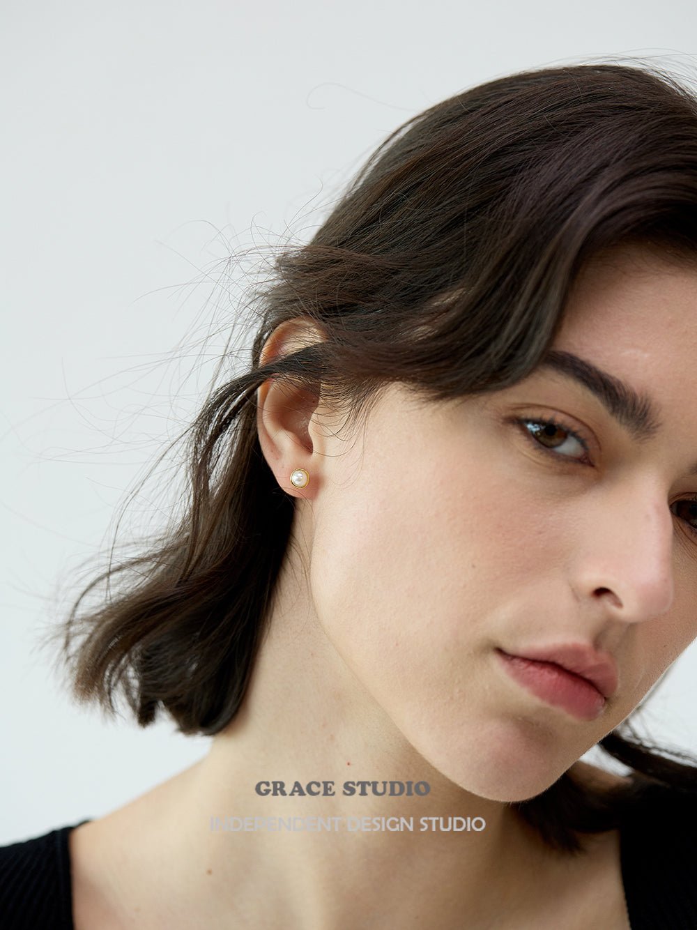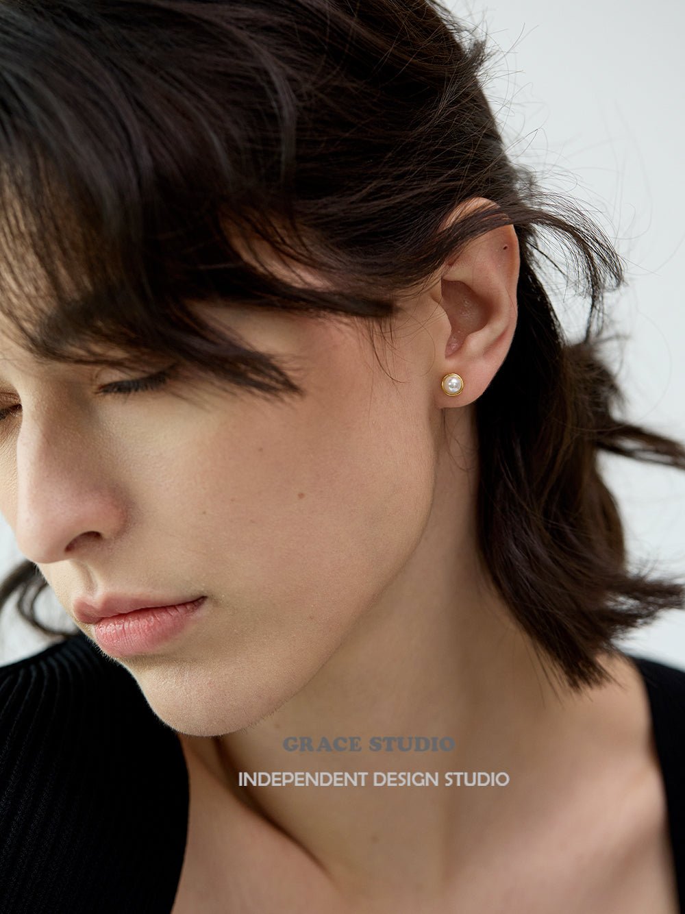 Refined in size yet full of character, the Dual-Tone Pearl Stud Earrings blend minimalism with quiet luxury. Each piece features a lustrous faux pearl set into a delicate circular frame made of black onyx-look resin or soft pearl white, offering two versatile colorways to suit different moods. The sleek silhouette sits close to the earlobe, making it an elegant choice for daily wear. Crafted from high-quality eco-friendly copper and finished with 925 silver ear posts, these studs provide both lasting comfort and polished charm.