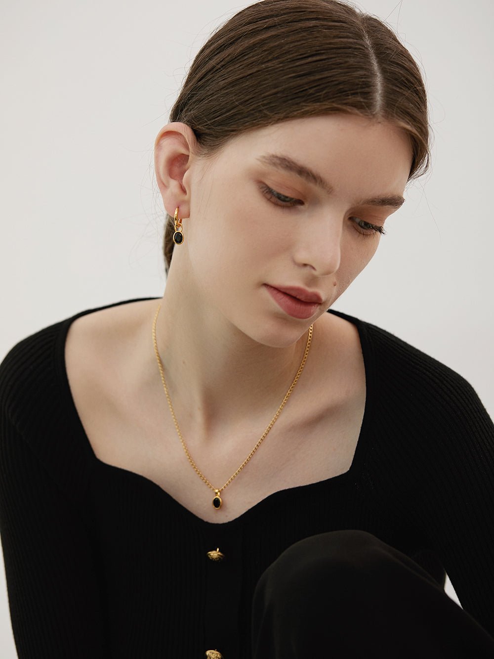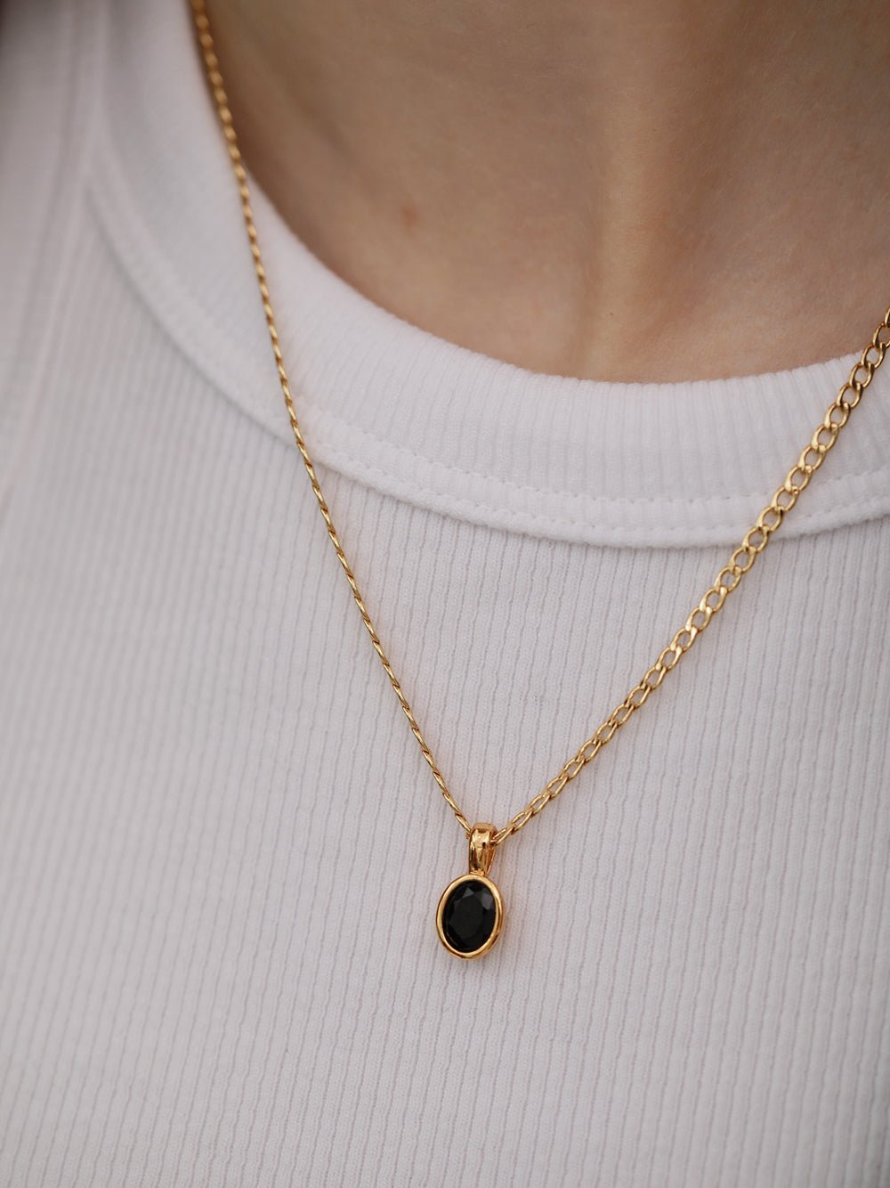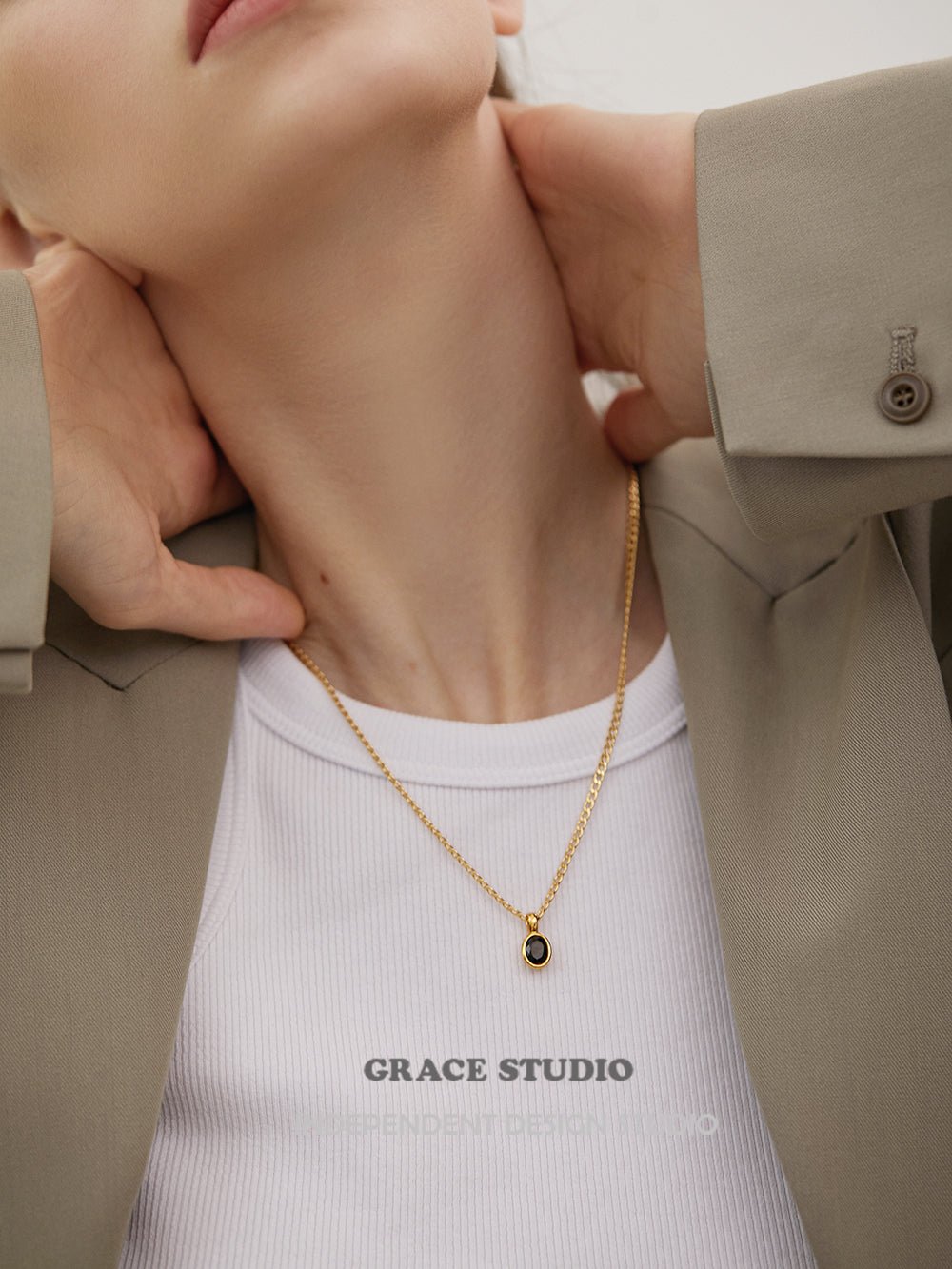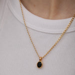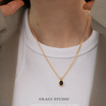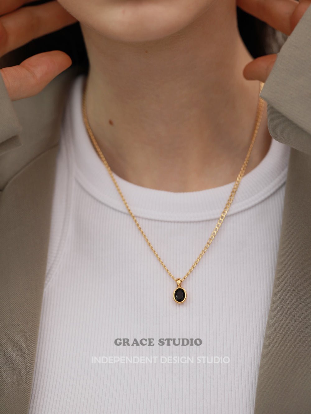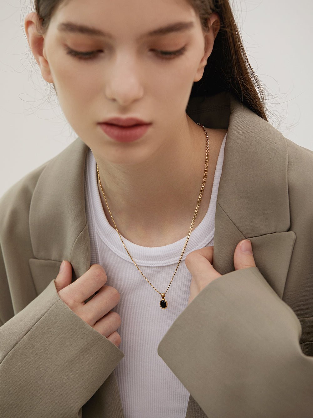 Subtle and striking, the Oval Gem Drop Pendant Necklace is designed for effortless layering or elegant simplicity. Featuring a high-quality gold-toned copper chain, this necklace is available in two refined colorways: jet black resin and diamond-white acrylic crystal. The polished oval pendant is bezel-set, offering a clean silhouette with a modern feel. With a chain length of 45 cm plus a 5 cm extender, this piece sits gracefully along the collarbone, complementing everything from soft knits to tailored blazers.