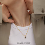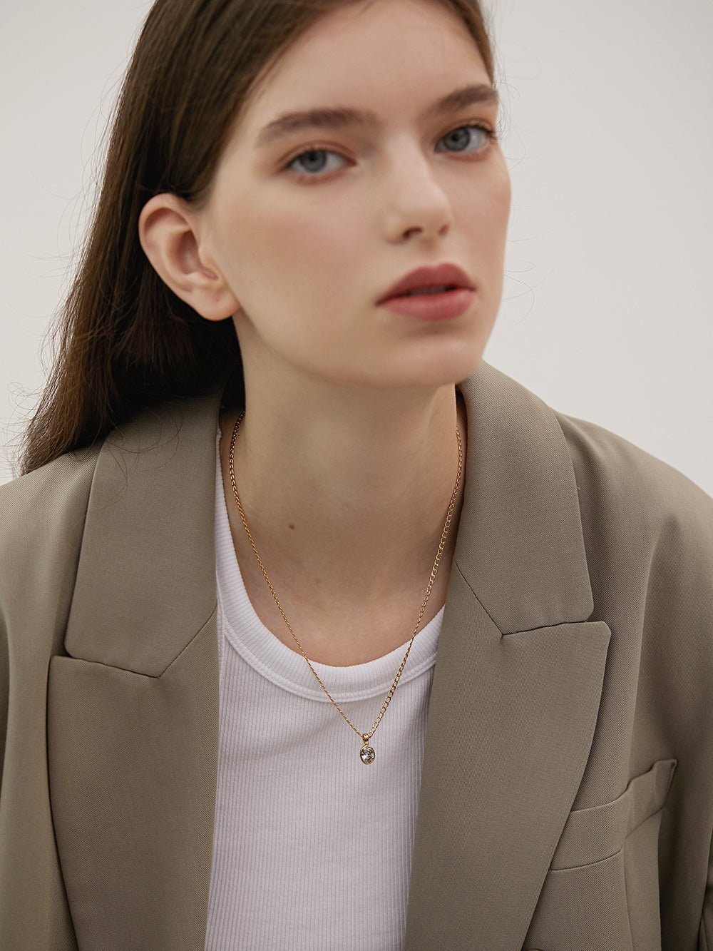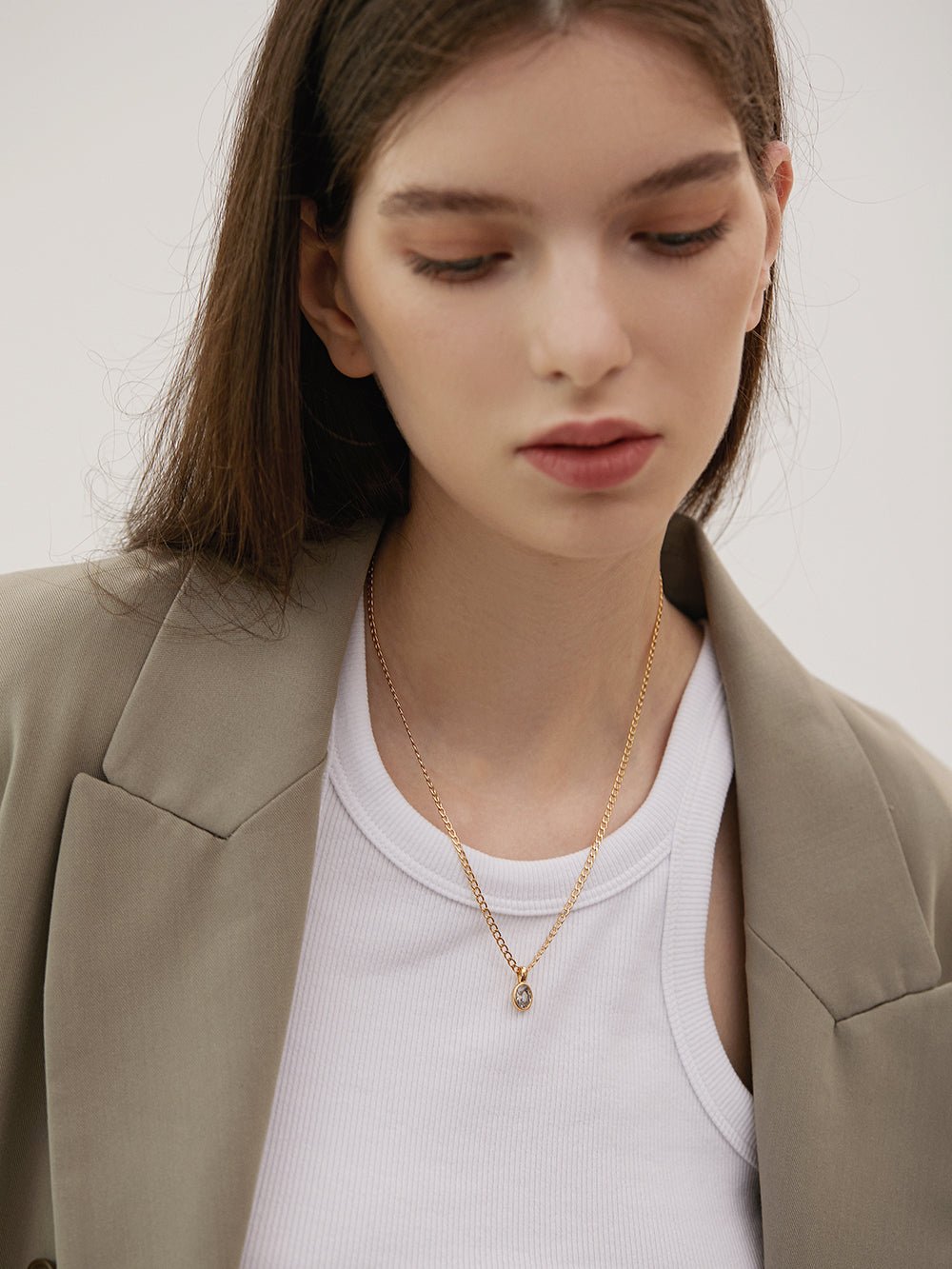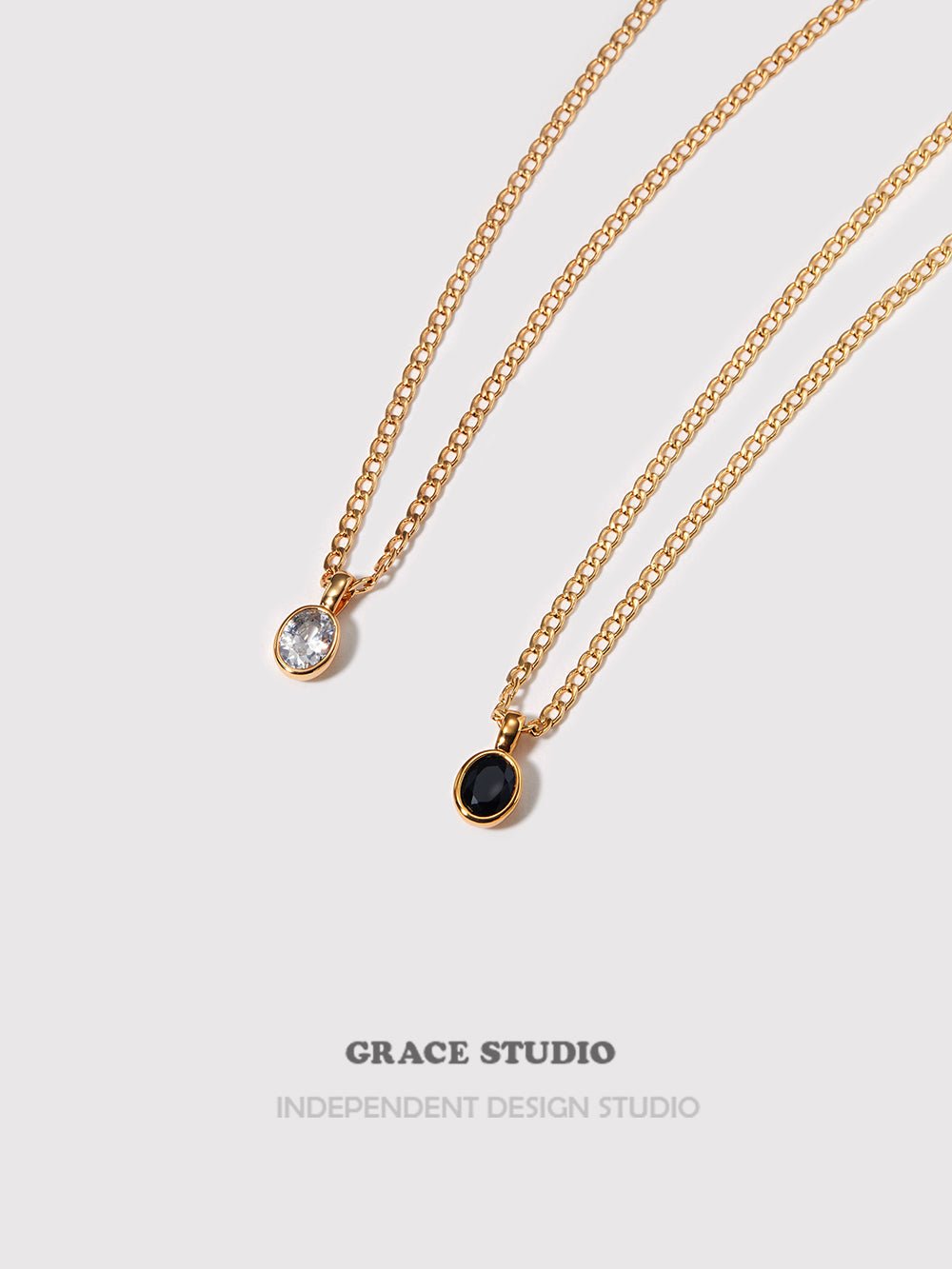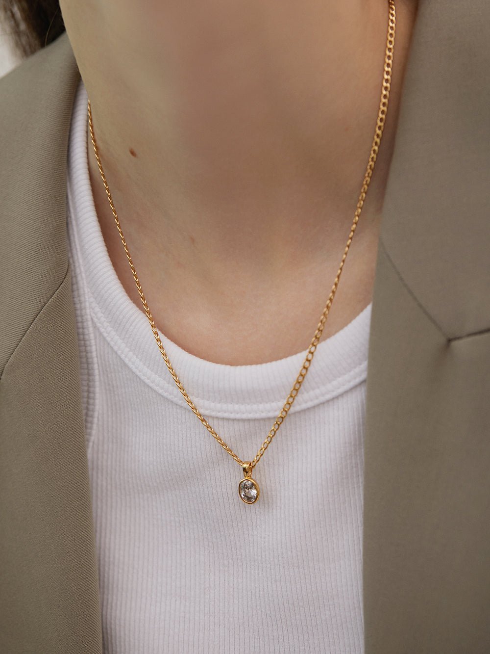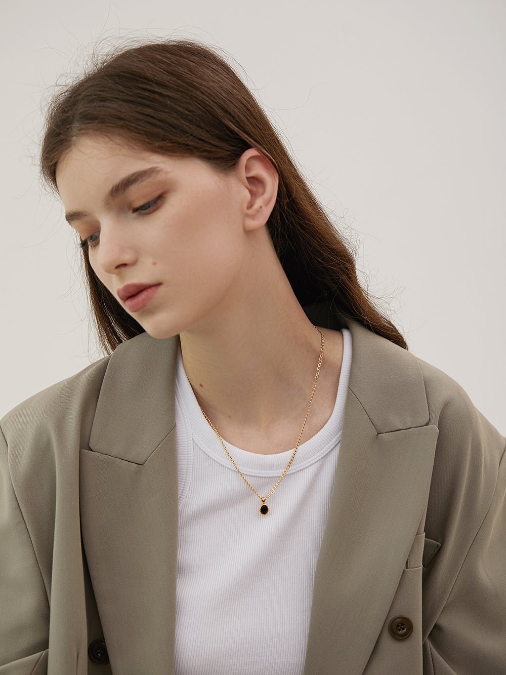 Subtle and striking, the Oval Gem Drop Pendant Necklace is designed for effortless layering or elegant simplicity. Featuring a high-quality gold-toned copper chain, this necklace is available in two refined colorways: jet black resin and diamond-white acrylic crystal. The polished oval pendant is bezel-set, offering a clean silhouette with a modern feel. With a chain length of 45 cm plus a 5 cm extender, this piece sits gracefully along the collarbone, complementing everything from soft knits to tailored blazers.