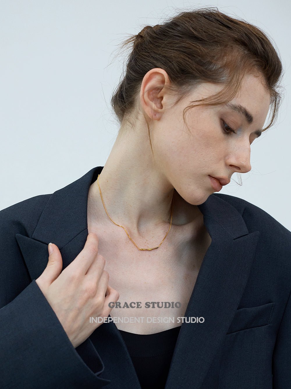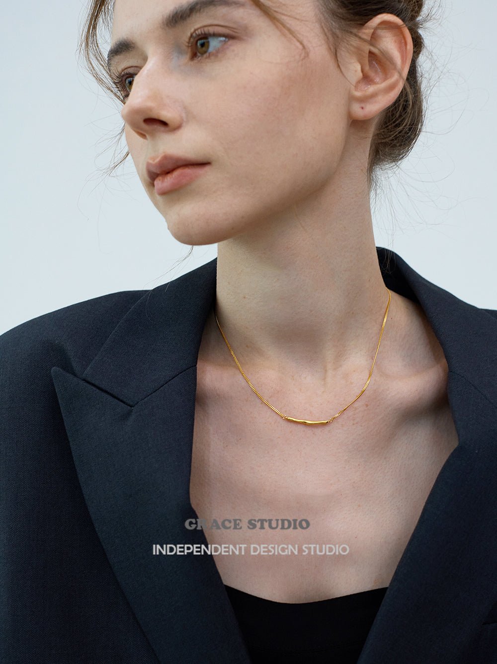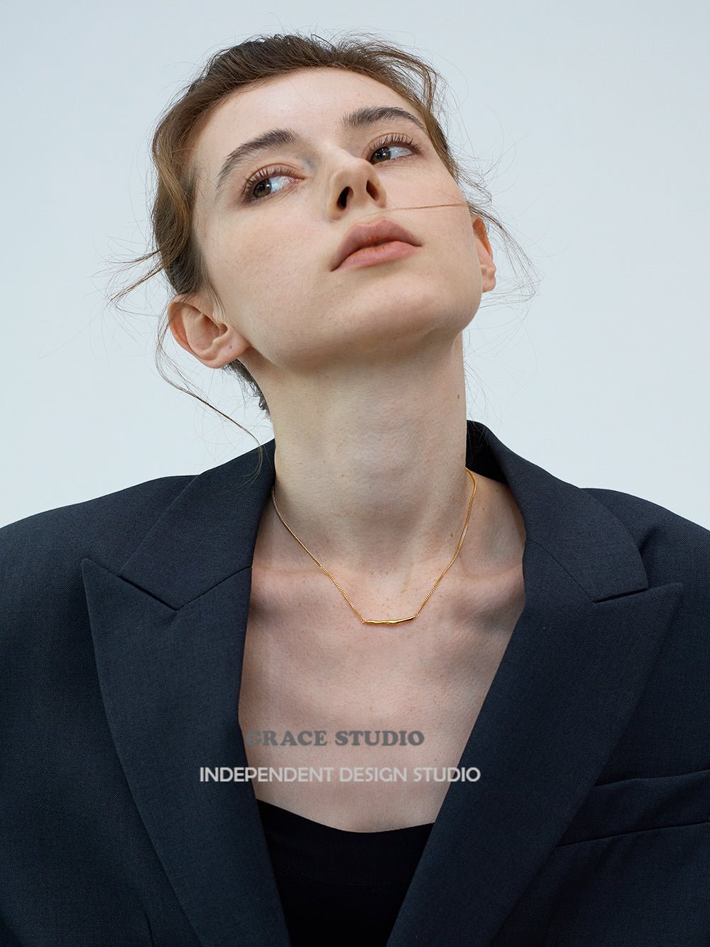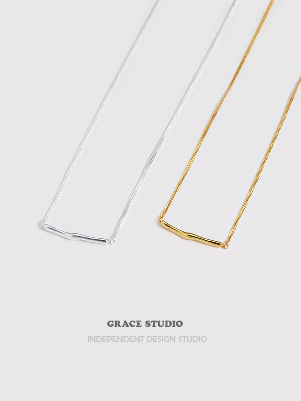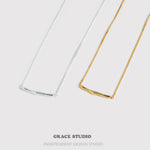 Sleek and contemporary, the Organic Bar Pendant Necklace features a fluid, asymmetrical bar pendant that gently curves with a natural, effortless rhythm. Suspended on a slender, gleaming chain, this minimalist piece draws subtle attention with its polished form and sculptural simplicity.