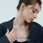 Crafted entirely from 925 sterling silver, it is available in both gold and silver finishes. The adjustable chain length (35cm–40cm) offers flexible styling, from a neat collar fit to a relaxed neckline layer. Ideal for solo wear or pairing with longer pieces, it adds a quiet sophistication to any outfit.