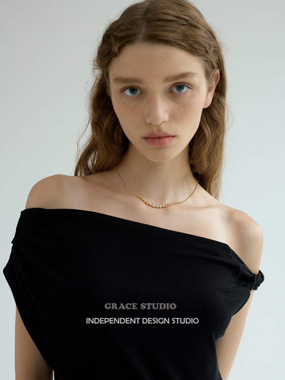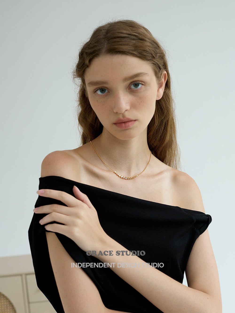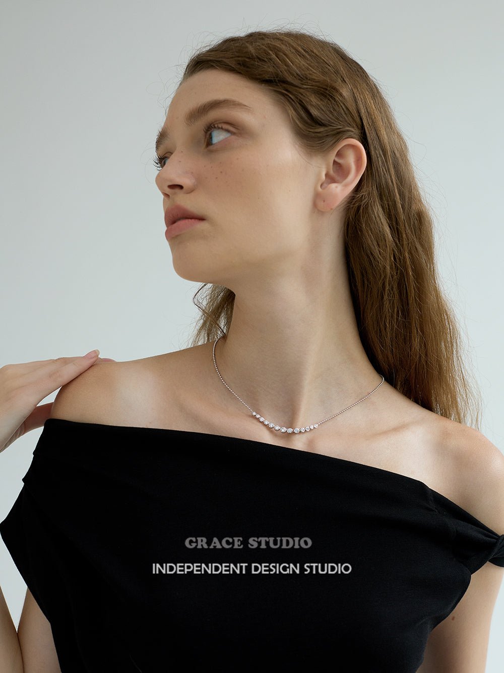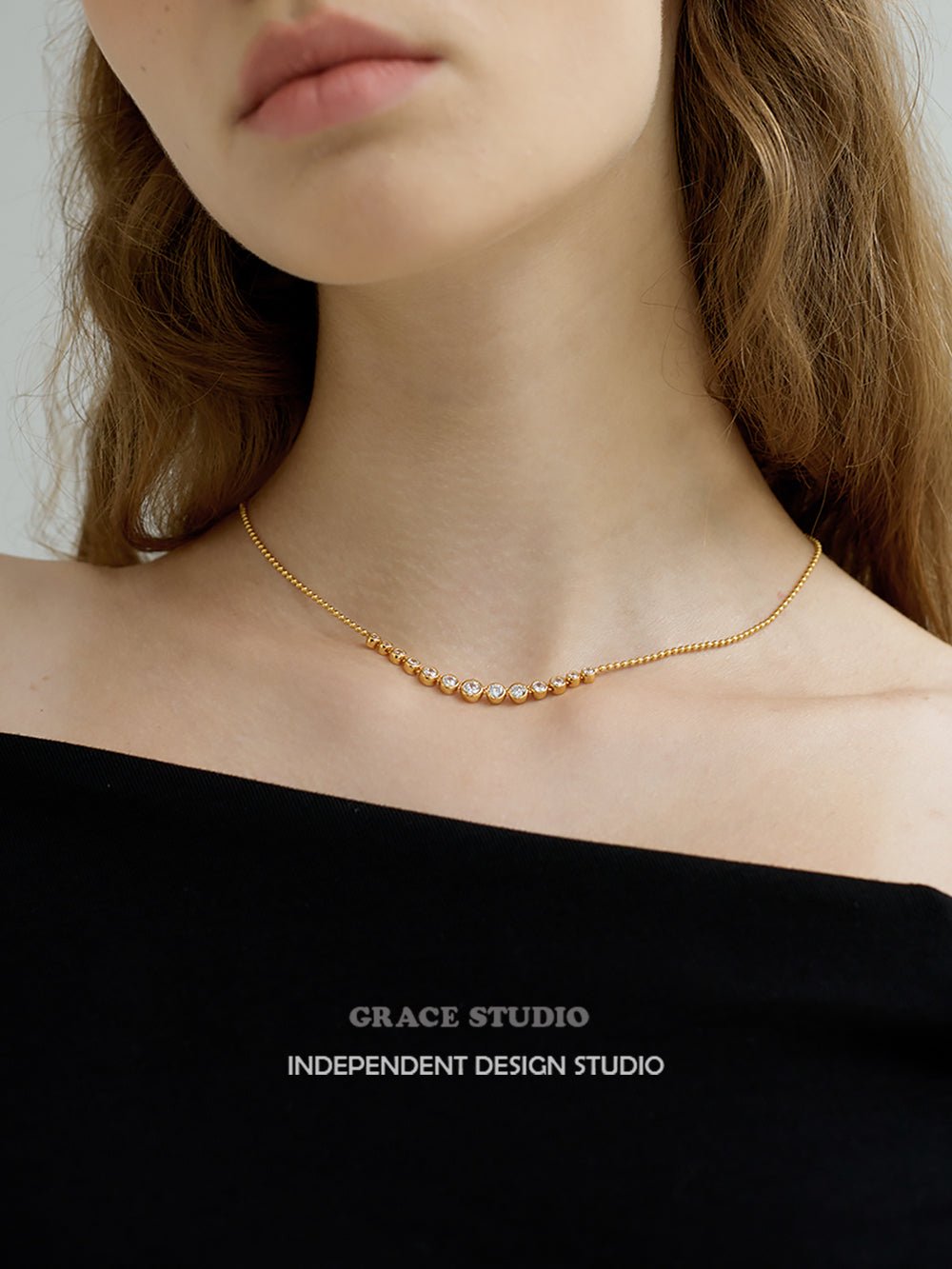 Elegant and refined, this pendant necklace features a graceful arc of high-quality zircons in gradually descending sizes, forming a soft tapered curve across the neckline. The brilliance of each stone is framed in a bezel setting and strung on a fine ball chain in either rich 18K gold-plated or platinum-toned sterling silver. Designed to rest gently along the collarbone, it adds understated sparkle to day-to-night ensembles. Includes a 5cm extender for easy layering and versatile styling.