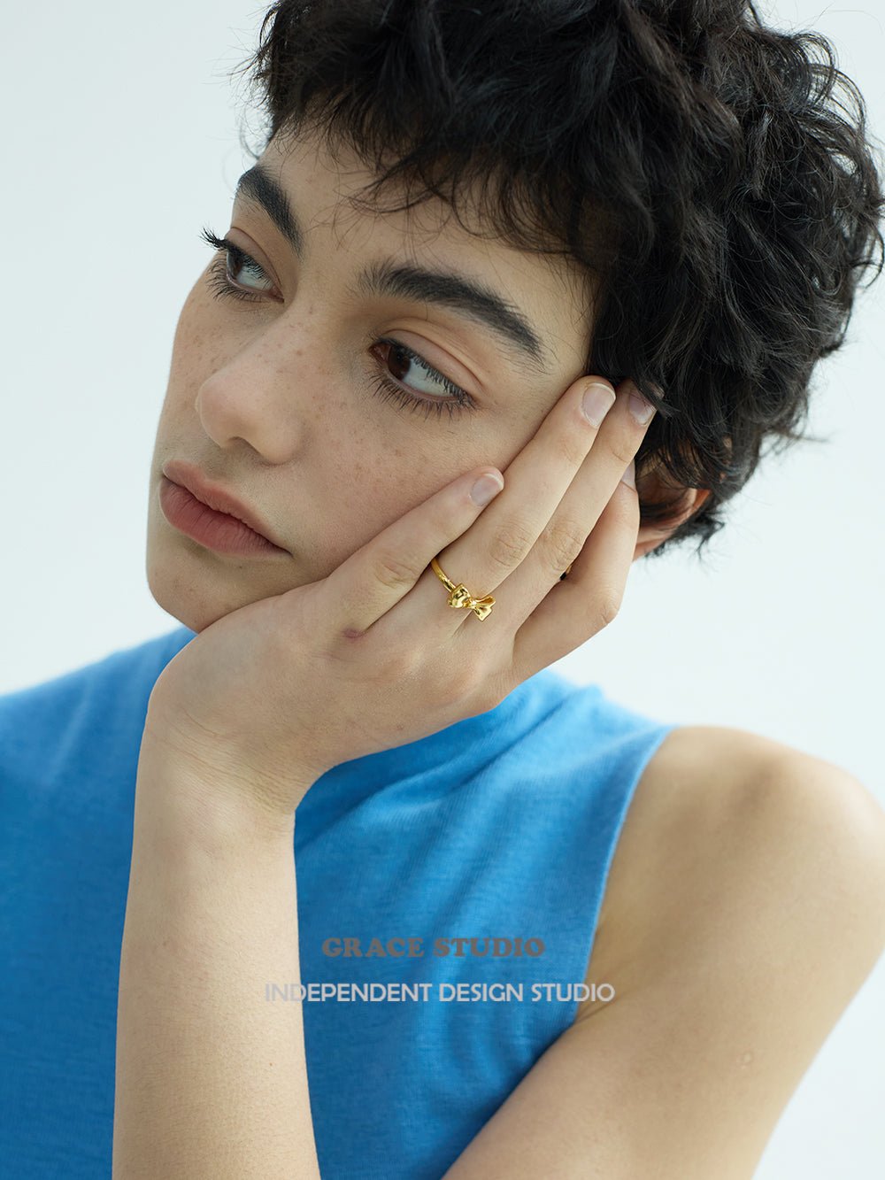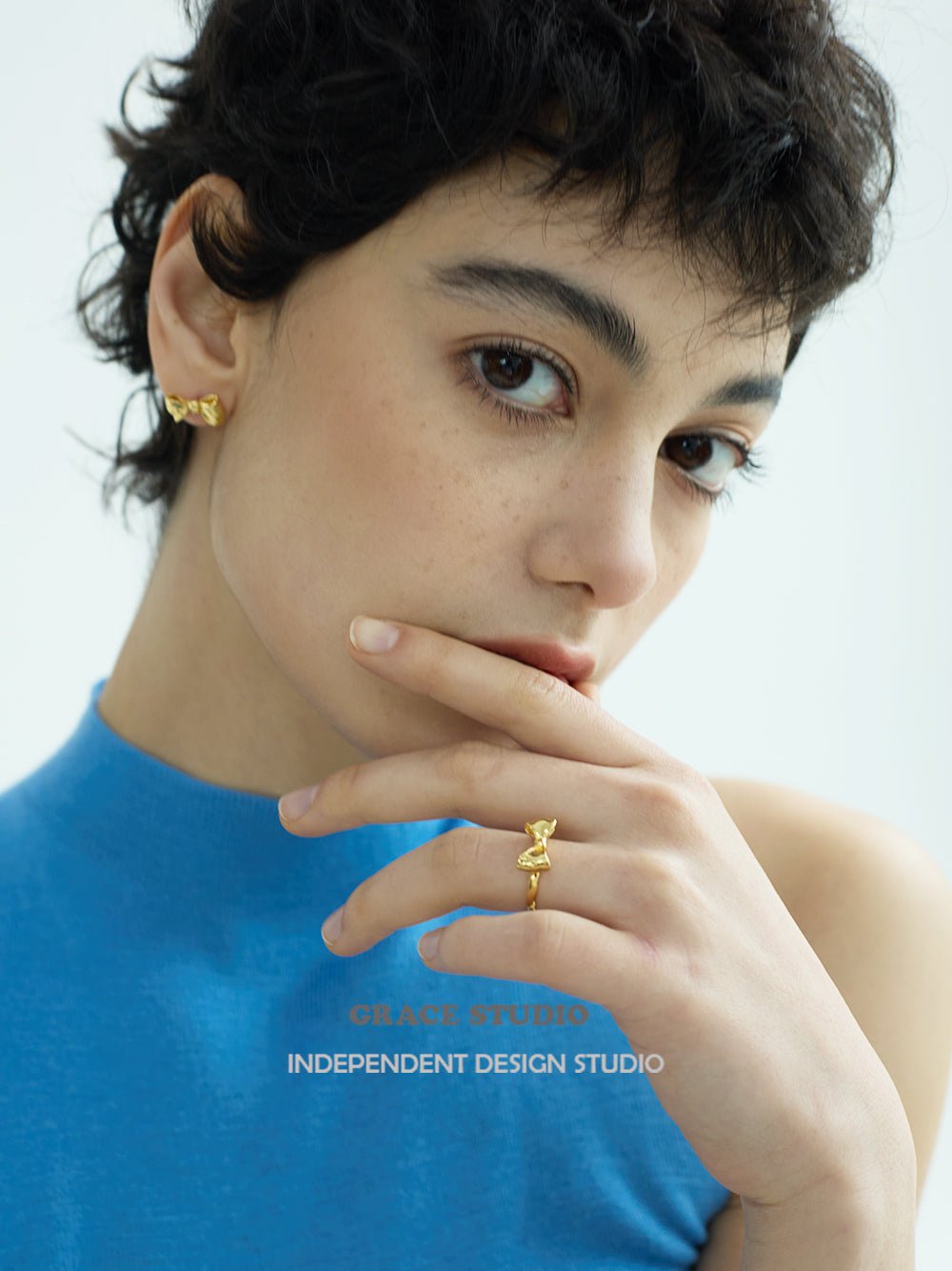 A delicate statement of elegance, the Bowknot Adjustable Ring is as graceful as it is versatile. Sculpted into a dainty bow motif, this open band ring is designed with a refined gold sheen and a slightly raised center knot for added dimension. The adjustable opening ensures a perfect fit for any finger, making it an easy addition to your jewelry rotation.