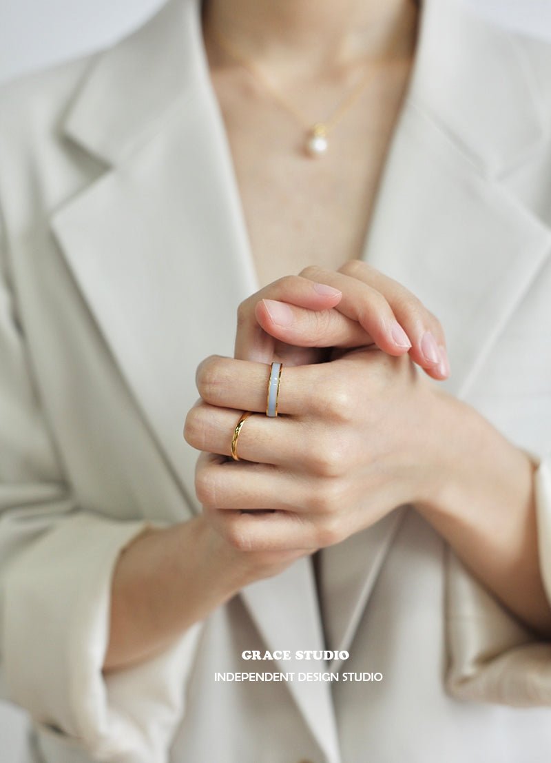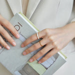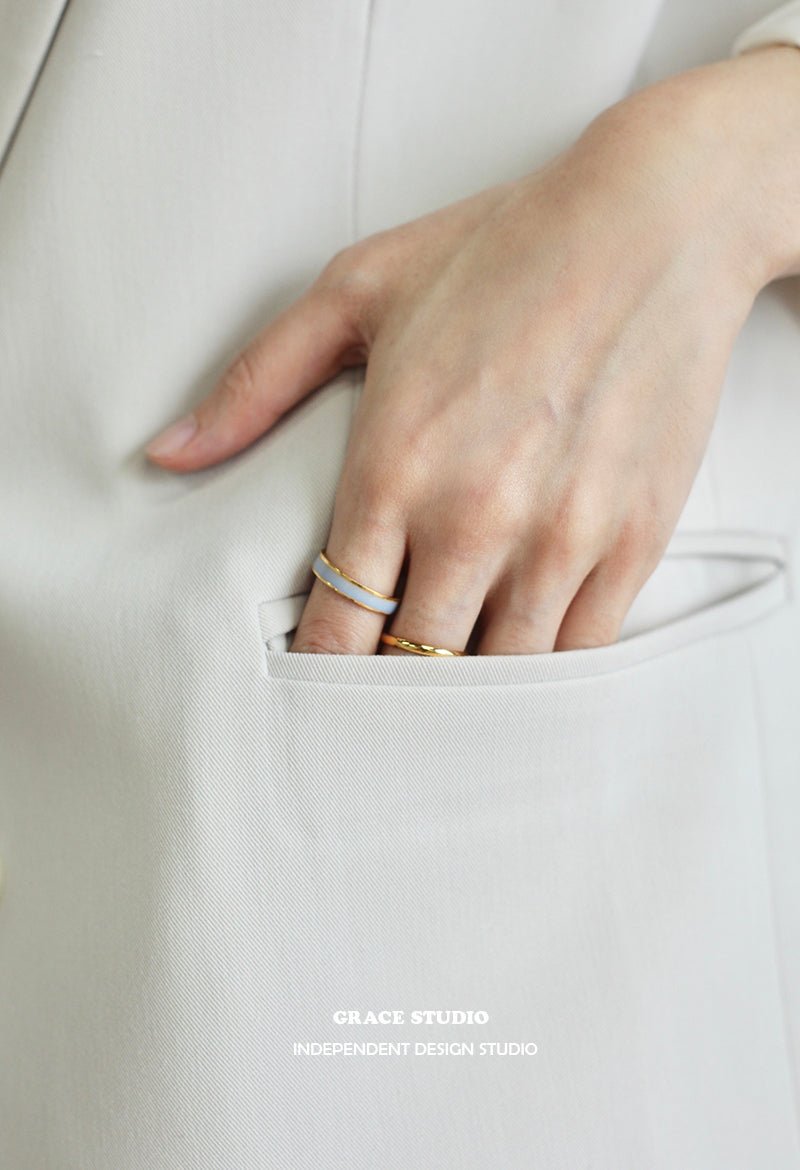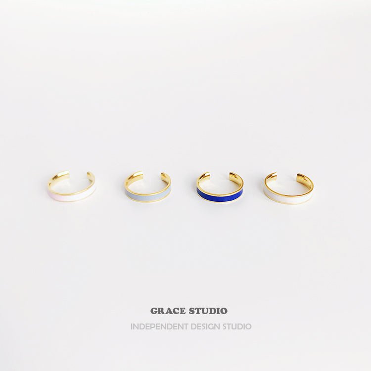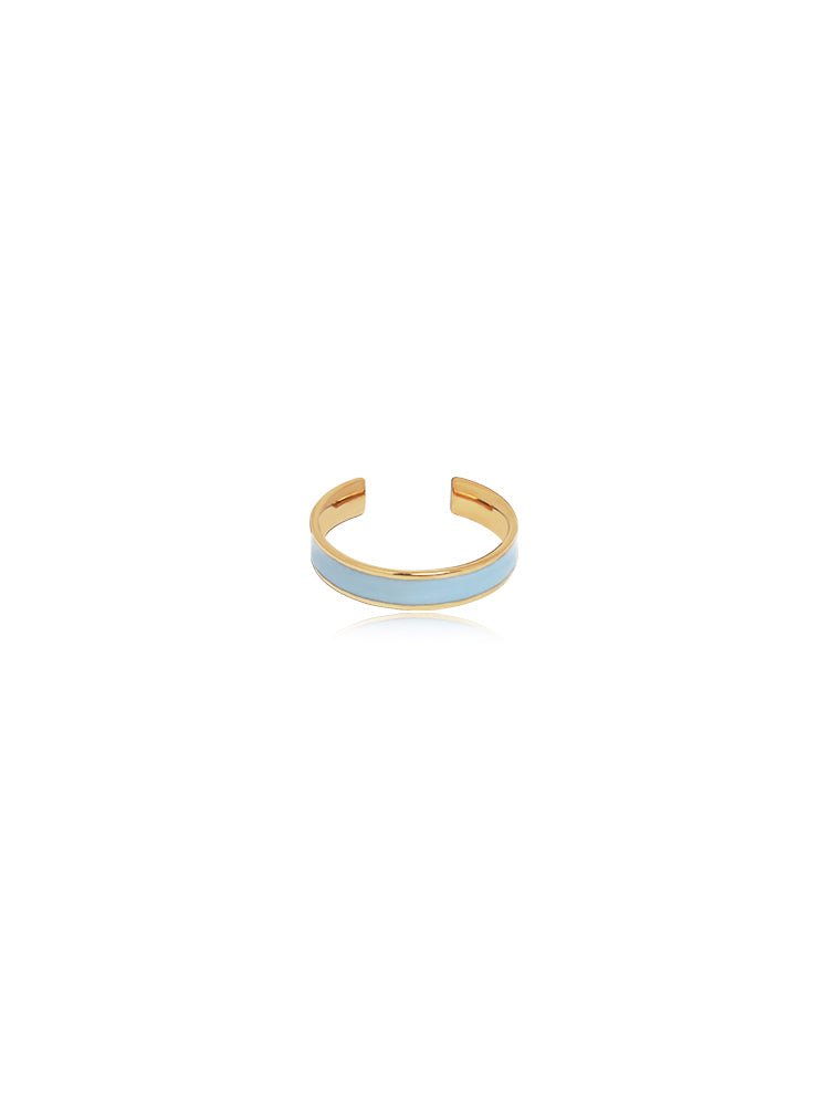 A playful nod to summertime color palettes, the Satin Enamel Band Ring adds a joyful splash of hue to your hand. Featuring a sleek band lined with glossy enamel in soft pastels and rich tones, pink, sky blue, royal blue, and ivory—each ring feels like a brushstroke of summer on your fingertips. The slim silhouette is effortlessly stackable, while the open band design ensures a comfortable, adjustable fit for everyday styling.