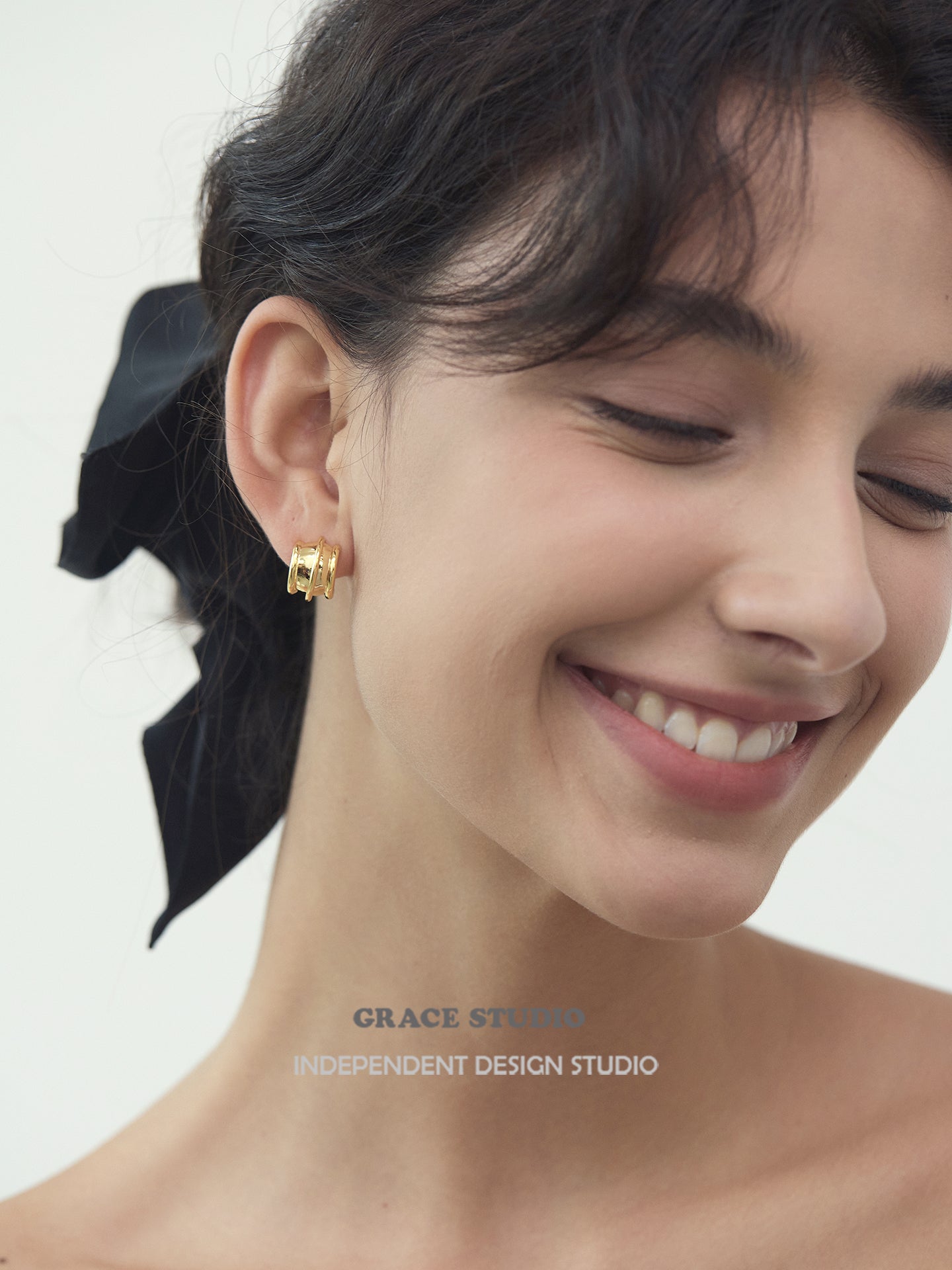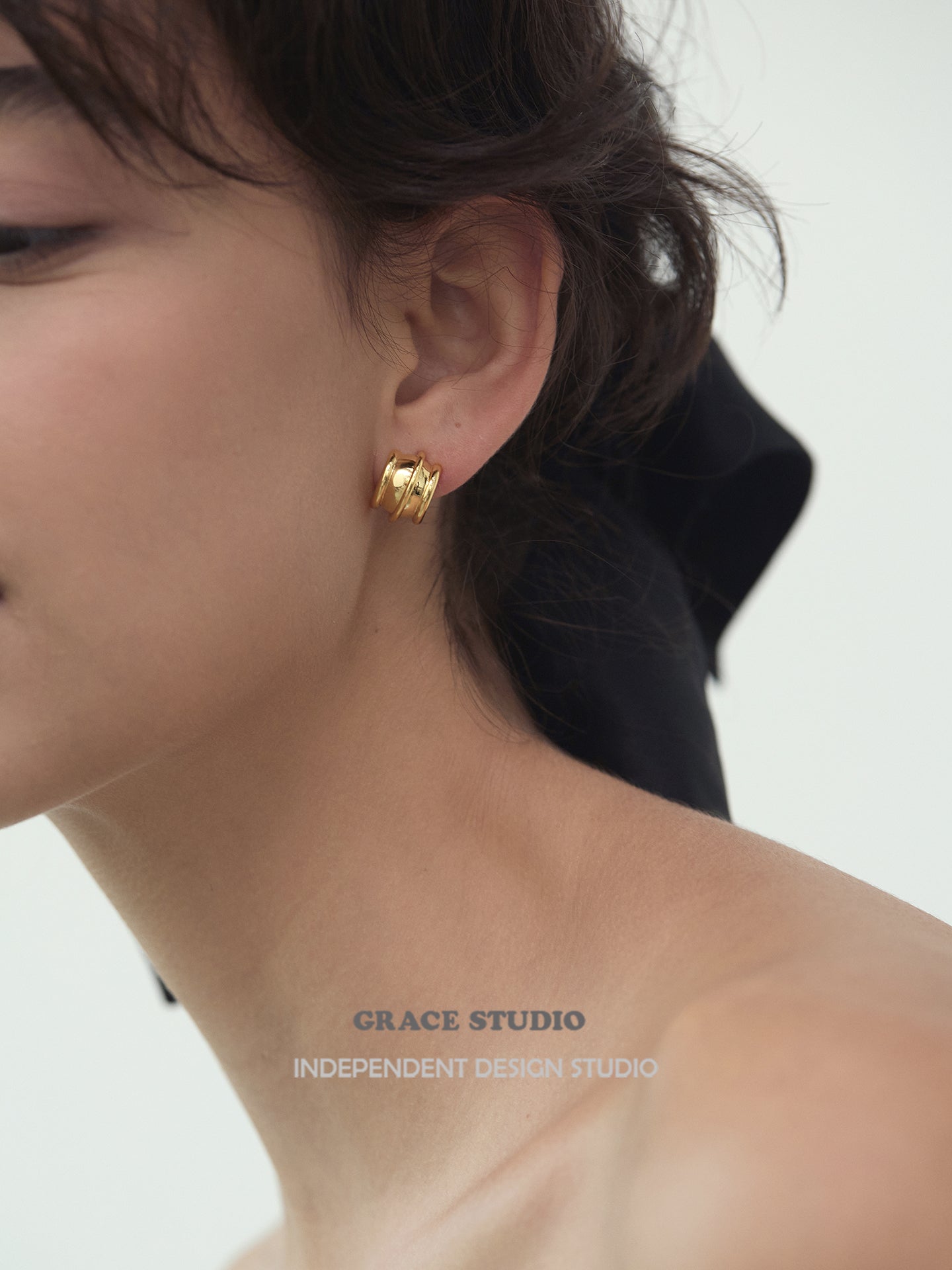 A modern twist on classic hoops, these sculptural ridged mini hoop earrings feature a stacked, coiled silhouette that adds textured depth and contemporary edge to your ear stack. With a polished finish that catches the light effortlessly, they're designed for comfortable all-day wear, hugging the lobe closely for a secure fit that blends minimalism with bold artistry, ideal for elevating everyday looks or layering with other pieces.