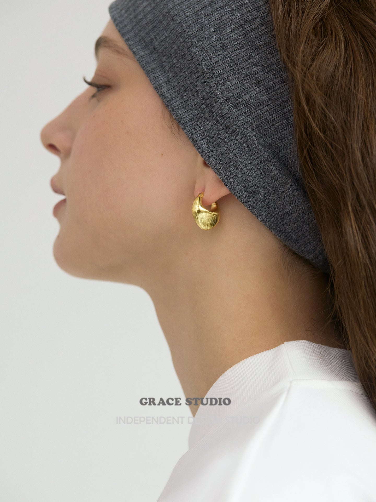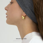 A contemporary take on timeless hoops, these brushed crescent hoop earrings feature a gently arched, plump form with a textured brushed finish that scatters light for a soft, velvety sheen, embodying subtle sophistication and organic curves. Offered in classic metallic hues, they're feather-light with reliable snap closures, suited for everyday minimalism or statement pairings, bringing a polished, artistic flair to diverse outfits while promising enduring comfort and versatile appeal. Details